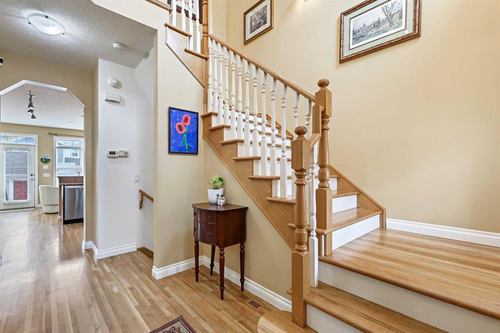 Welcome to this beautifully appointed 4-bedroom family home (3 up + 1 down) in the highly desirable community of Garrison Woods. Offering over 3,000 sq. ft. of thoughtfully designed living space, this home blends timeless character with modern comfort, complete with an inviting front porch that sets the tone for what’s inside. Step through the front door into a spacious foyer featuring a striking grand staircase. The bright living room is anchored by a mantled wood-burning fireplace and offers plenty of space for a piano or additional seating. French doors lead to an elegant formal dining room, ideal for hosting family gatherings or dinner parties. Perfect for the home chef, the kitchen features stainless steel appliances with a gas range, a spacious quartz raised bar, and generous storage and prep space. The sunny breakfast nook offers a lovely view of the backyard, an ideal spot for morning coffee. A practical mudroom with a brand-new washer and dryer adds convenience to daily living. With east and west exposures, this home enjoys an abundance of natural light, highlighted by 9-foot ceilings and beautiful maple hardwood floors on both the main and upper levels. Upstairs, the primary suite offers a peaceful retreat with a private balcony, perfect for morning coffee, a walk-in closet, and a luxurious ensuite featuring dual vanities, a soaker tub, and a standalone shower. Two additional spacious bedrooms and a 4-piece main bath complete the upper level. The professionally developed lower level provides a large family room, fourth bedroom, full bathroom, and generous storage space, including wine storage. Enjoy warm evenings on the spacious deck in the private backyard. Additional highlights include central air conditioning and a detached garage. Located just minutes from Marda Loop shopping, parks, top-rated schools (including Lycée International de Calgary), and downtown, this home offers the perfect blend of convenience, comfort, and style. Don’t miss your opportunity to call this exceptional Garrison Woods home yours, book your private showing today!