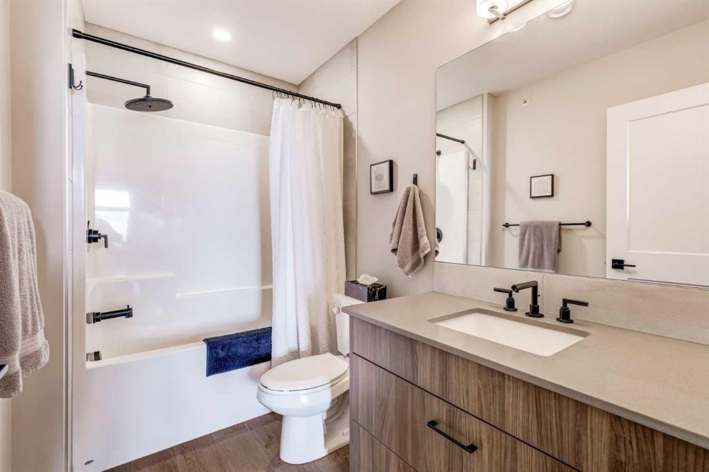 Welcome to this stunning, fully furnished, modern 1-bedroom condo—an ideal space for first-time buyers, savvy investors, or anyone seeking a comfortable, low-maintenance home. Built in 2023, this beautifully designed unit features a spacious bedroom with large windows that flood the space with natural light, complemented by a sleek 4-piece ensuite bathroom. The open-concept kitchen boasts stainless steel appliances, an eat-up island, and flows seamlessly into a bright living area—perfect for relaxing or entertaining guests. Step outside onto your private balcony to enjoy fresh air and scenic views. Additional highlights include in-unit laundry with a full-size washer and dryer, air conditioning, and a convenient half-bathroom for guests. The condo also comes with a titled underground parking stall and a separate storage locker. Located in a quiet, well-maintained complex, this home offers unmatched convenience with quick access to major routes including Stoney Trail, Sarcee Trail, and Shaganappi Trail. You're just minutes away from schools, public transit, shopping centers, dining options, and key business hubs. Pet-friendly with board approval. This condo blends style, function, and location—making it a perfect place to call home or a valuable addition to your investment portfolio.
