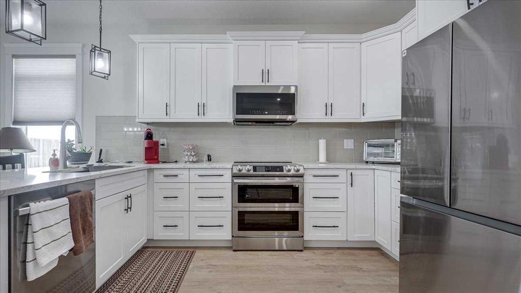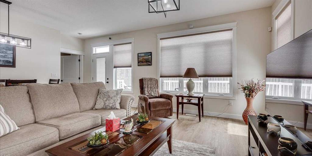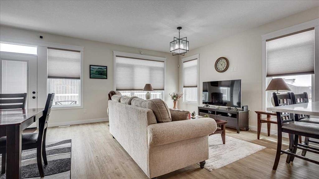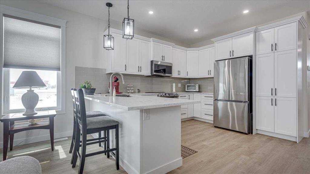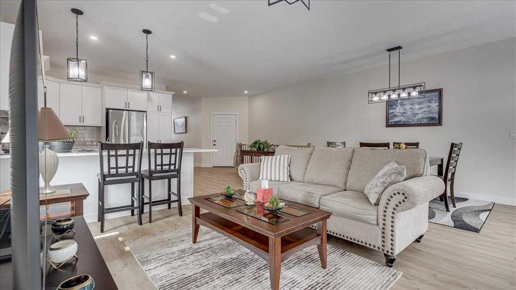 Welcome to this beautifully appointed bungalow-style half duplex in the sought-after community of Cornerstone Village, nestled in the charming town of Olds. Thoughtfully designed for comfortable, low-maintenance living, this home offers an exceptional blend of style, functionality, and ease—perfect for those ready to embrace a refined, simplified lifestyle without compromise. Step inside and experience a bright, open-concept main floor spanning approximately 1,383 sq. ft. A wall of large windows floods the living and dining areas with natural light, creating an inviting and airy atmosphere ideal for both everyday living and entertaining. The seamless flow between spaces enhances both comfort and connection. At the heart of the home, the well-designed U-shaped kitchen combines elegance with practicality. Featuring quartz countertops, gorgeous backsplash, soft-close cabinetry, pot lighting, and an upgraded stainless steel appliance package it offers generous workspace and storage while keeping you engaged with the main living areas. Durable, low-maintenance flooring runs throughout, providing both style and long-term convenience. The spacious primary suite serves as a private retreat, complete with a walk-in closet featuring custom wood shelving and a spa-inspired ensuite. Here you’ll find dual sinks, beautiful quartz counters, and an oversized glass and tile walk-in shower with a built-in bench. For added ease, laundry is conveniently located within the suite—all intentional design choices that enhances day-to-day living. Designed with accessibility in mind, all doorways accommodate wheelchair use, and the home supports aging-in-place and long-term residency. The full basement offers outstanding potential, large windows provide plenty of light, roughed-in for in-floor heating and ready for your personal vision. The beautiful 4 piece bath is already completed for you and still lots of space for additional bedrooms, and a large recreation area. Additional highlights include: • Attached double garage (insulated, drywalled, and prepped for heat) • Front parking pad plus convenient visitor parking • Maintenance-free exterior • Air conditioning, air exchange system, water softener, and custom blinds • Fully finished third bathroom in the basement Enjoy effortless access to nearby amenities, scenic walking paths, and inviting social spaces—including a shared gazebo with an outdoor kitchen and firepit—designed to bring neighbors together and foster a vibrant, connected community where you can truly enjoy life alongside like-minded peers. With a modest condo fee of $295/month, you can spend less time on upkeep and more time enjoying the lifestyle you’ve earned. This is more than a home—it’s a confident next step. Thoughtfully designed, beautifully finished, and ready to support the way you want to live today and into the future.
