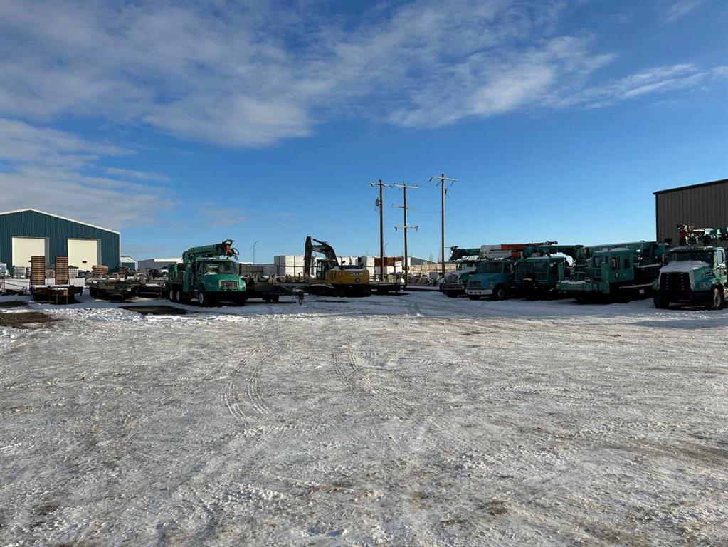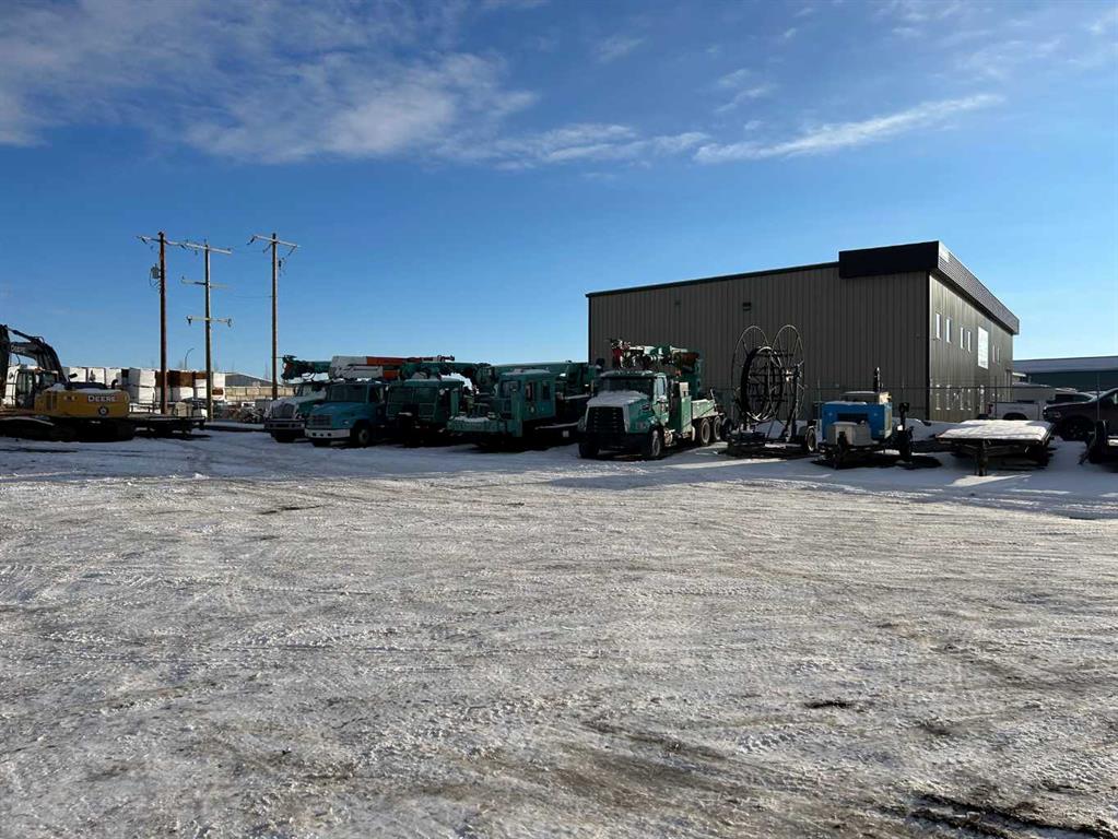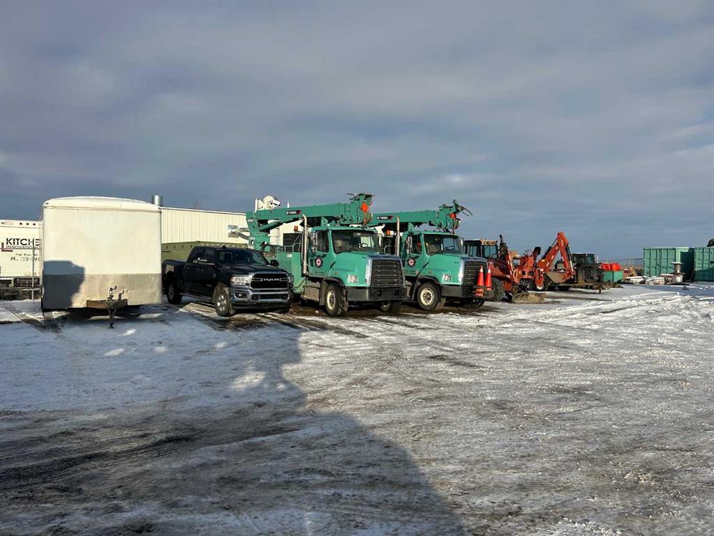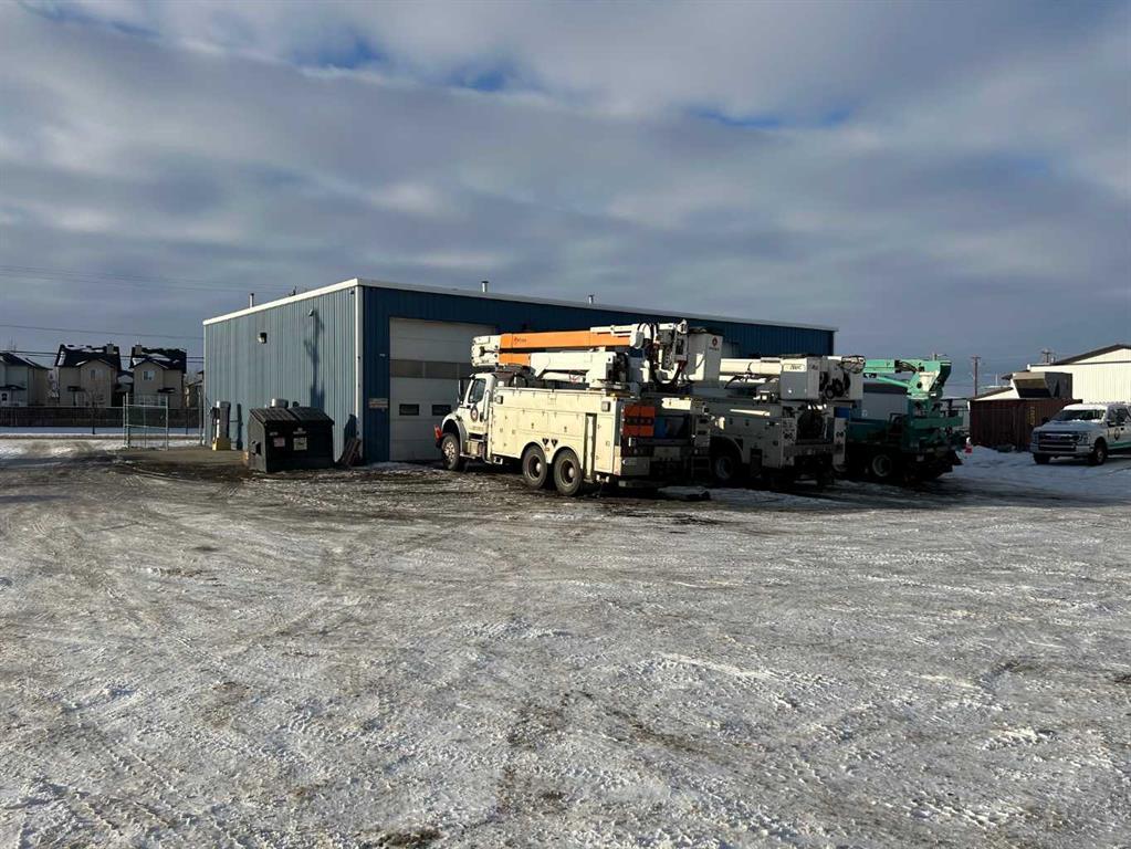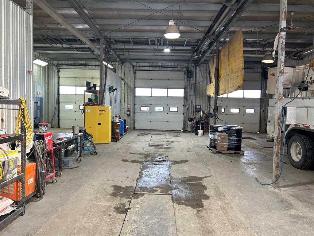 FOR SALE : 1.4 ACRES with a 4200 SQ FT Steel Structure building.... Fully Leased. Property FEATURES 6 - 14 ft Overhead doors allows trucks to drive through ; 3 bays each 60 ft deep ; originally the building was used as a truck and car wash ; ideal site for a potential second building, subdivision of a second lot [subject to town of High River approval ];fenced yard ; gravel packed rear yard ,security fenced and good highway access. New Air Exchange system installed in 2025.