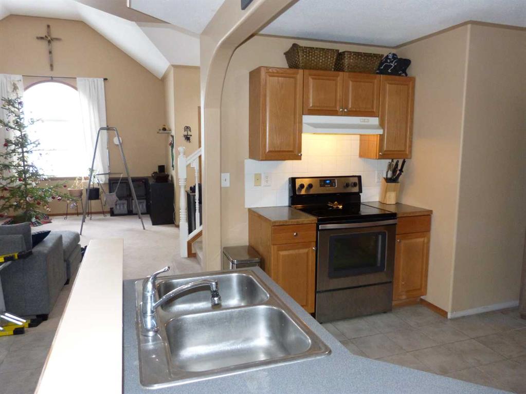 Spacious half duplex in the growing town of Beisker with close to 1600 Sq. Ft. This home offers High vaulted ceilings, a loft, open concept living room dining room, gas fireplace large laundry room and large fenced yard. The home features 3 bedrooms, 2 bathrooms, ceiling fans many windows and a skylight, flooding the house with plenty of sunlight. The large Primary Bedroom holds an ensuite bath and the kitchen features stainless steel appliances with an abundance of cupboard and counter space. Located on a quiet street with back alley access and schools and shopping close by.