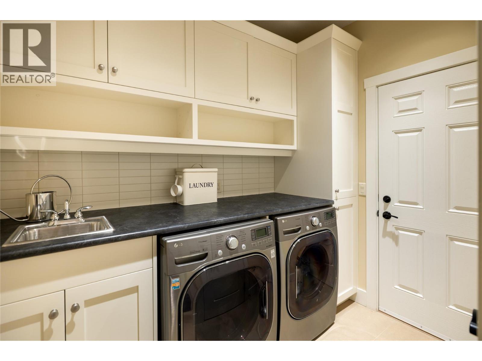 Privately positioned in an exceptionally quiet setting with no neighbours in front or behind, this thoughtfully designed residence is surrounded by mature trees and meticulous landscaping, offering a rare sense of seclusion. Built with longevity and quality in mind, the FireSmart Hardie Board exterior, concrete tile roof, Loewen windows, and handcrafted fir front door set the tone for the level of finish carried throughout. Engineered hardwood flooring, solid core doors, and all-wood casings create a cohesive, timeless interior. The kitchen is the heart of the home, featuring Brazilian soapstone countertops, solid maple cabinetry, an expansive custom island, six-burner gas range, Thermador appliance package, and a dedicated beverage centre. Indoor-outdoor living is seamless with a covered upper deck complete with gas fireplace and BBQ hookup. The walk-out lower level offers impressive ceiling heights, a custom wet bar, gas fireplace, theatre room, and access to a private patio with Beachcomber hot tub and Restoration Hardware fire bowl. A hybrid heat pump/gas furnace, EV-ready 3 car garage, grade-level windows, and thoughtful accessibility features further enhance this exceptional home designed for comfort, privacy, and everyday enjoyment. Set within the prestigious Gallaghers Canyon community, residents enjoy an unmatched lifestyle with world-class golf, scenic walking trails, and a strong sense of community—just minutes from Kelowna’s amenities. A rare combination of privacy, craftsmanship, and lifestyle — this is a must-see to be fully appreciated.