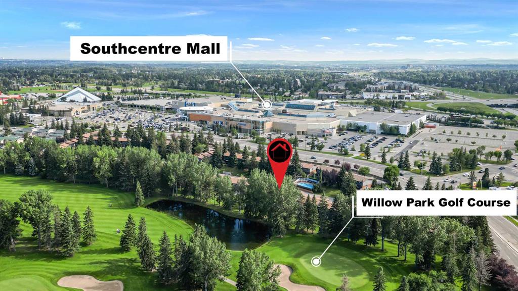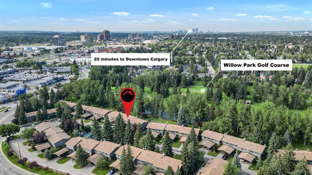 OPEN HOUSE SATURDAY OCTOBER 4TH FROM 12-2PM! Welcome to Unit 42, part of Hearthstone Place, in Willow Park! This well-designed townhome backs onto the Willow Park Golf Course and has a swimming pool in the complex (right outside your front door). Stepping foot into this adorable unit, featuring newer windows throughout and updated flooring and paint, you will immediately be charmed by the bright sunny kitchen, clean cabinet lines, and sleek countertops. All new appliances and upgraded tile flooring as well make this kitchen a must see. The kitchen, featuring well designed pass-through, flows seamlessly into the gorgeous living/dining room area with hardwood flooring throughout, a stunning wood burning stone faced fireplace. Sliding patio doors walk you out to your serene backyard area extending your living space in the warmer months. Equipped with a gas hookup for your BBQ, this unit backs right onto one of the holes at Willow Park Golf Course with a pond so you have the sound of lapping water outside your back door. Heading upstairs you will find all new laminate flooring which leads into the spacious primary bedroom with lots of natural light, ample closet space, and a 4-piece cheater en-suite with upgraded tile throughout. Two more bedrooms, currently being used as offices, complete this 2nd floor which offers you versatility and space to spread your wings. The lower level offers you more flexibility with a good flex space, currently being used as a guest bedroom, gym and lounging area. An additional updated 3-piece bathroom, laundry room and more storage complete this fantastic townhome. Parking is in front of the unit with a large carport where two cars can park tandem style with ease. Well situated across the street from Southcentre Mall, only a 20-minute drive to downtown Calgary and easy access to Anderson Trail, Macleod Trail and Stoney Trail. Call your favourite Realtor today to book your showing! Please note this complex does not allow dogs.