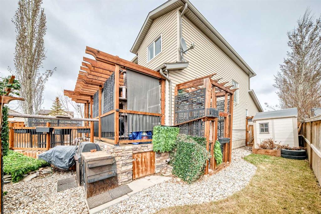 Welcome to this exceptionally well maintained 3 bedroom, 4 bathroom half duplex in the desirable community of Johnstone Park. Tucked away on a quiet close with no condo fees, this home offers a great mix of comfort, function, and outdoor living. The bright open concept main floor is filled with natural light and designed for everyday living and entertaining. The kitchen features maple cabinetry, a large island with sink, plenty of counter space, and a corner pantry. The dining area leads directly to a partially covered deck, making it easy to enjoy summer BBQs. The living room is highlighted by oversized windows overlooking the beautifully landscaped backyard. Stay comfortable year round with the added bonus of central air conditioning. Upstairs you will find two spacious bedrooms, each complete with their own 4 piece ensuite and walk in closet. Convenient upper floor laundry adds to the thoughtful layout. The fully finished basement offers even more space with a large family room featuring a wet bar and built in cabinetry, a third bedroom, and an additional 4 piece bathroom. There is also a second laundry setup, with the current lower level laundry room offering excellent flexibility as a craft room, storage space, or additional utility area. Step outside to your own private backyard oasis, fully fenced with a patio and partially covered deck, perfect for relaxing evenings or entertaining guests. The property also includes a single attached garage for added convenience. A move in ready home in a fantastic location, offering space, comfort, and a beautifully maintained outdoor retreat.