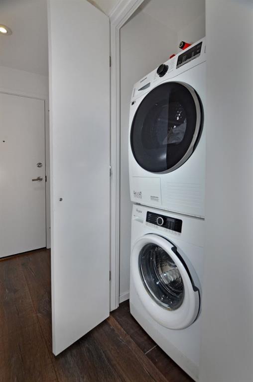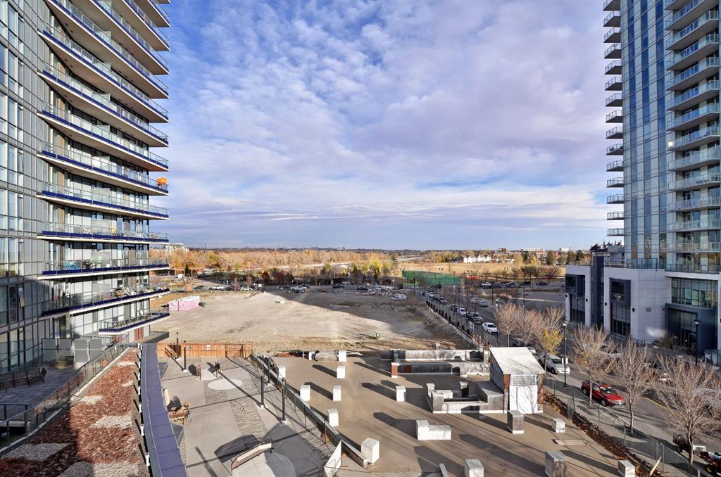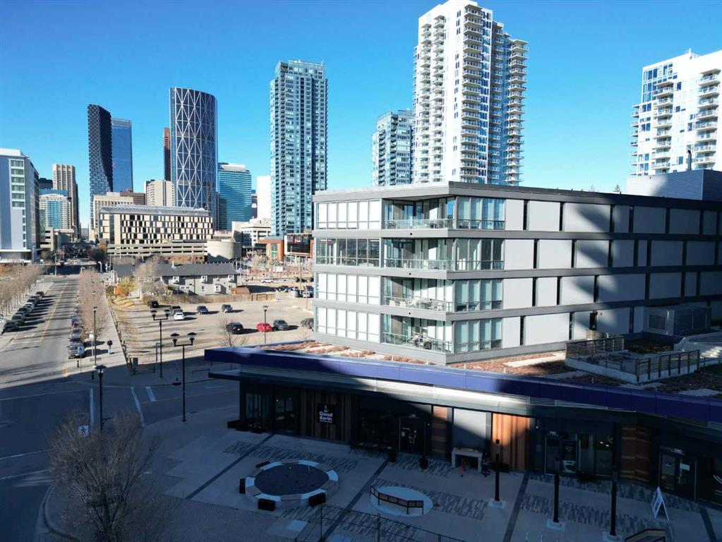 Welcome to Verve in East Village, one of Calgary’s most sought-after addresses combining modern design, urban energy, and incredible views. This 2-bedroom, 1-bath home offers 180° panoramic views of downtown and the Confluence Historic Site, where the Bow and Elbow Rivers meet. Floor-to-ceiling windows fill the space with natural light, and the open-concept layout connects the kitchen, dining, and living areas seamlessly, making it perfect for both relaxing and entertaining. The modern kitchen features sleek cabinetry, quartz countertops, and built-in appliances, while the home also includes central A/C, in-suite laundry, and a private balcony to take in sunrise and sunset views over the city. Adding even more value, this rare unit comes with two titled underground parking stalls plus three titled motorcycle stalls. Verve offers premium amenities including a rooftop lounge and terrace, fitness center, guest suites, and concierge service, all just steps from the RiverWalk, Central Library, cafes, and the CTrain. It’s downtown living with a riverside vibe — and a truly unique opportunity to own one of the most distinctive homes in the building. All stalls are rented out and returning big cashflow returns, property also includes a storage locker.