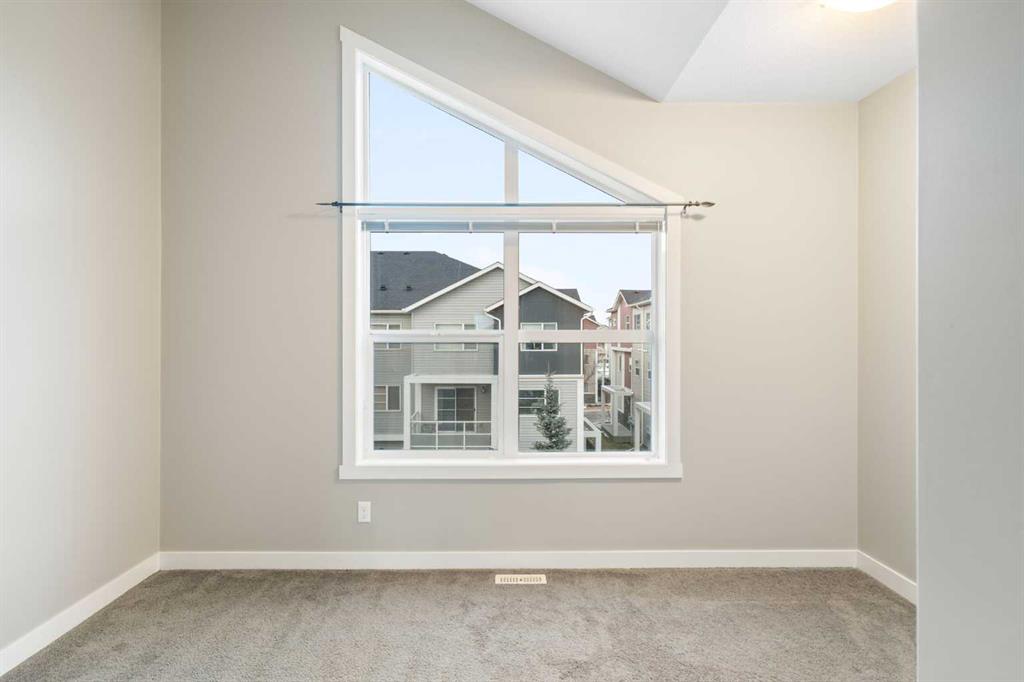 Set in the growing community of Redstone, this well-cared-for townhouse offers 2 bedrooms and 2.5 bathrooms with a practical, well-balanced layout ideal for modern living. The ground level welcomes you with a spacious front entry, a versatile office or recreation area, a convenient 2-piece bathroom, and a utility room. The attached heated garage is thoughtfully upgraded with a 240V 5000W heater, generous overhead storage, and dedicated winter wheel storage, making it as functional as it is convenient. The main living level features laminate flooring throughout and a contemporary kitchen with dark cabinetry, countertops, stainless steel appliances, and a large island that anchors the space. The kitchen flows naturally into the dining area with patio doors leading to a private deck—perfect for everyday meals or casual entertaining. The adjoining living room offers an open, comfortable space to unwind. Upstairs, the primary bedroom includes double closets and a private 4-piece ensuite. The vaulted secondary bedroom adds character and a sense of openness, while a second 4-piece bathroom is conveniently located in the hallway. A dedicated laundry and storage area completes the upper level. With close proximity to schools, transit, major roadways, Calgary International Airport, and quick access to downtown, this Redstone home combines thoughtful upgrades, smart design, and everyday convenience in a well-connected community.