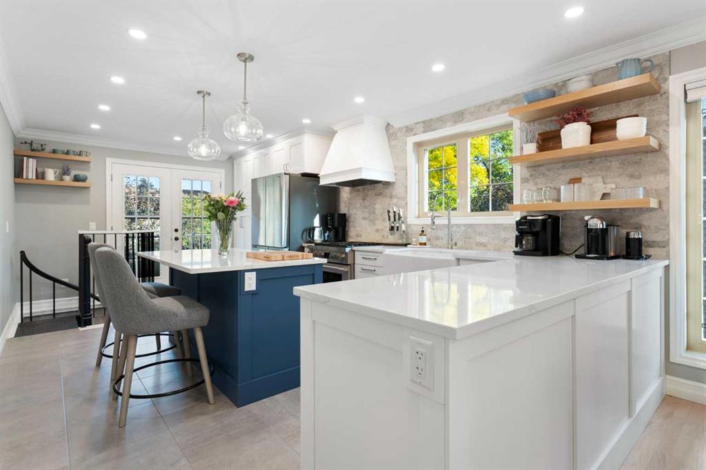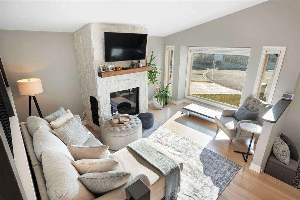 ***PLEASE CHECK OUT THE 3D WALKTHROUGH*** Welcome to this stunning and unique 4 bedroom, 3 bathroom home, perfectly situated in a quiet Scenic Acres cul-de-sac. Fully renovated in 2024, this property blends modern luxury with one-of-a-kind character. Inside, you’ll find real red oak hardwood, custom crown moulding, knockdown ceilings, and custom blinds. The striking spiral staircase from the historic Burns Meat Packing Plant, paired with a custom iron railing from a downtown Calgary landmark, makes this home truly unforgettable. The gourmet kitchen is a chef’s dream with a Fulgor gas stove, built-in wine fridge, custom cabinetry, and imported Spanish tile. French doors off both the kitchen and primary suite open onto a massive deck, perfect for entertaining. Two custom gas fireplaces add warmth and elegance throughout. The walkout lower level extends your living space and opens directly onto the stunningly landscaped backyard, complete with extensive stamped concrete, lush blooming gardens, a dog run, and a large custom-built shed. A standout feature is the oversized garage with 14-foot ceilings and mezzanine, offering endless storage or workshop space. With thoughtful upgrades like an updated central vacuum system and fully custom finishes, this home is a rare find in Scenic Acres.