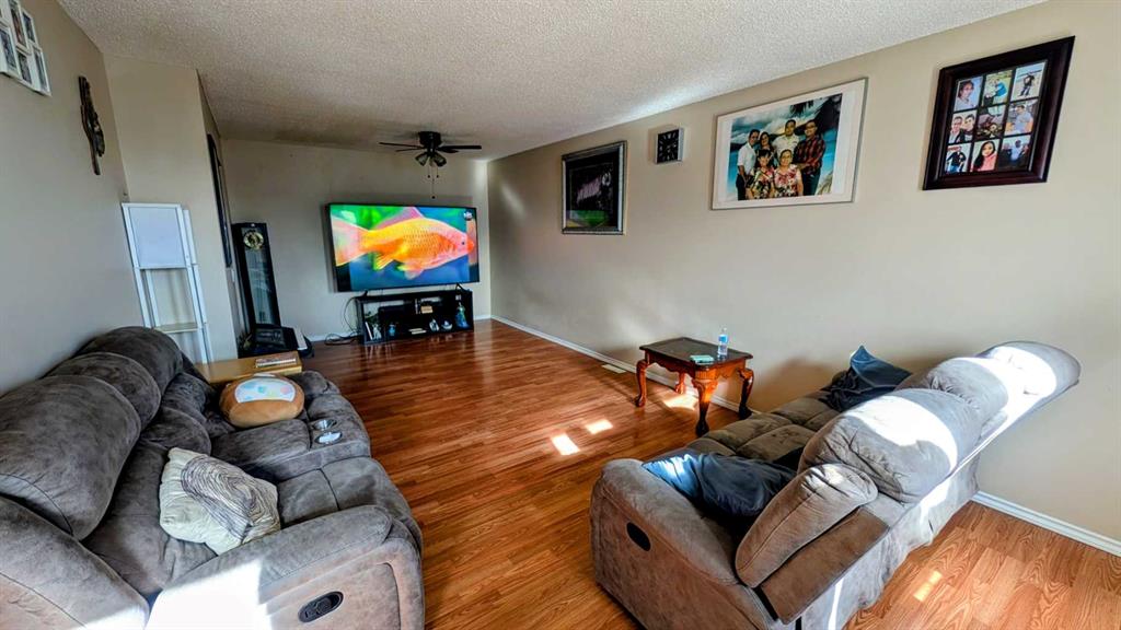 Welcome to this beautifully updated 5-bedroom half duplex in the family-friendly community of Pine Ridge! With over 1,800 sq. ft. of developed living space, this home offers exceptional value and versatility. The main floor features a bright open layout with spacious living and dining areas, and a large country-style kitchen—perfect for family meals and entertaining. Enjoy the comfort of a generous primary bedroom and two additional bedrooms on the main level. Recent upgrades include new roof shingles, laminate flooring, refreshed kitchen, updated baths, and newer windows. The lower level is developed with large windows, an updated kitchen, a family room, two additional bedrooms, and a shared back entrance—a secondary suite would be subject to approval and permitting by the city/municipality. Outside, enjoy the fenced backyard with mature apple trees, a welcoming front porch, and parking for up to four vehicles. Located close to schools, parks, transit, and shopping, this home is an excellent opportunity for first-time buyers or investors seeking space, comfort, and convenience.