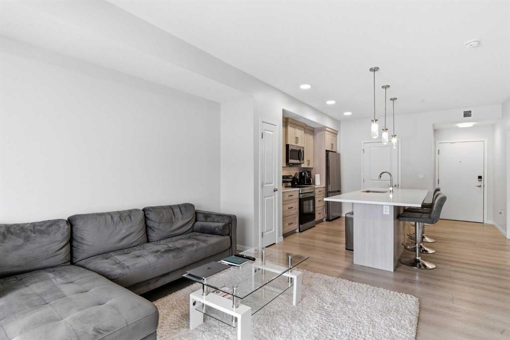 Welcome to Belmont, Calgary's fast-growing, master-planned community designed for modern living with easy connectivity and future growth. Enjoy parks, playgrounds, a growing network of pathways, with quick access to Macleod Trail and Stoney Trail for easy commuting. Belmont is rapidly evolving with major amenities underway, including a major fieldhouse, public library, and a large retail hub. Inside you will find modern finishes, including a large quartz island in the kitchen and LVP flooring throughout the entire unit. The large south facing windows bring in plenty of light. The living room features a beautiful electric fireplace with mantle. The primary bedroom is spacious with a large closet and a 4pce ensuite bathroom with upgraded cabinetry. There is a second bathroom a second full washroom and a convenient in-suite laundry room. This unit comes complete with an underground titled parking space. This condo is pet-friendly and airbnb friendly with board approval. Belmont is planned to become a true lifestyle destination with a future recreation center, schools and a proposed LRT station, positioning it as one of the most complete and convenient communities in Calgary's south.