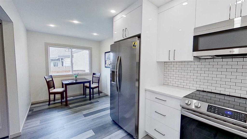 FULLY RENOVATED, beautiful, 1100 sq ft home with sizable fenced and gated yard. NO CONDO FEES. It's close to all amenities, and minutes away from downtown. Everything is new. Modern finishes throughout. Luxury vinyl planks on the main floor, tastefully chosen carpets in the bedrooms on the second floor and in the basement. Brand new premium kitchen cabinetry with quarts countertops , ample of pot lighting and premium stainless steel appliances package. Huge living room with a beautiful bay window overlooking the fenced yard. Fully renovated 4 piece bathroom upstairs and renovated, full bathroom with the shower in the basement. Pantry room and dining room connected with the kitchen. Linen closet on the second floor. Game room and 4th bedroom in the basement. Laundry room with the washer and new dryer is located in the mechanical room. Besides big closets in each of the 4 bedrooms, there is extra storage in the basement. Brand new, high efficiency furnace and electrical panel. Newer roof updated with premium asphalt shingles and newer vinyl windows and entry door. Brand new deck with paver stones finishes around the stairs. The fence has a gate to park your RV or trailer. The home is move in ready and perfect for a growing family.