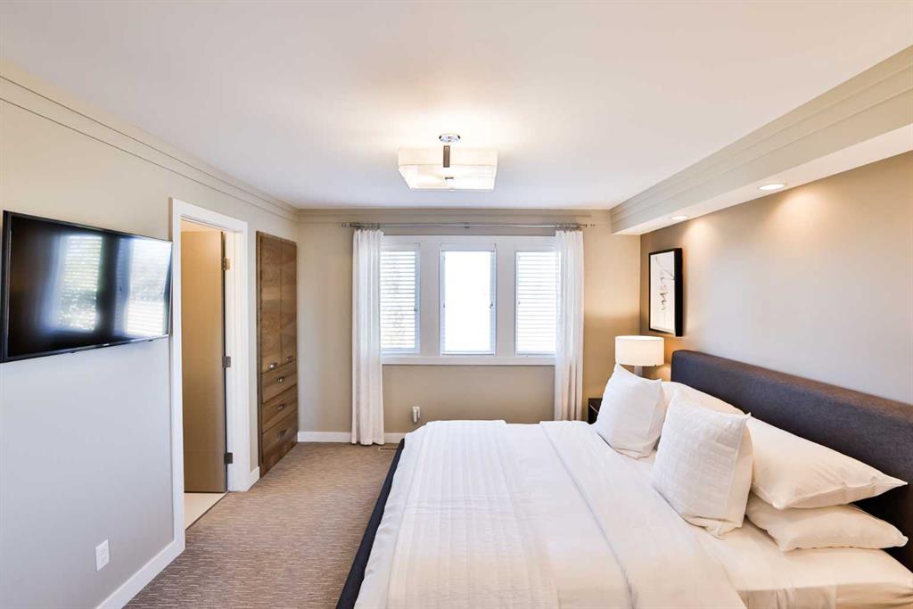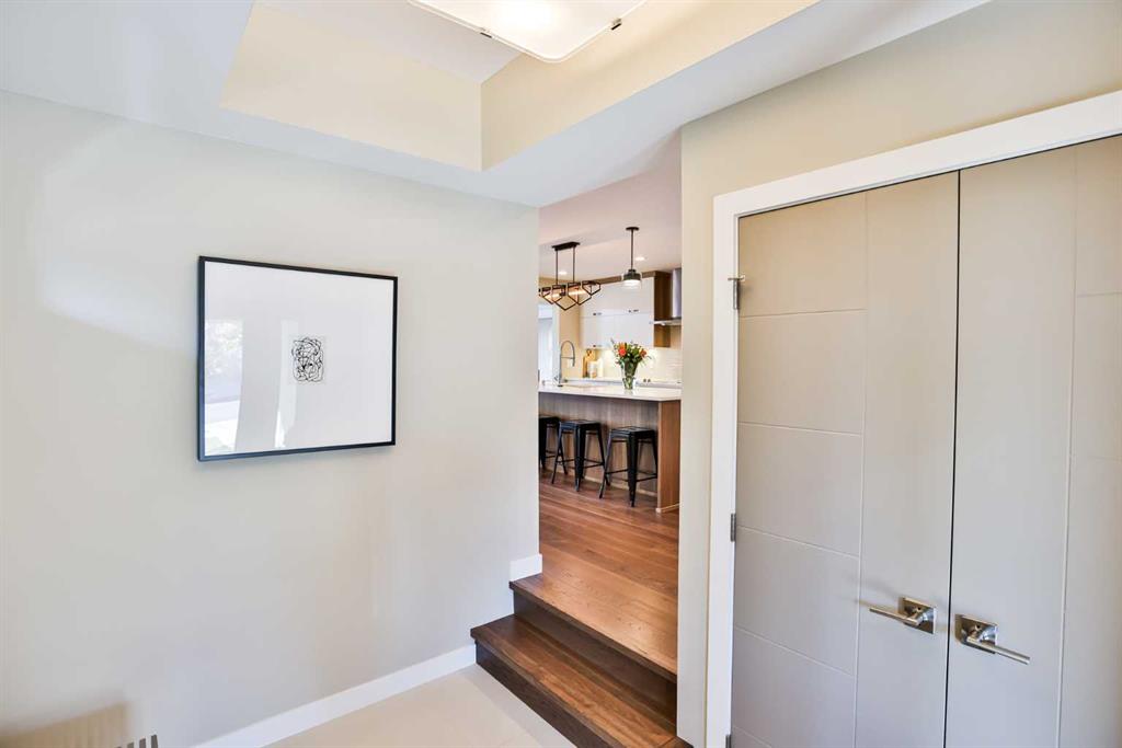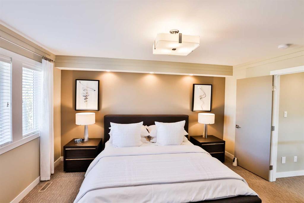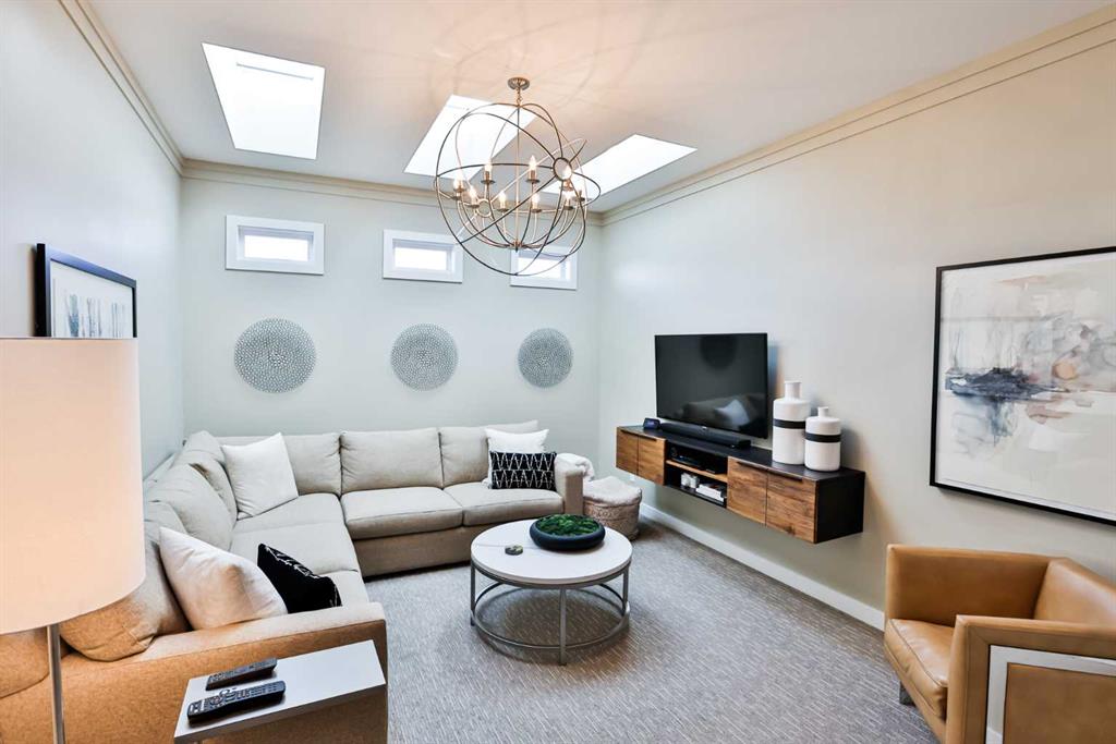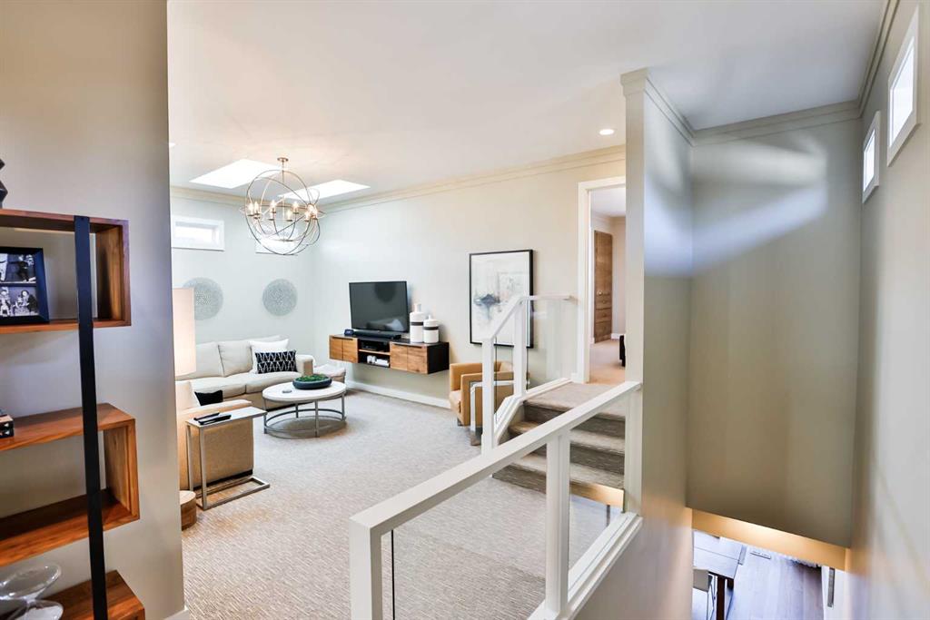 This modern masterpiece embodies luxury without compromise. From the moment you arrive, it’s clear that no detail has been overlooked and no expense spared. Clean architectural lines, expansive windows, and seamless indoor-outdoor living set the tone for a home that’s equal parts style and substance. The exterior features durable Hardy board siding and a beautifully detailed vestibule entryway that welcomes you inside. Coffered ceilings, a step-up to stunning engineered hardwood floors, and a sleek white quartz kitchen with two-tone modern cabinetry make an immediate impression. Gold-accented Whirlpool appliances in ice white complement the cabinetry, while a built-in modern china cabinet with interior lighting anchors the island and provides stylish separation. Off the kitchen, double sliding doors open to a versatile flex space—perfect for a home office, lounge, or playroom—complete with built-in cabinetry and a temperature-controlled wine fridge. The rear entry showcases a custom coffee bar, built-in cabinetry, and roll-out pantry drawers, making for an ideal prep and storage area. A tucked-away powder room features stunning wallpaper for a touch of drama, and the unfinished basement offers room for additional bedrooms, a bathroom, and a large family space. The living room impresses with 10-foot ceilings, bulkhead detailing with striking window coverings ($15,000) and floor-to-ceiling limestone rockwork surrounding a gas fireplace. Oversized windows and patio doors bring the outdoors in, leading to a large rear deck with aluminum railing, natural gas hookup, and beautifully landscaped yard. Features include underground sprinklers, decorative curbing, exposed aggregate, and a eight-person hot tub beneath a charming pergola—your private backyard oasis. An extra-wide staircase with photo-sensor lighting leads to the upper level, where 10-foot ceilings in the bonus room and a skylight flood the space with natural light. Two spacious front bedrooms, a large main bath, and second-floor laundry add everyday convenience. The primary suite is a true retreat, set apart by a custom glass-railed staircase and modern crown molding with pot-light detailing. A walk-in closet and two custom built-ins provide abundant storage. The spa-inspired ensuite features a double floating vanity, water closet, exquisite glass-tiled shower with dual heads, and heated floors for year-round comfort. Additional highlights include a dual-furnace system, gemstone exterior lighting (front and back), garburator, soft-close toilets, central vacuum, humidifier, and extensive lighting upgrades. The heated, oversized epoxy-floored garage offers ample storage and built-ins. Located in desirable Sixmile, this exceptional home offers easy access to Southside amenities and feels like a show home that’s just been built and READY FOR YOU TO MOVE INTO!