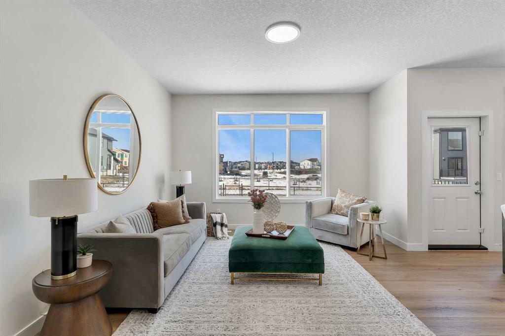 Stylish, steps to the lake, and ready for you to call home. Welcome to this beautifully appointed, brand-new, award-winning Alliston at Home front-attached garage duplex, ideally located just steps from Chestermere Lake. Offering a thoughtful and functional floor plan with gorgeous finishes throughout, featuring 3 bedrooms, 2.5 bathrooms, a side entrance to the basement and backing onto a pathway with a lake view, what's not to love? Inside, the open concept kitchen, living room and dining area features wide luxury vinyl plank flooring and airy 9' ceilings, creating a bright and spacious feel. The kitchen will please the chef of the home with quartz countertops, a large island perfect for meal prep and entertaining, classic white 42" cabinets, sleek stainless steel appliances and a dedicated pantry. Triple-pane windows, which are a standard feature at Alliston Homes, flood the space with natural light. A powder room and a spacious foyer with a large closet off the double-attached garage complete the main level. Step outside to the sunny backyard, complete with a deck equipped with a gas line for BBQs, and enjoy lake views year-round. Whether swimming in the summer or skating in the winter, this location is all about connection to the outdoors. The spacious yard offers ample space for children or pets to play. Upstairs, the primary suite is a comfortable retreat, featuring a large walk-in closet and a spa-inspired ensuite with dual sinks and a spacious walk-in shower. Two additional bedrooms and a convenient laundry room complete the 2nd level. The unfinished basement, with 9-foot ceilings and a side entrance, offers endless potential for future development and equity-building ideas. This property is turnkey, complete with front and back landscaping, and is close to schools, shopping, and the city.