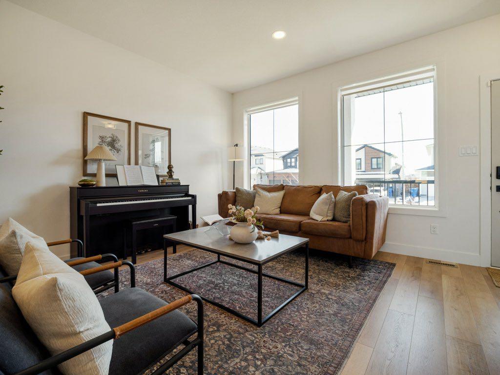 Thinking of buying a new Home! Consider buying this 6 year old home in fantastic condition. LOOK AT ALL THE INCLUSIONS YOU GET! Developed basement, fenced yard, landscaping, patio, central air, kitchen appliances, Washer, Dryer, Blinds, window coverings, and the balance of NHW remains with the home. Bright open floor plan on the main floor, kitchen with quartz countertops, large island, and gas Range. Upstairs you will find the primary bedroom with walk in closet and 5' shower, long vanity with under mount sink, tile floors in the ensuite. There are 2 additional kids bedrooms, full bath and convince of laundry as well. The basement is developed with family room, another full bathroom and a 4th bedroom. Outside there is a double parking pad in back with an electrical line run to it for a future garage. The kids will enjoy the yard but will really love the Play Ground, Park and School located on steps away. Great location with only a short driving distance to all the conveniences of shopping, big box stores, banking etc. Truly a turn key home, JUST BRING YOUR FURNITURE