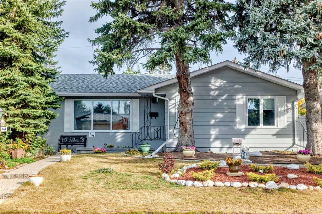 Welcome to 44 Gordon Drive! This beautifully maintained bungalow radiates pride of ownership from the moment you step inside. The main floor features a bright, south-facing living room that flows seamlessly into the spacious formal dining area. The kitchen is thoughtfully designed with ample cabinetry, space for a casual dining table, and a lovely view of the cheerful backyard. Down the hall, the primary bedroom offers two closets and a private ensuite. Two additional well-sized bedrooms and a full 4-piece bathroom complete the main level. The fully finished basement adds even more living space, complete with newer carpet, a cozy electric fireplace, and a 3-piece bathroom built within the past five years. You’ll also find a generous storage room with shelving and a cedar closet, a roomy utility space with additional storage under the stairs, and a 4th bedroom. The utility area includes central vacuum, a newer hot water tank (2024), a water softener system, and the original but meticulously maintained furnace. Outside, the backyard is a true retreat with its beautifully landscaped yard, brick patio, and raised garden beds—perfect for summer evenings. The detached garage, built in 2019, includes a Level 2 EV charger. Additional highlights include newer carpet in basement (installed within the past 5 years) and original hardwood flooring beneath the main level carpets if you prefer a different look. Move-in ready, this charming home is located in the desirable, well-established community of Glamorgan, with quick access to Richmond Road, 37 Street W, Glenmore Trail, and Sarcee Trail.