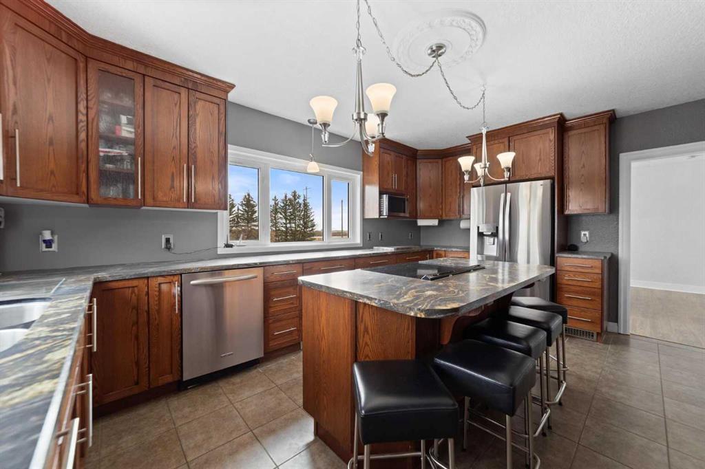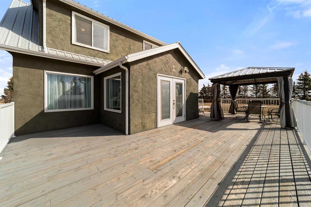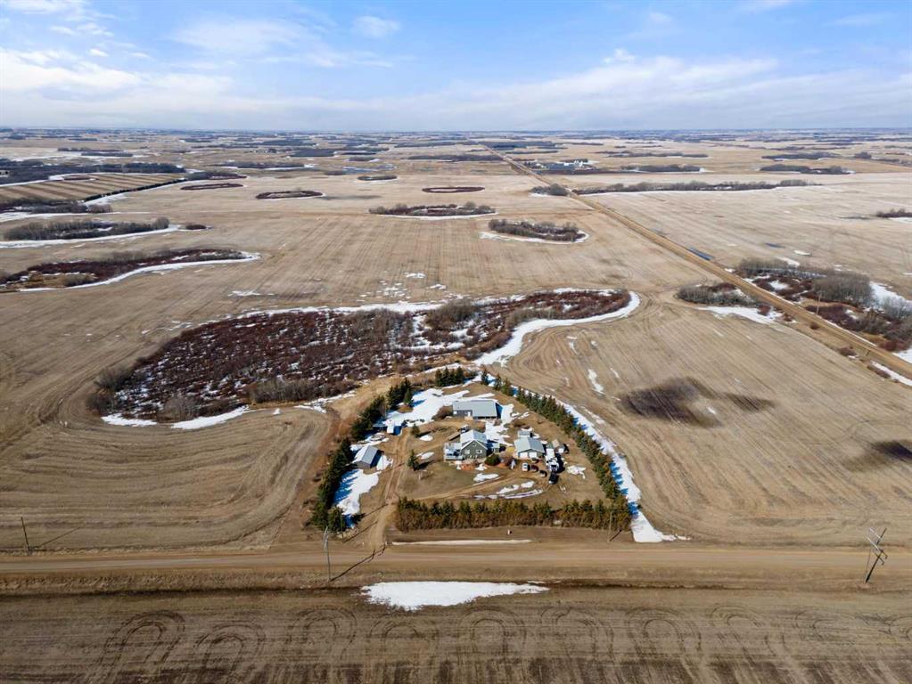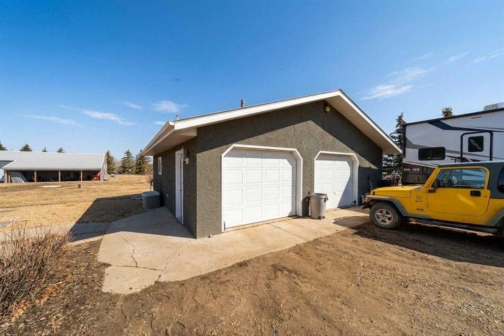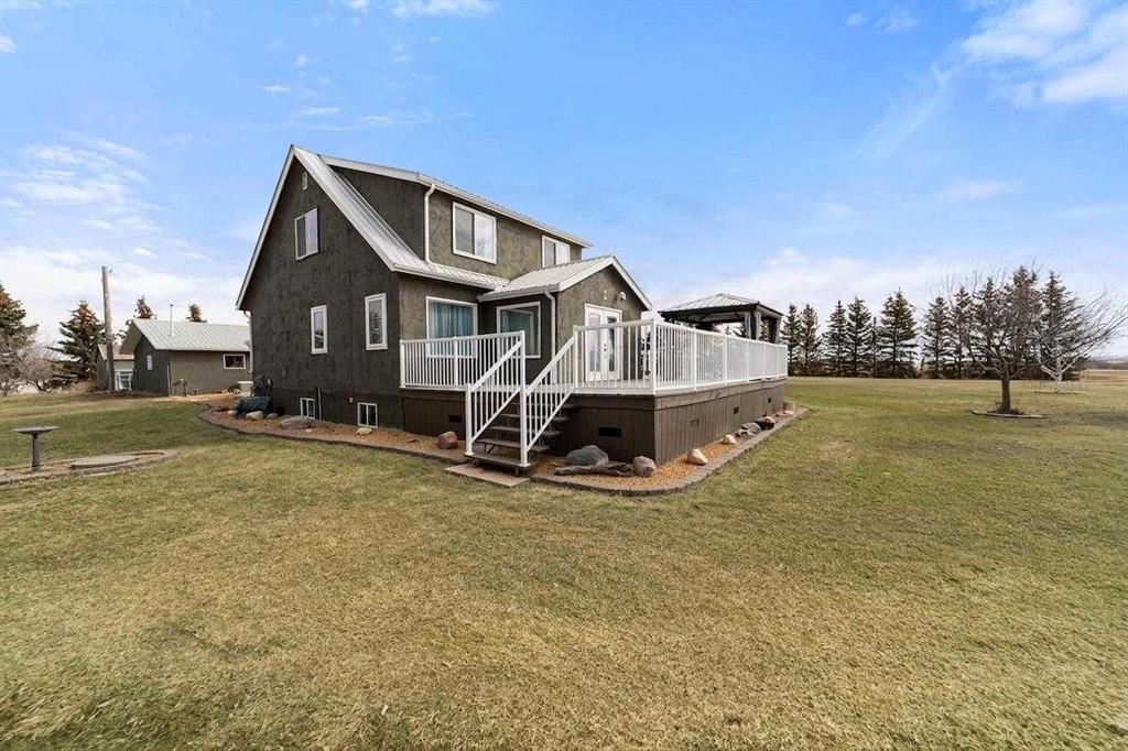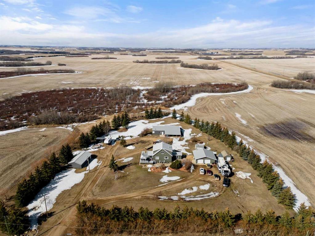 Spacious and well-maintained acreage offering the perfect blend of comfort, functionality, and outdoor living! This property has seen numerous updates over the years, including a metal roof (approx. 10 years old), updated attic insulation, vinyl windows throughout, central air conditioning - and it was professionally lifted onto a new concrete foundation in 1996! The main floor is designed for both everyday living and entertaining - starting with the MUST have of any Alberta acreage - the mud room, which not only has its own wash sink, BUT also has in-floor heating! Into the beautiful and bright kitchen, which features stainless steel appliances, an island, abundant counter space, a coffee bar area, and large windows that flood the space with natural light. Enjoy the multiple living areas, including a dining space, cozy living room, and a sunroom/den with direct access to the deck. Finishing off the main level is a well-appointed 4-piece bathroom with a corner jet tub, tiled shower, and convenient stackable laundry. Upstairs, you’ll find four bedrooms, including a spacious primary suite with a walk-in closet, along with a beautifully appointed bathroom featuring a soaker tub, separate shower, and elegant chandelier. The lower level provides excellent storage and utility space, with in-floor heat, a cold room, and an upgraded furnace (installed in 2015 & a new motor in 2026). Outside, this property truly shines - not only do you have plenty of interior entertaining space, but you have a large deck with a pergola as well as a concrete patio area for all your needs (complete with wiring for a hot tub!) The multiple outbuildings include a heated and powered detached garage, an additional garage (20x36), a shop (30x60) with in-floor heat, water, and an in-floor drain system, a bathroom w/laundry & two 12x32 covered overhangs for extra storage. There is a chicken coop with power and heat, and another shed with power! Surrounded by mature trees and a well-established shelterbelt, the yard also features raspberry bushes and elderberry trees — offering privacy, beauty, and a true country lifestyle. A fantastic opportunity for those seeking space, versatility, and the comforts of acreage living — all ready for you to enjoy.