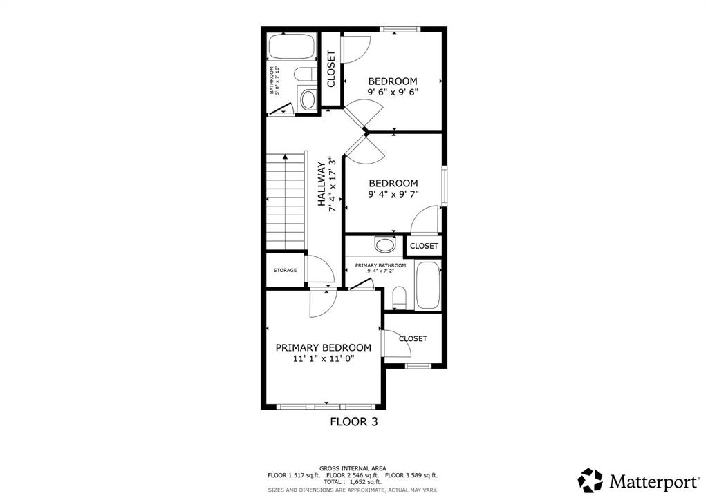 | Bedroom - Primary | 11`1" x 11`0" | Second |