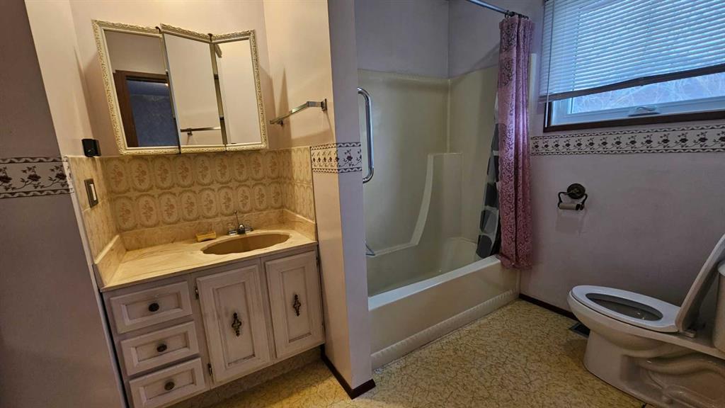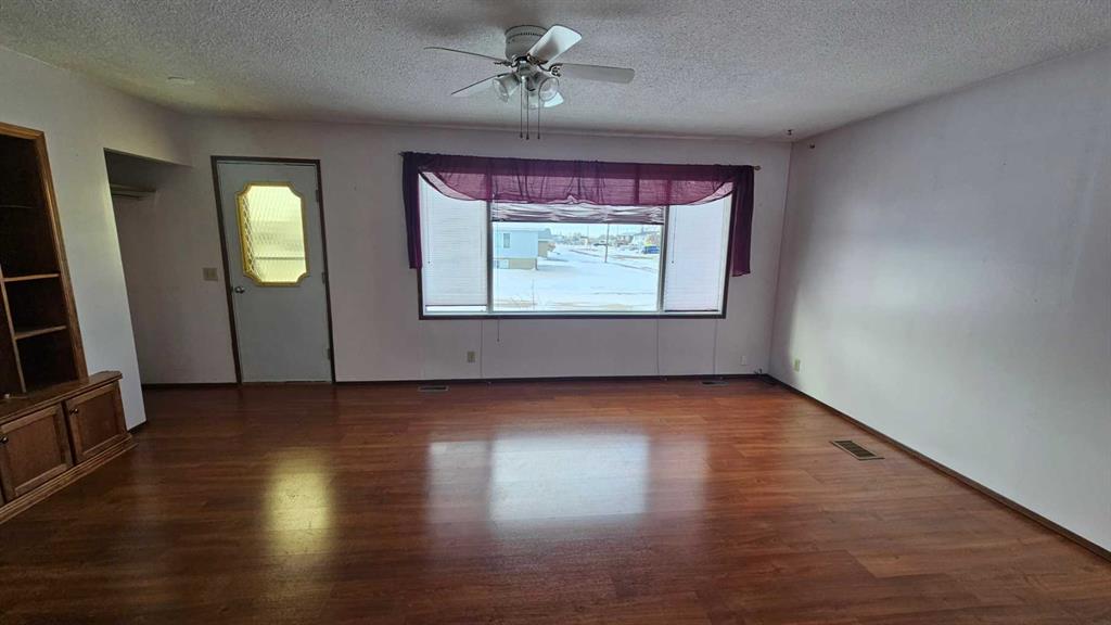 Great four bedroom and two bathroom home in the NE part of Coronation, with 1092 sq ft, attached double heated garage and large corner lot. This home has been moved to its present location many years ago and still the same owners(30+). The roomy kitchen has access to the back deck of the property through the garden doors, with an abundance of cupboards and countertops makes this a great spot to work in. It has enough room for a table also. The large living room is off to the front of the home and has laminate flooring. Off the back entry is the main floor laundry which is beside the stairs going down. There are three bedrooms and one four piece bathroom. Downstairs is the large L shaped family and recreation room, with wall board and carpet. There is a four piece bathroom and a very roomy bedroom also. The furnace has been for replace in the last 15 years, while the shingles in the last 5 years. Another feature that is great is the double attached heated garage that is accessible from the basement.