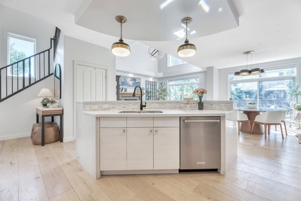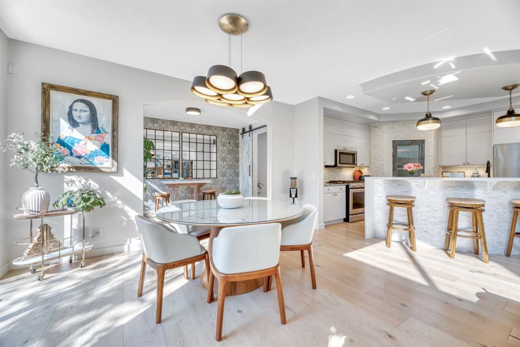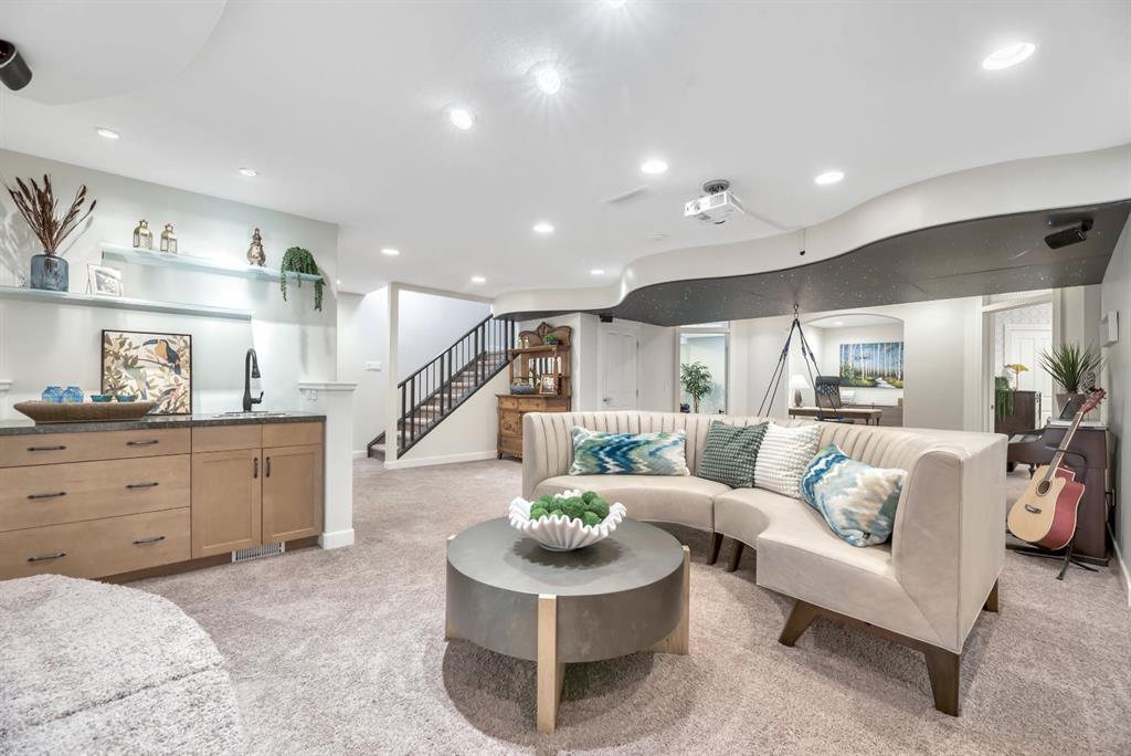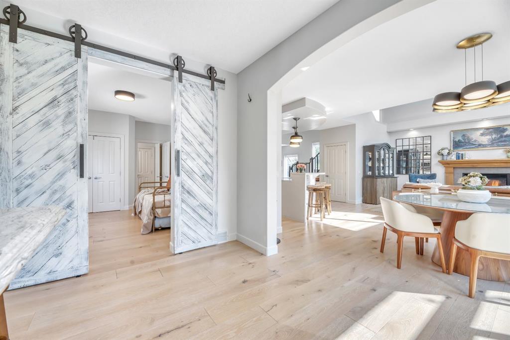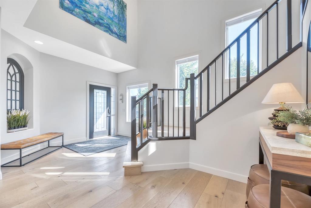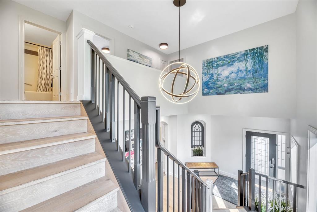 Welcome to this stunning custom designed home in the prestigious Estates of Cranston, siding onto green space and play park, surrounded by mature trees and walking distance to the picturesque ridge. From the moment you arrive, the impressive stone exterior and meticulously landscaped yard set the tone for what’s inside. Step through the front door into a bright, airy foyer with soaring ceilings and a dramatic staircase that immediately draws you in. The open-concept main floor is bathed in natural light from oversized windows, showcasing beautiful wide-plank white oak hardwood floors and thoughtful designer touches throughout. The spacious great room features a modern chandelier, large picture windows with serene backyard views, and a warm yet contemporary design perfect for both relaxing and entertaining. The dining area flows seamlessly into the stylish kitchen and cozy breakfast/study/reading nook, step out to the backyard for easy indoor-outdoor living. Additionally, the main floor offers a full bedroom and a full bath—ideal for generational living, guests or a home business. This home also offers the option to be accessible on the main floor - can offer a wheelchair lift from the garage to the main. The beautiful kitchen offers a curved island for people to gather around, gorgeous finishes, newer Kitchenaid appliances (with extended warranty) and a walk-through pantry from the triple heated garage (with double drive door and INDOOR HOT TUB to relax), seamlessly connecting to the dining and living areas. The lighting selections offered in the home is a true DELIGHT! Upstairs, you’ll find two spacious bedrooms, a full bath, and a massive primary oasis highlighted by a brick feature wall - industrial yet warm and an enclave vaulted dormer. The luxurious ensuite offers a spa-like experience with dual vanities, soaker tub, oversized shower, and a 21’ long walk-in closet with another vaulted dormer. There is definitely not a lack of storage in this home! The finished basement is a true showpiece with a stunning nightfall starry ceiling light feature, large recreation theatre room with projector and power screen, wet bar, home gym (easily converted back to a bedroom), den, additional bedroom, and full bath. So much space for all the activities! Peace of mind is paramount with a newer furnace (1 of 2) and hot water tank as is having summer comfort with Central Air (2 units). Outside, the backyard is a private oasis with lush landscaping, mature trees, and access to nearby walking paths and parks. On the side of the house there is a beautiful courtyard type space to enjoy the sun rise and watch your kids play in the park next to your home. With its prime location, functional design, and high-end renovations, this home delivers the perfect balance of elegance, style and comfort in one of Calgary’s most sought-after communities.