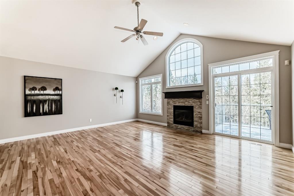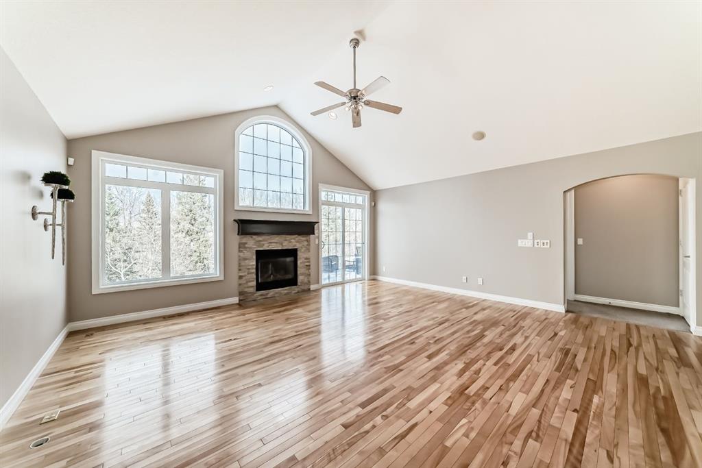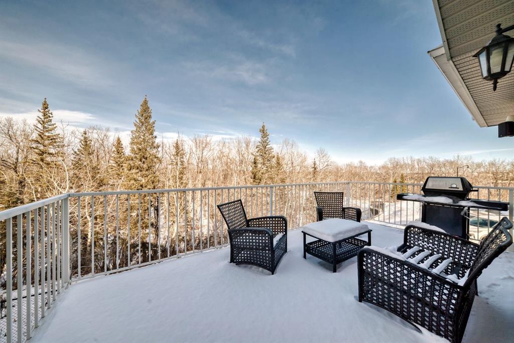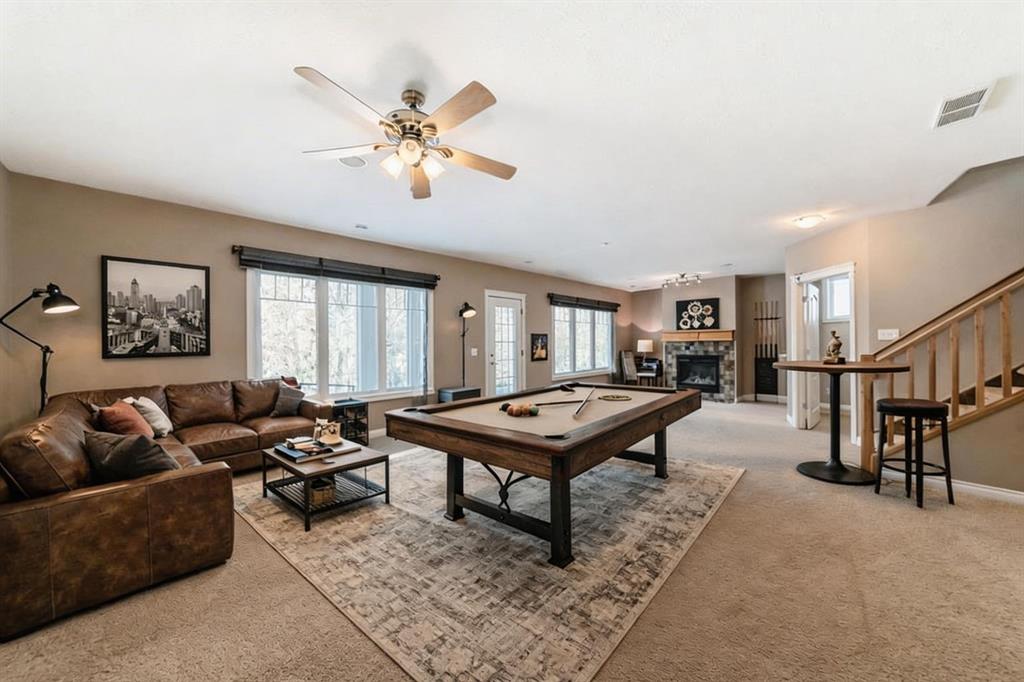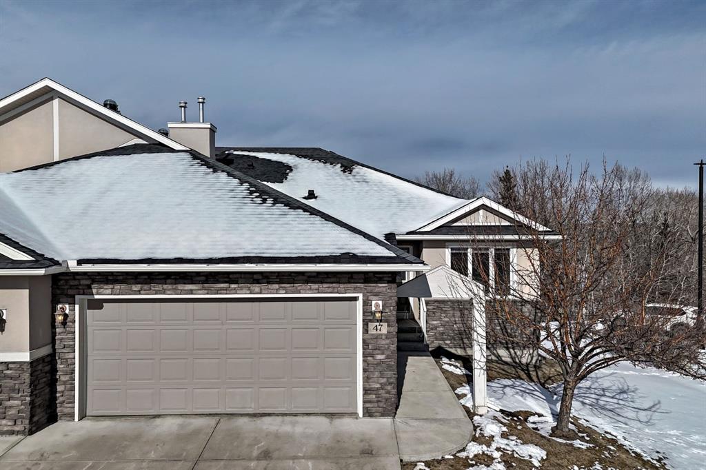 BEAUTIFUL ESTATE VILLA | FULLY DEVELOPED WALK-OUT BASEMENT | IN-FLOOR HEAT | UPGRADES THROUGHOUT | BACKS ONTO SHEEP RIVER VALLEY | Rarely does a home like this come available!!! Tucked away in a quiet & tranquil location, this home is fabulous…showcasing a dramatic vaulted ceiling in a spacious & open floor plan with large windows allowing for an abundance of natural light & breathtaking views of the woods of Sheep River Valley! The main level features a terrific layout that is not only stylish but also functional…the kitchen is beautiful with white quartz countertops, a huge island with undermount sink, stainless steel appliances including a brand new stove & a walk-through pantry. The kitchen overlooks the open dining area & huge living room with gas fireplace…perfect for entertaining! From the living room, the patio doors open to the deck that looks out onto the woods…your oasis to enjoy Mother Nature! The Master bedroom is generous in size, has custom window coverings & a renovated 5pc ensuite with dual sinks, jetted tub, separate shower & walk-in closet. Completing this main level is a sunny den (with closet), large tiled foyer, laundry & mudroom. The walkout basement, with in-floor heat throughout, is fully finished…there is a huge family/rec room with gas fireplace & fantastic wet bar…spacious enough to allow for a full games area and a separate family/sitting area. There are 2 additional bedrooms (both large is size), a 4pc bathroom & additional storage. From the family room you have direct access to the covered patio. EXTRA FEATURES: Newly repainted, in-ceiling speakers, high ceilings, central A/C, low condo fees, and more! This home is available for a quick possession! Don’t let this incredible opportunity pass you by!