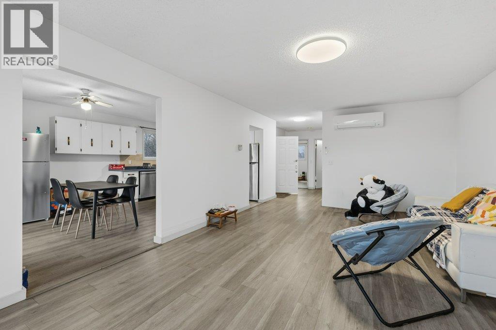 Turnkey investment opportunity in a prime location to UBCO and City center. This nicely updated 4-bedroom, 2-bathroom home is perfectly positioned for strong rental demand and long-term appreciation. The upper level offers two large bedrooms, a spacious living area, and an eat-in kitchen with new appliances, plus in-suite laundry for added appeal and convenience. The lower level is ideally configured for revenue generation, featuring two additional oversized bedrooms, a full bathroom, laundry, and a newly installed kitchenette with dining area—an excellent student rental or mortgage-helper setup. Ample parking is a major value add, with a single garage and plenty of space for multiple vehicles, an RV, or recreational toys, an increasingly rare feature. The backyard is flat and fully fenced with mature fruit trees offers private outdoor space with minimal maintenance. Extensive updates including new flooring, modern lighting and paint, and three new ductless heat pumps make this a low-risk, high-appeal asset. A solid income property for investors or a smart entry point for first-time buyers looking to offset ownership costs.