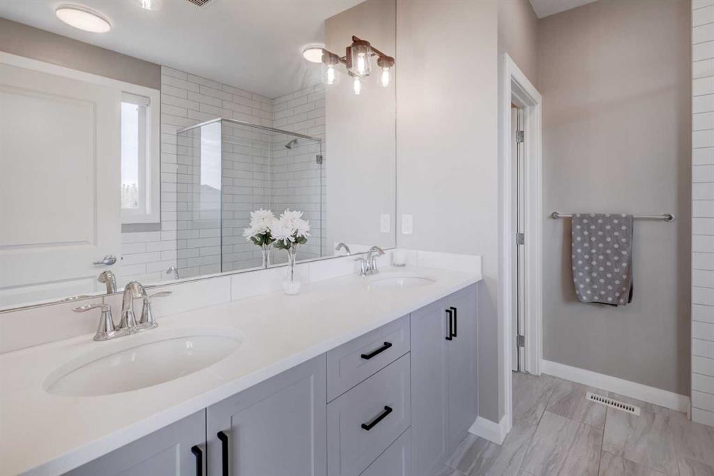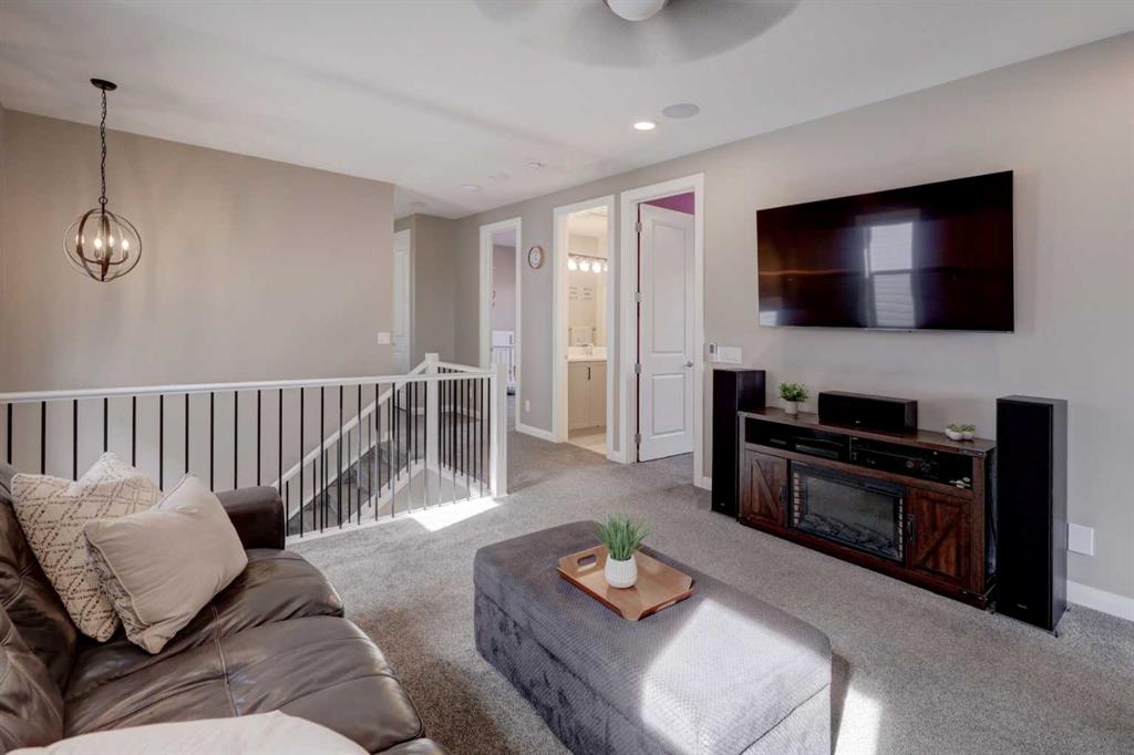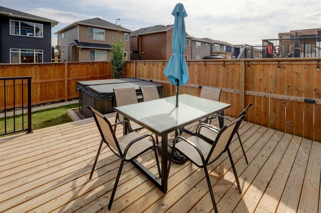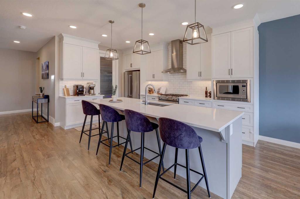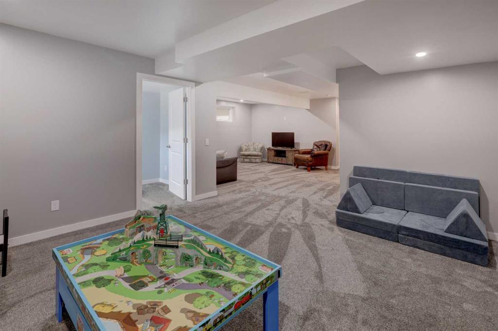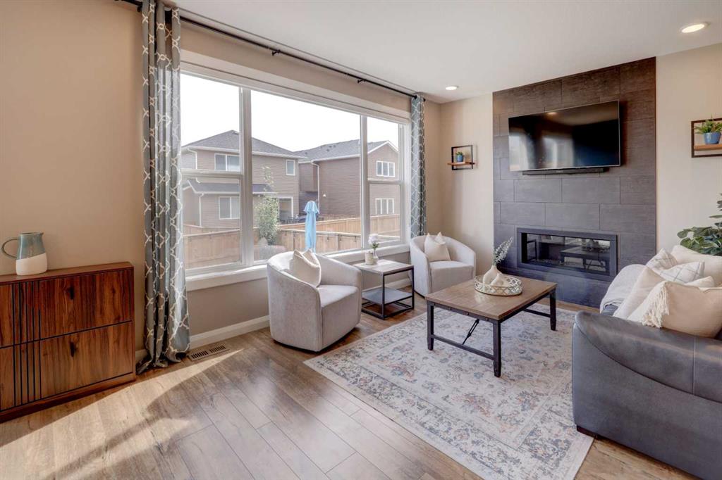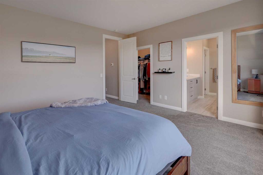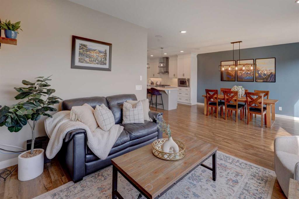 HOME SWEET HOME! Welcome to this beautifully upgraded two storey family home perfectly located in the desirable community of Rivercrest in Cochrane. With 5 bedrooms, 3.5 baths and over 3,579+ SQFT of total living space this home has everything that you could want! As you enter the home you will instantly notice the luxury vinyl plank flooring and sun-drenched mud room with a bench. Moving into the kitchen and main living area you will notice the large kitchen quartz island, perfect for hosting gatherings. The upgraded kitchen is a chef's dream, complete with a gas range, quartz countertops and high-end stainless steel appliances. Just off the kitchen is the office/den with large french doors for privacy. The open concept on the main floor allows you to move with ease between the large dining space and living room where you can enjoy the warmth from the gas fireplace on those cold days. Stepping out onto the large east facing deck through the oversized patio doors you can spend those long summer days BBQing and using the hot tub (included). Heading up to the second level, you get breathtaking mountain views and you can't help but notice the 9 ft ceilings and 8 ft doors while sitting in the bonus room area. The large primary bedroom features a large walk-in closet and a spa-like 5 piece ensuite with a cozy soaker tub and double vanity sinks you will look forward to relaxing. The other 3 bedrooms have ample space and conveniently feature walk-in closets. Don't forget the fully finished basement that features another full bath, bedroom and a large recreation space that can be utilized to suit your needs. This home features a double attached heated garage with additional driveway parking. Located in a extremely family-oriented community close to all major amenities including schools, walking paths, shopping, restaurants and a quick drive to both Calgary and endless opportunities for outdoor adventures. This location is ideal for those looking to embrace a balanced lifestyle, with the majestic Rocky Mountains just a stone's throw away, offering year-round recreation for outdoor enthusiasts. MUST VIEW! Don't wait, book your private viewing of this GEM today!