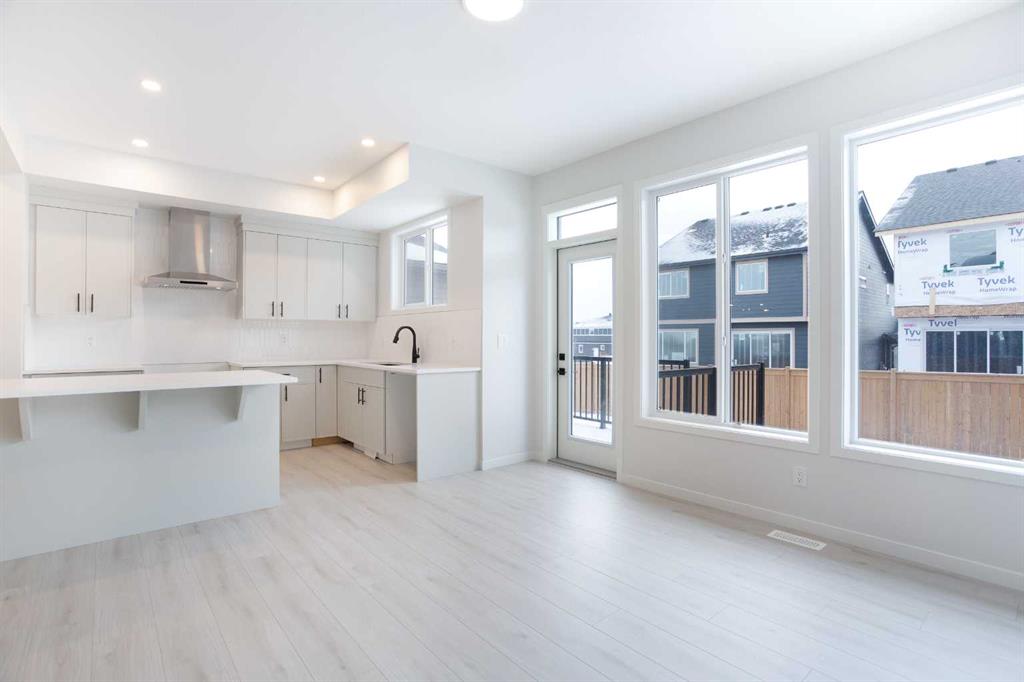 Welcome to this beautifully designed Morrison Homes Dillon I model, a striking two-storey semi-attached home situated in the highly desirable and rapidly growing community of Sirocco at Pine Creek. Offering over 1,600 sq. ft. of thoughtfully finished living space above grade, this home combines modern elegance with practical design, complemented by a front-attached double garage and an intelligently planned layout that effortlessly balances style, comfort, and everyday functionality for families of all sizes. The main floor is designed for both entertaining and everyday living, featuring an open-concept layout bathed in natural light, highlighted by light grey luxury vinyl plank flooring that flows seamlessly throughout. The contemporary kitchen is a true centerpiece, equipped with sleek grey cabinetry accented with black hardware, quartz countertops, and a generous central island—perfect for meal preparation, casual dining, or social gatherings. Stainless steel appliances complete the kitchen, while the adjacent dining and living areas are enhanced by a striking grey tile feature wall with an electric fireplace, creating a warm, inviting, and modern focal point that effortlessly blends style and function. A thoughtfully designed mudroom with built-in cabinetry and storage provides a seamless transition from the garage, keeping everyday essentials organized and accessible. The main floor is completed with a convenient powder room, offering both practicality and style for family life and entertaining. Upstairs, the home continues to impress with three well-appointed bedrooms, including a private primary suite designed for comfort and relaxation. This retreat features a spacious walk-in closet and a beautifully finished ensuite bathroom with tiled flooring and a contemporary glass shower enclosure, offering a spa-like experience in the comfort of your own home. Two additional bedrooms are generously sized and share a full bathroom, also finished with high-quality modern tile. Top-floor laundry adds convenience to your daily routine, while soft carpeting throughout the upper level enhances comfort and warmth throughout the private spaces. The unfinished basement presents an exceptional opportunity for future development, providing a versatile blank canvas where additional living space, recreational areas, or extra bedrooms can be tailored to suit your family’s evolving needs and lifestyle preferences. Situated in a vibrant and growing southwest community with easy access to parks, walking and cycling pathways, local schools, and future amenities, this home combines thoughtful design, modern finishes, and long-term flexibility. From the stylish interiors to the functional layout and prime location, the Dillon I model at 49 Creekside Passage is a home that truly delivers a refined balance of comfort, elegance, and enduring value for discerning buyers seeking both quality and lifestyle in one of Calgary’s most sought-after neighbourhoods.