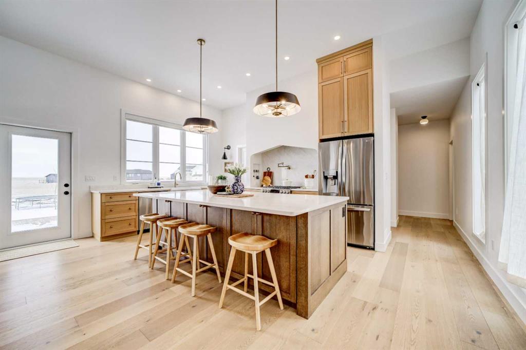 This absolutely stunning home in the Stonegate Meadows neighborhood in the town of Raymond—just 20 minutes from Lethbridge—truly pulls out all the stops! The curb appeal is undeniable with gorgeous landscaping on nearly a half acre of land complete with 17 oak and willow trees, with striking stucco and composite exterior, an engaging roofline, and a massive driveway with plenty of room for RV parking, all complemented by a heated triple car garage with space for vehicles and toys and with a drain in the floor, you can comfortably work on any project. Inside, you’re greeted by soaring 11.5-foot ceilings and an abundance of natural light pouring through oversized windows, highlighting a thoughtfully designed layout that blends luxury and functionality. The main level features a private office, stylish powder room, and a convenient back boot room with lockers (perfect for those with kids), while the showstopping kitchen offers quartz countertops, a massive 5 ft. X 10 ft. island, stainless steel appliances, a gas stove complete with pot filler, and a large butler’s pantry with endless storage. The living room is warm and inviting with a beautiful natural gas fireplace, and the entire main floor is finished in elegant and durable luxury engineered hardwood floors. The primary bedroom is a true main-floor oasis with a spa-like ensuite featuring a soaker tub, dual vanities, a walk-in shower, and a walk-in closet complete with its own washer and dryer for ultimate convenience. Downstairs, you’ll find four additional spacious bedrooms, a large family room, and plenty of room for kids to play or adults to relax, plus a second washer and dryer setup and additional storage space. This home also includes central air conditioning, underground sprinklers, and a 200 AMP electrical panel, offering comfort and room to grow. Built as the builder’s own home, you can be confident it was constructed with top-tier quality and attention to detail—this is not a home you want to miss, so call your REALTOR® today and book your private showing!