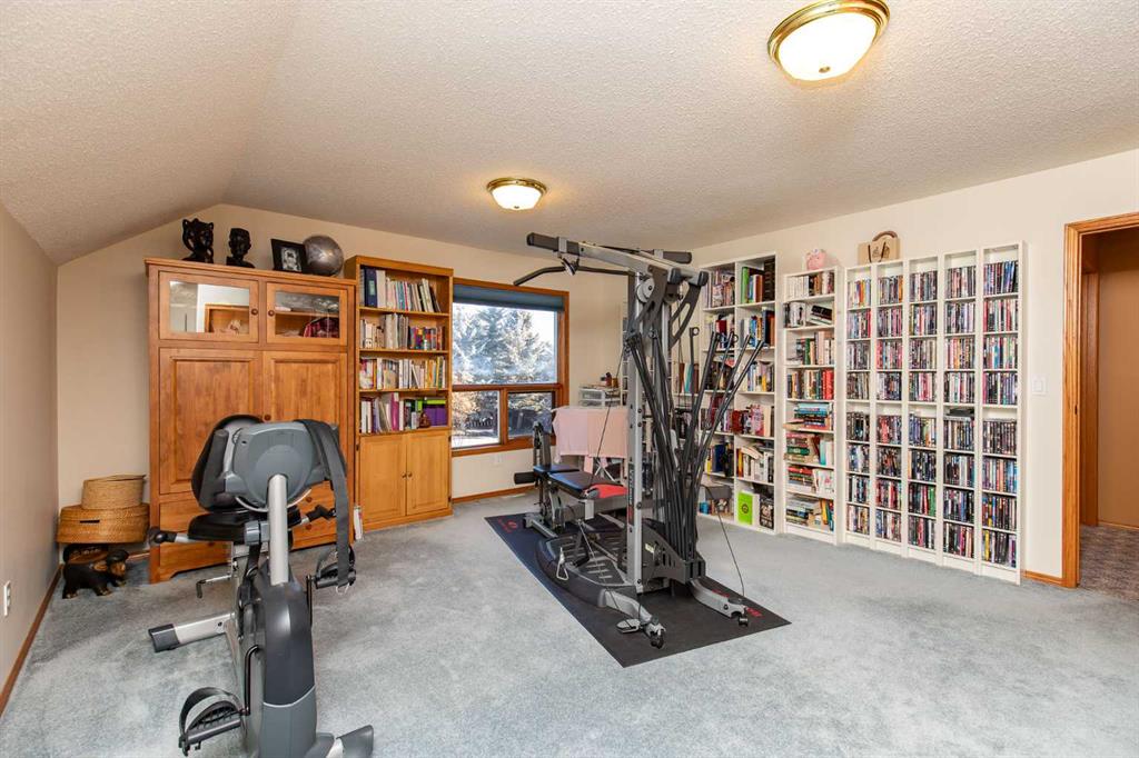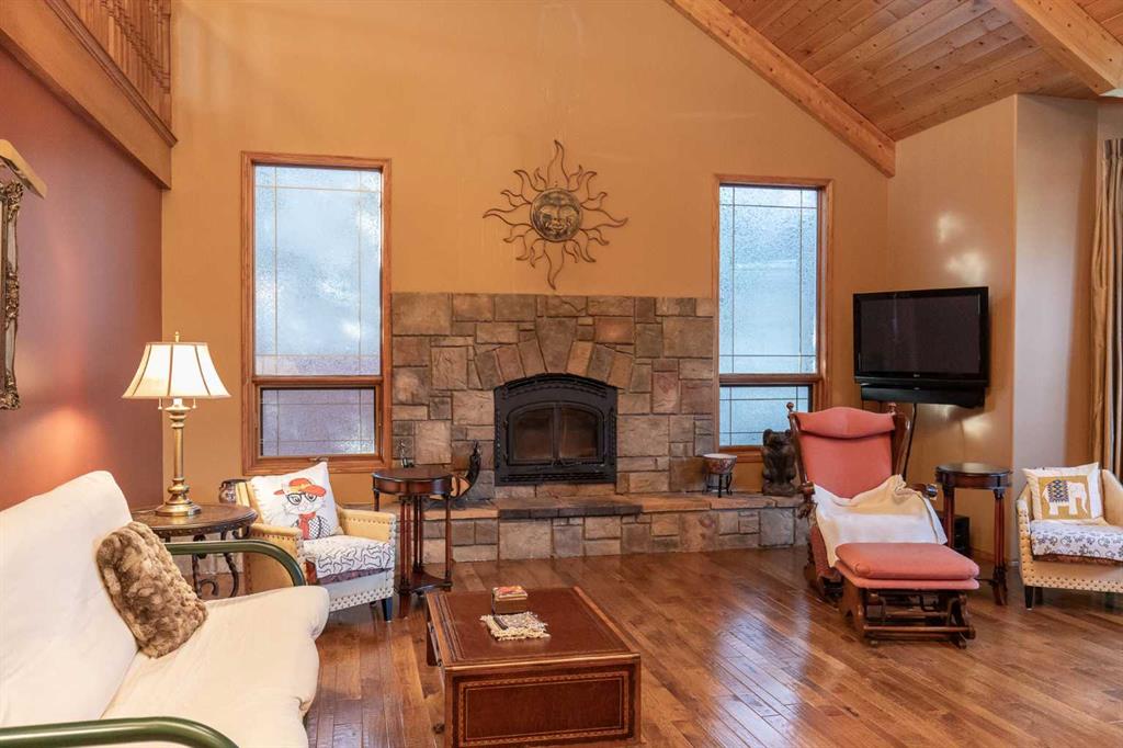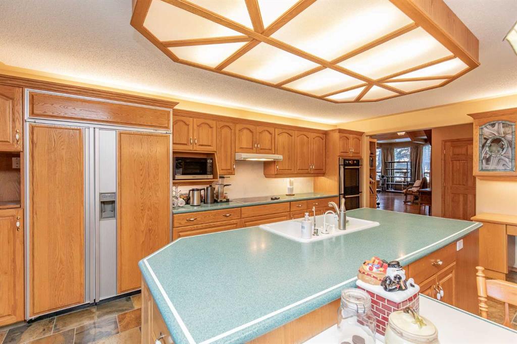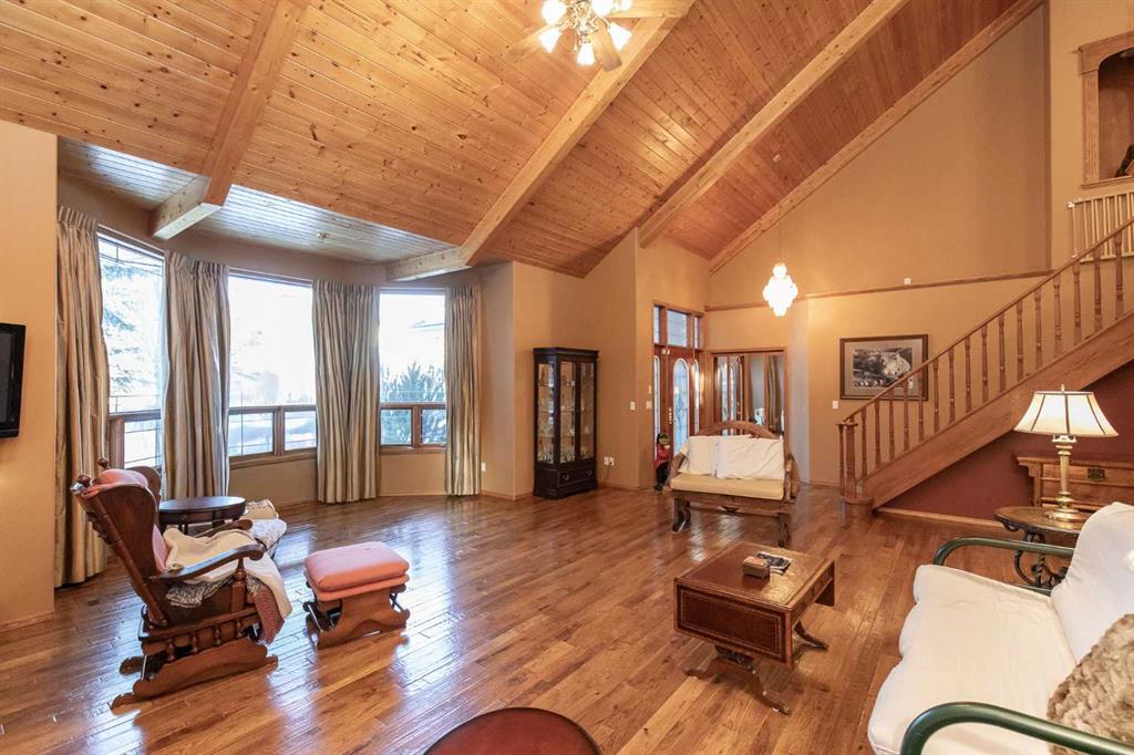 Welcome to this exceptional custom-built 4 bedroom, 3 bathroom executive home offering over 4,200 sq ft of beautifully developed living space. Ideally situated on a large, treed lot siding onto a scenic walking path, this property combines privacy, space, and thoughtful design. A soaring pine-lined vaulted ceiling creates a grand first impression as you enter the wheelchair-accessible main floor, featuring no-step entry and extra-wide hallways. The formal living room showcases a striking stone-faced fireplace, hardwood and slate tile flooring, and floor-to-ceiling bay windows overlooking the front yard. The spacious kitchen is designed for both everyday living and entertaining, offering an abundance of oak cabinetry, ample counter space, Sub-Zero refrigerator, double wall ovens, full tile backsplash, walk-in pantry, and a large island with sink and lowered eating bar. A wall of windows provides picturesque views of the park-like backyard, while a garden door leads to the covered deck and concrete patio. The adjoining dining area comfortably accommodates large family gatherings. The expansive main floor primary suite easily fits a king-sized bed and additional furnishings, and features two walk-in closets and a luxurious 5-piece ensuite complete with air tub, separate shower, dual vanities, and a private water closet with bidet. A second main floor bedroom is conveniently located next to the 3-piece main bath. The well-appointed laundry room offers extensive cabinetry, folding counter, and built-in desk. A generous mudroom off the garage entrance includes a built-in bench for added functionality. A grand staircase leads to the upper level where you’ll find a massive family room with vaulted ceiling, large windows, and wood railing overlooking the main floor. Two generously sized bedrooms (both with dual closets, one with a built-in desk) are situated off the family room and share a 4-piece bathroom. The crawl space provides additional storage options. The heated oversized triple attached garage includes in-floor heat, an RV bay, workshop space, and man doors to both the front and backyard. The beautifully landscaped yard features mature trees, shrubs, perennials, and a garden shed, creating a serene outdoor retreat. Additional highlights include three furnaces, central air conditioning, HEPA filtration system, hot water on demand, water filtration system, water softener, partially heated exterior front walkway, and call bells in the primary bedroom, ensuite, and kitchen. This is a one of a kind property that is awaiting its new owners!