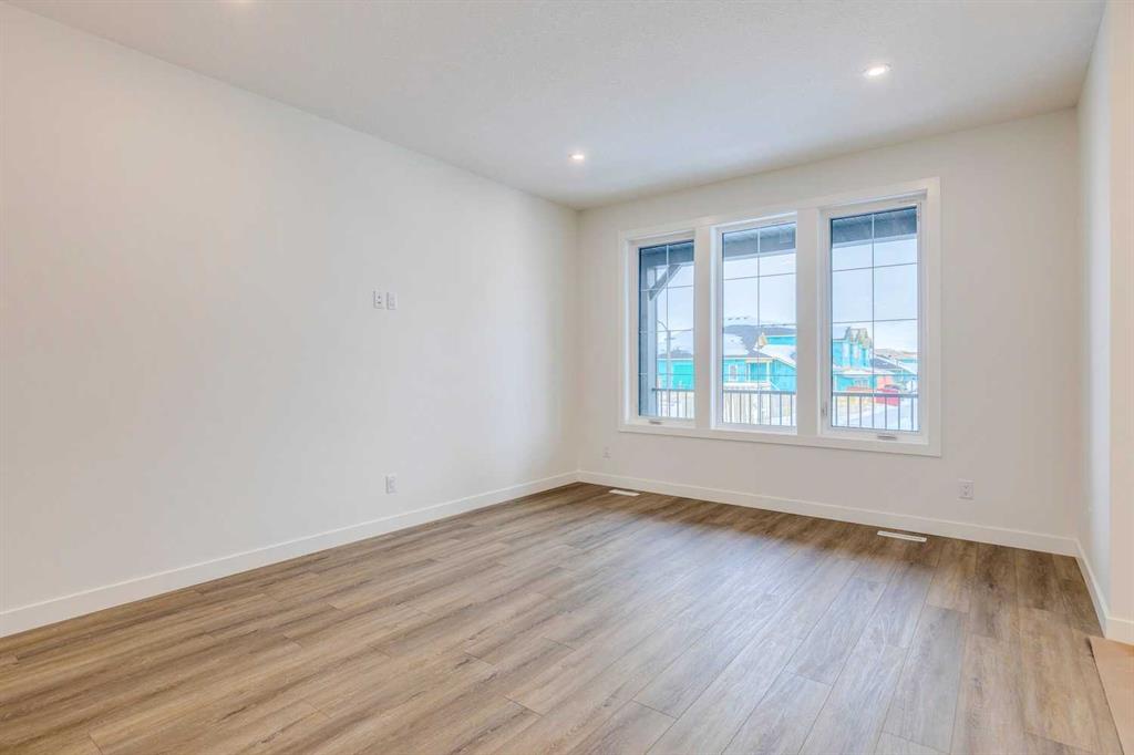Price Adjusted, Move in Before Christmas! - Contemporary design meets everyday ease in this large 1,694 ft² duplex by Broadview Homes in Harmony. The three-bedroom, two-and-a-half-bath design showcases a bright, open plan that connects the kitchen, dining, and living areas for easy everyday living and entertaining. Quality finishes run throughout, with an appliance package that includes a stainless-steel gas range, dishwasher, hood fan, and built-in microwave. Upstairs, the private primary bedroom features a walk-in closet and a well-appointed ensuite, joined by two additional bedrooms and a second full bath. The unfinished basement is ready for your personal touches and is roughed-in for a future bathroom. Step outside to a large rear deck that extends your living space for summer relaxation or hosting. Set within vibrant Harmony, with access to lakes, parks, golf, pathways, and world-class amenities, this home offers an exceptional lifestyle in one of Alberta’s most desirable communities. Photos are representative.