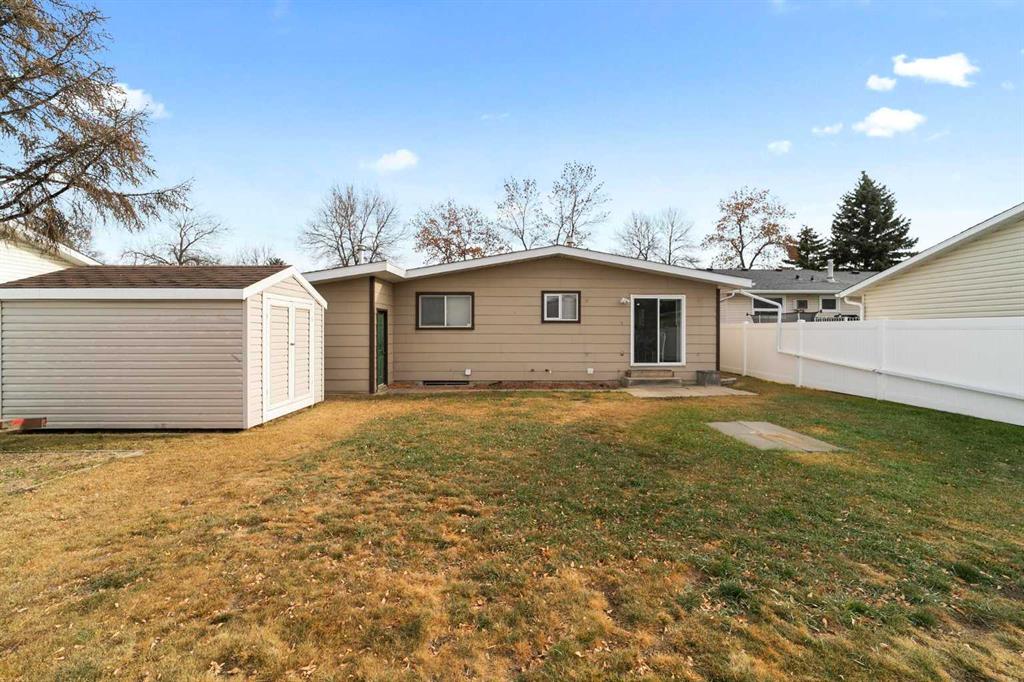 Come home in Grandview! This beautiful bungalow a block from the golf course offers an easy, comfortable, and convenient lifestyle in a coveted Camrose crescent. The main floor welcomes you with a recently inspected wood burning, stone fireplace in the spacious living room, and a bright, open kitchen and dining room that serves great space for groups to gather. With three bedrooms and two bathrooms including the primary ensuite, the layout of this level is accessible and functional for the whole family! Downstairs you will find a large rec room, abundant storage space, a fourth bedroom and laundry room. Along with the curb appeal, covered porch and landscaped front yard, you'll enjoy the outdoors with gated RV parking, a new vinyl fence, a drive thru carport leading to an insulated single garage, plus an 8' x 12' storage shed and back deck with gas hook up for your BBQ. Just a short walk away you'll find all the conveniences of West end amenities like shopping, restaurants, medical and dental services, walking trails, dog park and much more! Don't wait to book your showing at this move-in-ready property!!