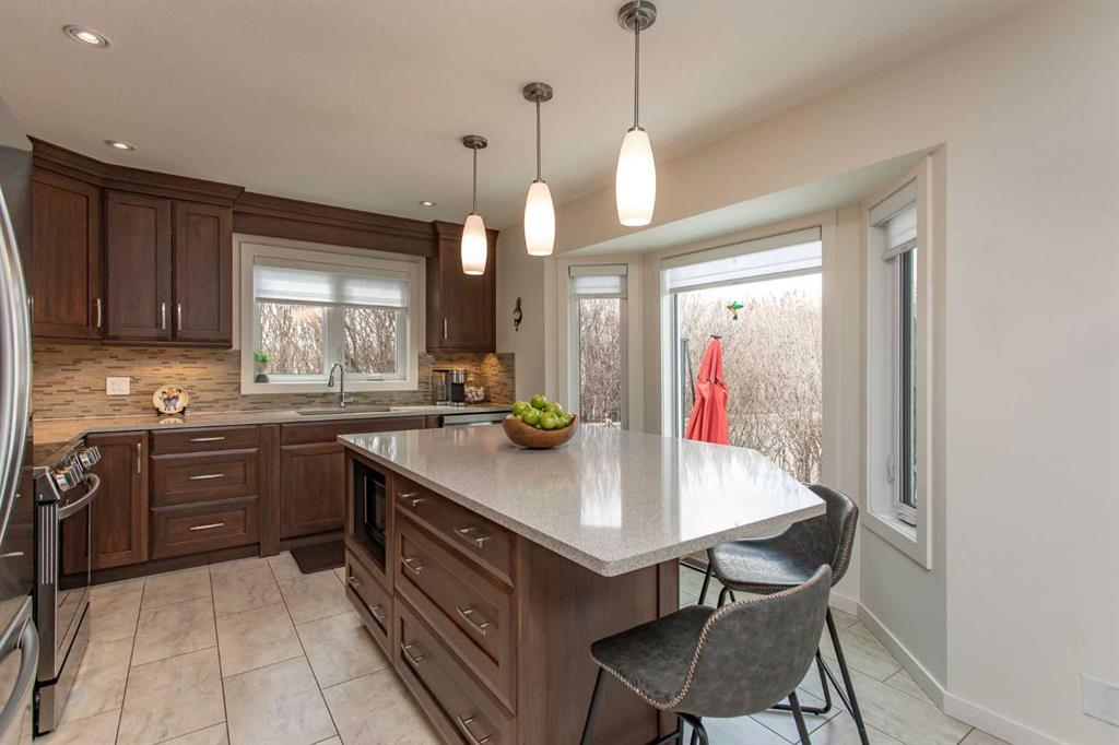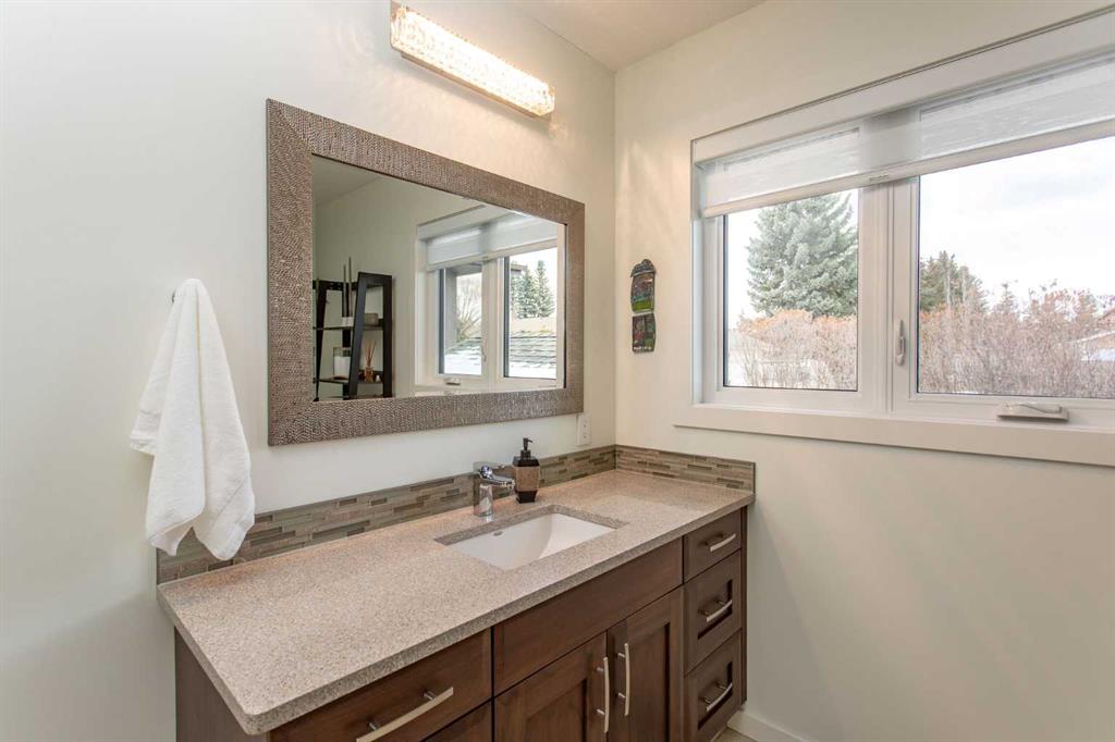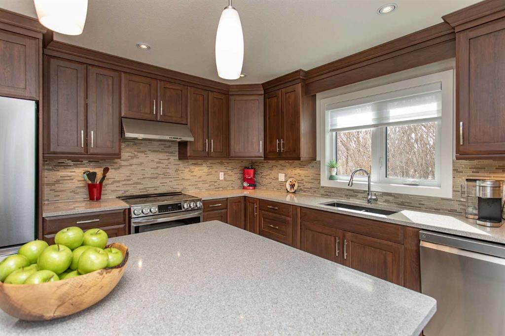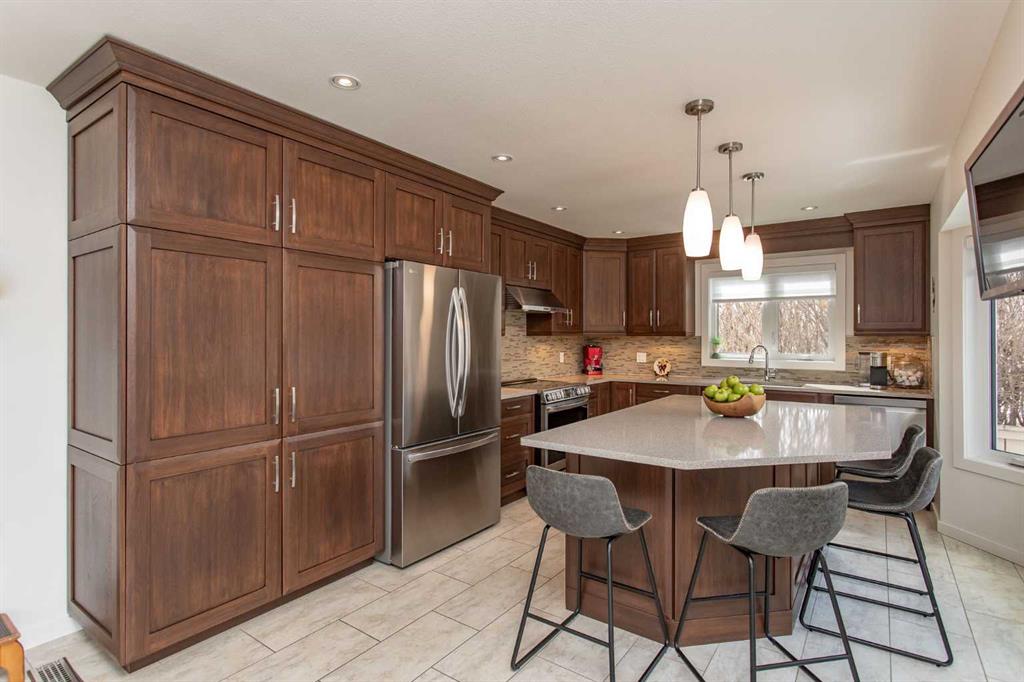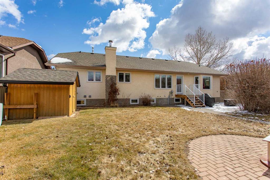This pristine, fully finished bungalow is a rare find and ready for its next family! Offering an attached garage plus a heated detached garage, this property combines functionality with exceptional pride of ownership and shows like new. Extensively upgraded over the past few years, highlights include triple pane windows, a beautifully renovated kitchen with granite countertops, large island, pull-out cabinetry, and newer stainless steel appliances (approx. 3 years old), cork flooring, refaced gas fireplace, updated railings, and new blinds throughout. The main level also features convenient laundry, a spacious living room, and an oversized kitchen and dining area—perfect for entertaining. The primary bedroom offers a walk-through closet and 3-piece ensuite, while a second bedroom and full bathroom complete the main floor. The fully developed basement features 3rd and 4th bedrooms, a large family room with a cozy wood-burning stove—perfect for relaxing evenings—along with a laundry area and a versatile den/playroom. The basement bathroom boasts a stunning tile and glass walk-in shower. Enjoy outdoor living with stone patios at both the front and back—ideal for morning coffee and soaking up the west-facing sun in the beautifully landscaped backyard. Additional features include back alley access, RV parking, a storage shed, and space for a garden. A rare opportunity offering exceptional value—this home is a must-see!