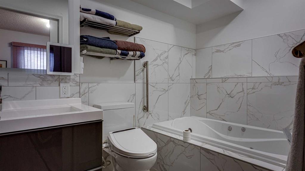 5019 60 Street Close is ideally located in one of Lacombe's most desirable neighborhoods. Curb appeal is high with the home's stucco and brick exterior. The private, pie-shaped backyard will check all the boxes for most homeowners. Parking and RV parking (with plenty of room for long trailers or a large motorhome) is easily accessible from the back lane. The large deck covered with composite deck material features privacy glass, built-in drink counters, and a natural gas line for the cooking grill. The paving stone patio area with fire pit provides additional space for rest, relaxation, and entertaining. Large trees offer some shade, but not too much, as the raised garden beds (included in sale) and greenhouse (also included) catch plenty of sun during the growing season. You will appreciate the extra storage space in the garden shed. Step inside through the front door to spacious entry and open living/dining area with vaulted ceilings. The modern kitchen features a large double sink, stainless steel appliances, gas top stove, striking hood fan, separate oven, glass tile backsplash, and luxurious stain-resistant countertops. A built-in workstation is smartly tucked into a light filled corner with pleasant outside views. Three bedrooms fill the upper level. The good-sized primary bedroom is connected to a stunning 3 piece bathroom. (All the bathrooms in this home have been significantly upgraded.) The tile work is impressive. The shower is barrier-free (no step is required). The other two bedrooms are perfect for little ones and/or guests. These rooms share a second, 3 piece bathroom on this floor. It too, has been renovated and features amazing tile work and a barrier-free shower. The spacious family room in the lower level has a wood burning fireplace faced with tile and brick. The fourth bedroom is located just off the family room. The 4 piece ensuite bathroom attached to the bedroom is impressive. Finished similarly to the upstairs bathrooms, this spa-like bathroom has a steam shower with sitting bench and a bonus jetted tub. The laundry room is situated on this level as well. The separate entrance to the side yard on this level is readily accessed from the front driveway or backyard parking pad. The 2nd lower level gives the homeowner further options. The largest space can function as a recreation area, theater room, craft area, or exercise room. There is storage galore on this level including a true cold room. The utility room is loaded with quality appliances: high efficiency furnace, hot water tank, water softener, automatic humidifier control, central vacuum, and heat recovery ventilator that provides energy efficient air exchange and improved air quality. All this, plus a high quality air conditioner. The attached heated garage (with drain) offers convenient access to the kitchen (for grocery days). 5019 60 Street Close is a terrific family home. Homes with special yards like this are hard to find in the City of Lacombe.
