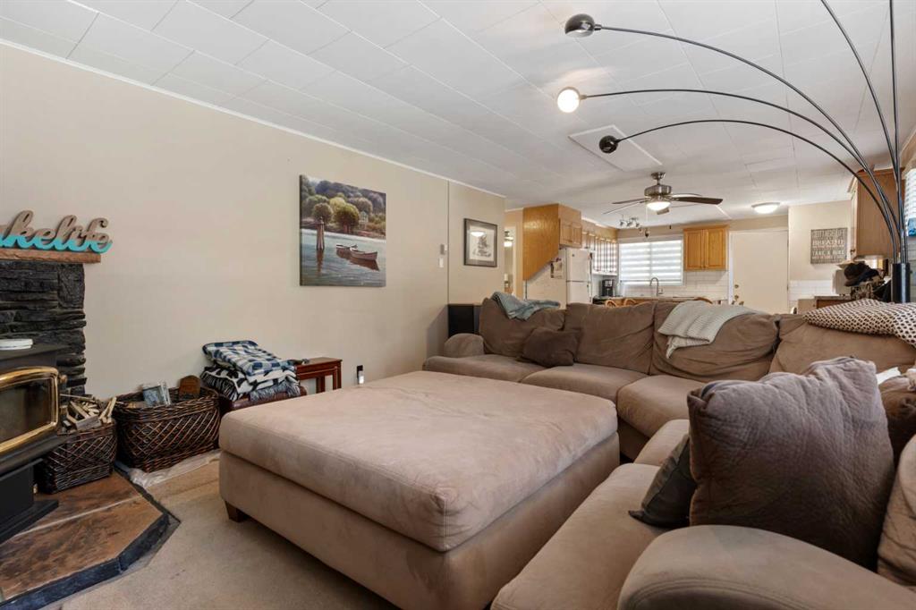 Discover your ultimate four-season retreat at the southern tip of Pigeon Lake in the summer village of Norris Beach. Nestled among towering spruce trees, this charming cabin offers privacy, comfort, and direct water access—all within a two-minute stroll to the shore. Interior Features; Two cozy bedrooms and a full four-piece bathroom. Open-concept living area with abundant natural light. Kitchen appointed with oak cabinets, subway tile backsplash, double sink, extra counter space, ceramic stove, fridge, and dishwasher. Cabin comes with newer vinyl siding, soffit, and fascia. Furnace approximately 5 years old. Big Bonus - the property is tied into municipal sewer for a way more convenient experience. Outdoor & Lot Highlights; Wrap-around deck ideal for lounging, morning coffee, or alfresco dining. Ample storage throughout to keep gear organized. Expansive front yard shaded by mature spruce for peaceful relaxation. Backyard designed for entertaining—fire pit area and room for lawn games. Bunkhouse with tin roof and air conditioning, perfect for guests or in the summer or winter. Property backs onto green space, providing a secluded feel and direct water access. Just two blocks from Black Bull Golf Course, Petro-Canada, and village amenities. RV parking with 220V plug right at the driveway. Easy walk to lakeside beaches, boat launches, and scenic trails. Large private beach area for the neighborhood residents to enjoy in the summer and store their boat docks in the winter. Ideal for year-round living, seasonal rentals, or a weekend getaway. Don’t miss the chance to own this very affordable lake retreat.