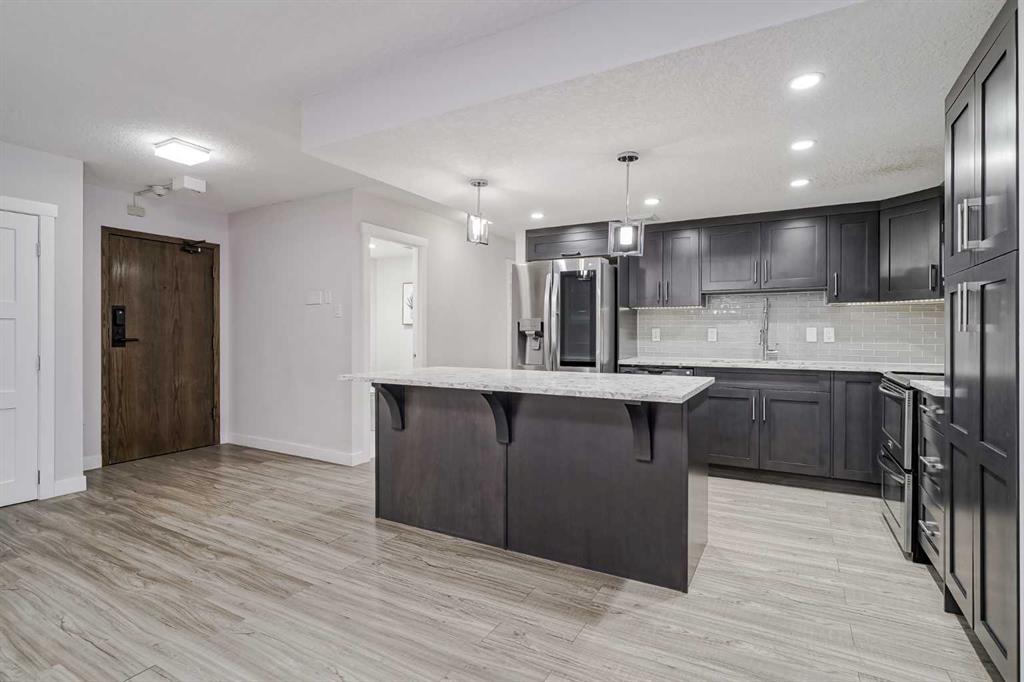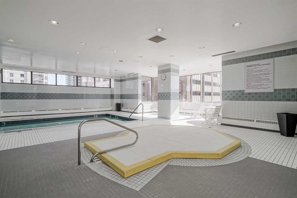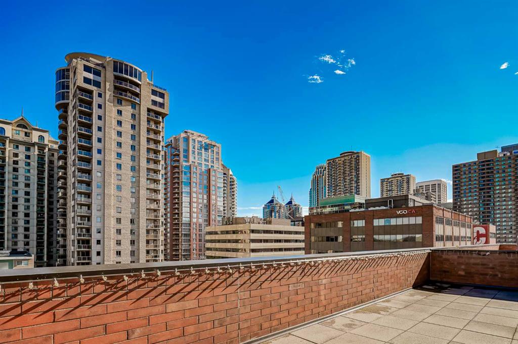 Experience urban living at its finest in the heart of downtown Calgary with this spacious, single-level apartment. Stunning 2-bedroom, 2-bathroom residence has been fully renovated, offering an expansive, open-concept layout that seamlessly blends comfort and style, making it an ideal retreat for young professionals or those seeking to downsize without compromising on space or luxury. From the moment you enter, you are greeted by the openess of the condo. Laminate flooring which extends throughout the main living areas, creating a modern yet cozy feel. Expansive windows flood the space with natural light and frame breathtaking views of Calgary's downtown skyline, creating a spectacular backdrop for quiet evenings and entertaining guests alike. The spacious living and dining areas flow effortlessly into a renovated kitchen with high-end stainless steel appliances, perfect for hosting dinners or casual gatherings. One of this home's most remarkable features is its amazing 735-square-foot private deck, a truly exceptional outdoor living space that offers a magnificent extension of the indoor living area. Each of the two generously sized bedrooms provides a private sanctuary for relaxation. The primary bedroom has brand-new carpet installed in August 2025 for added comfort. The primary suite features an ensuite bathroom for added convenience. Both bathrooms are elegantly designed with high-end finishes, offering a spa-like retreat. The luxury continues with the building’s world-class amenities, including an indoor pool, hot tub, and sauna for unwinding after a long day. Fitness enthusiasts will appreciate the squash/racquetball court and a well-equipped gym, while a games room provides leisurely entertainment. With 24-hour security and concierge services, your comfort and safety are always a top priority.