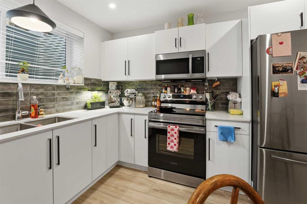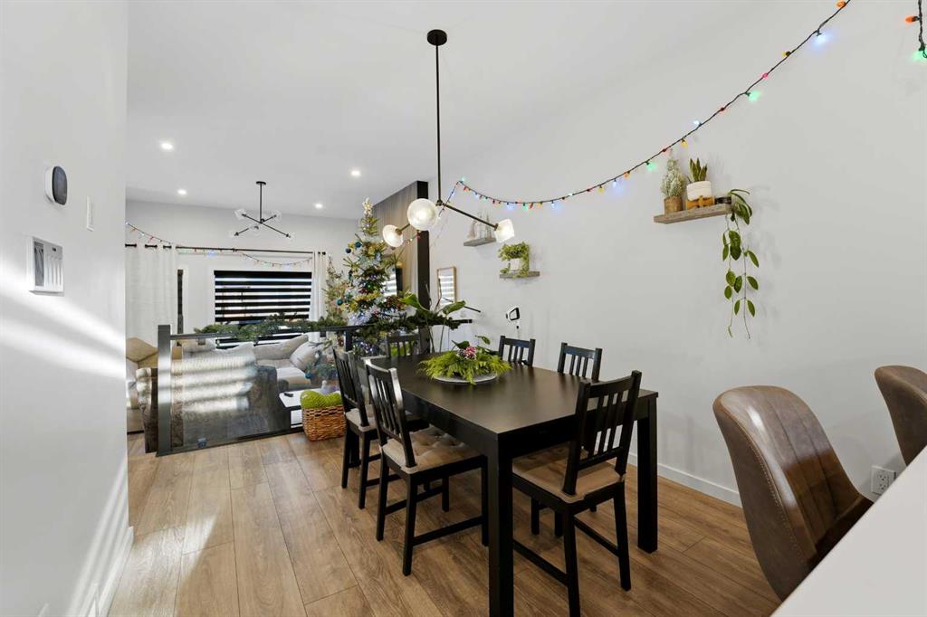 Welcome to this stunning newly constructed, two-story home on a desirable corner lot. The main floor boasts an impressive, open-concept layout centered around a designer kitchen that seamlessly flows into a spacious living room highlighted by a cozy fireplace. Upstairs, convenience meets comfort with a dedicated laundry room and three generous bedrooms, including a luxurious primary suite complete with a private en-suite. The property is uniquely enhanced by a legally suited basement, offering an expansive and bright separate living space featuring a large bedroom, a four piece bathroom, and an open kitchen, dining and living area. Completing this exceptional package is a roomy 19x20 double garage for parking and storage. This home is a must see for those seeking modern design, functional living.