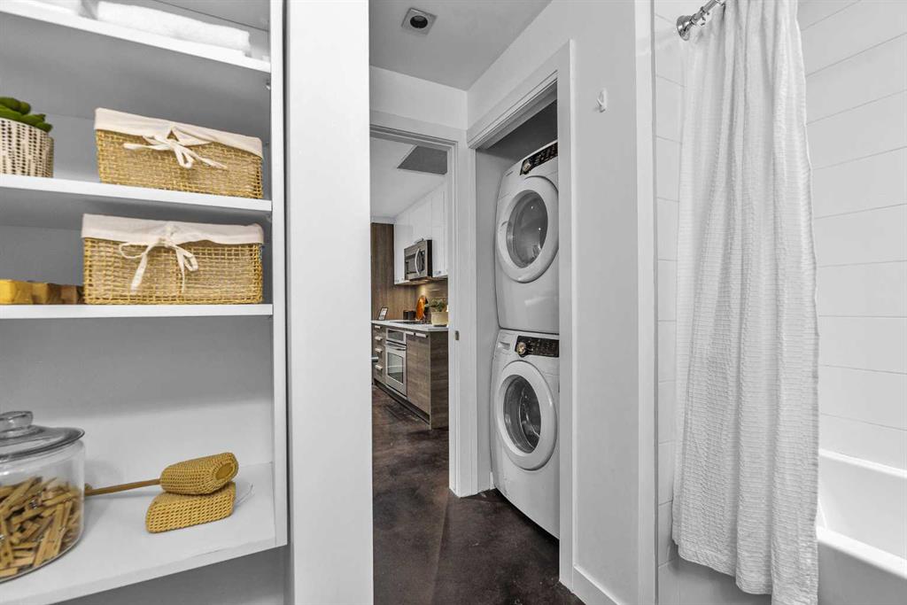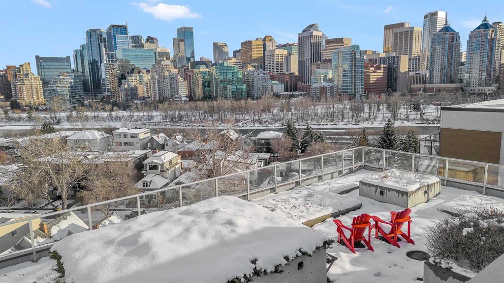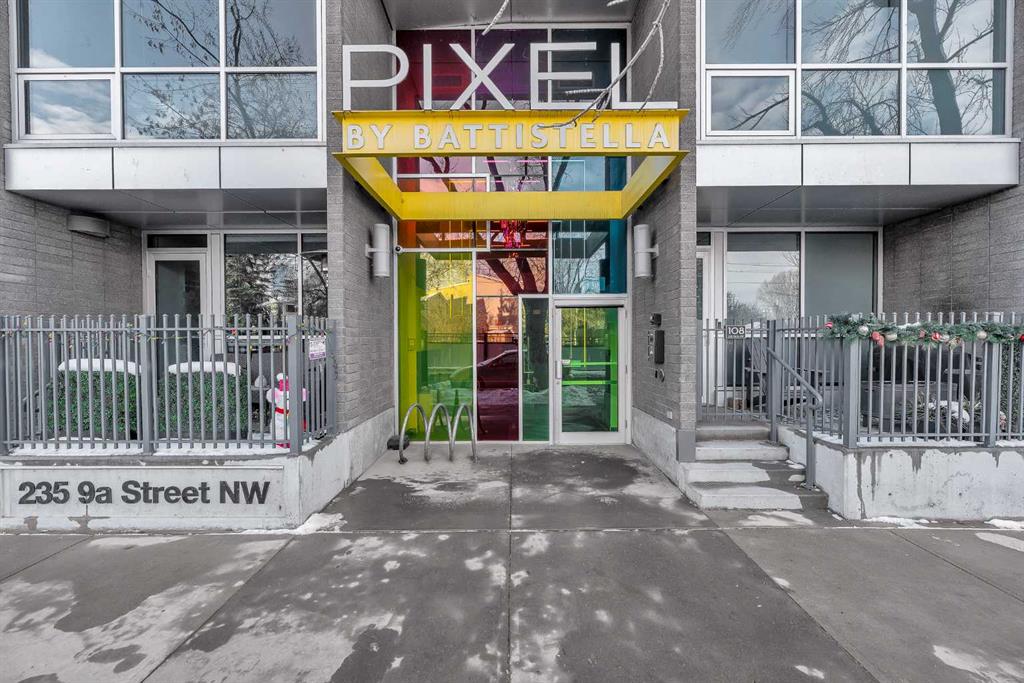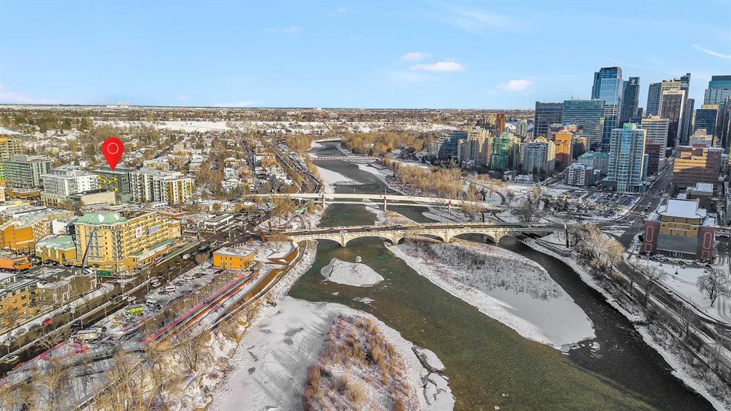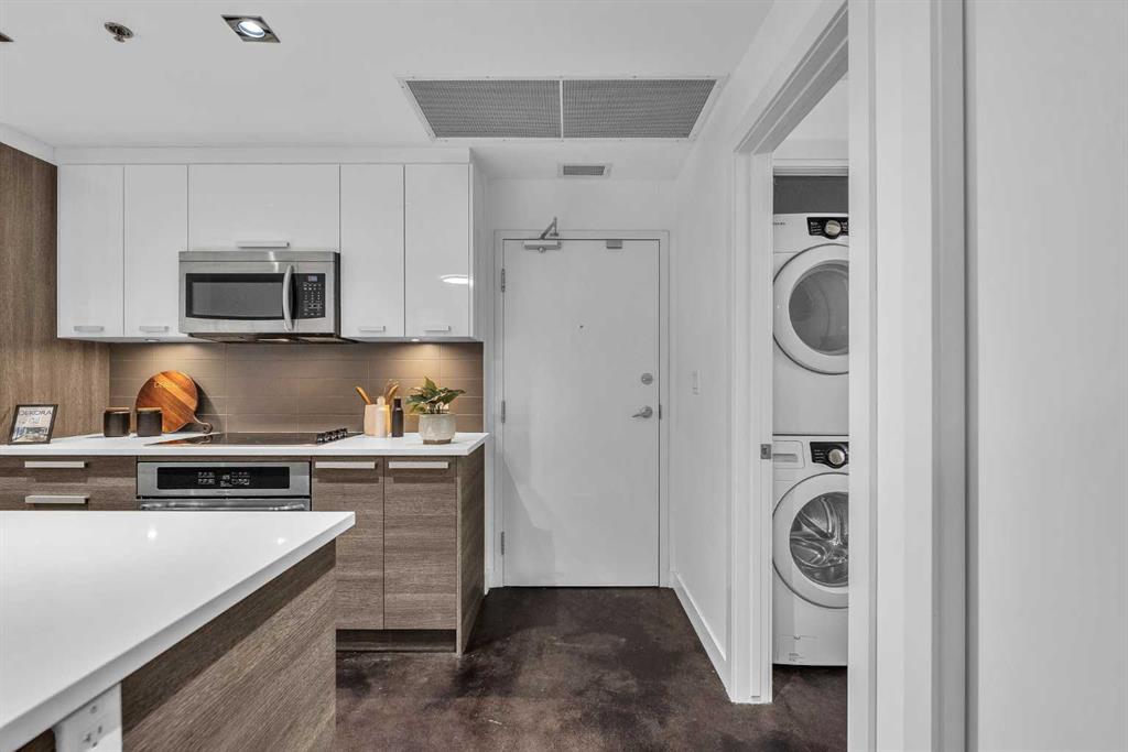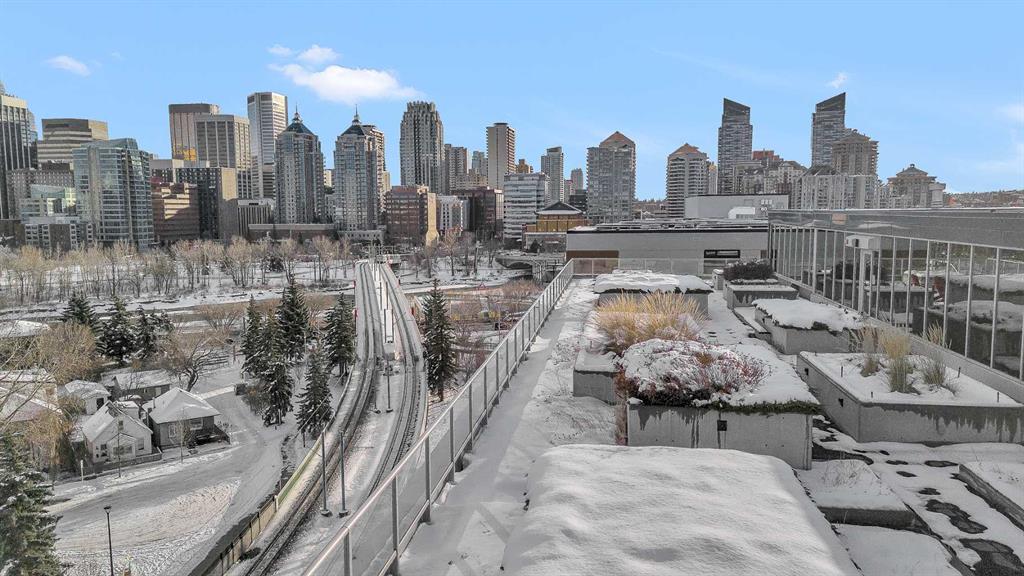 MODERN 1 BEDROOM CONDO IN THE HEART OF KENSINGTON | AIR CONDITIONING | TITLED PARKING + STORAGE | ROOFTOP PATIO WITH EPIC DOWNTOWN VIEWS**** Welcome to PIXEL by Battistella, a exceptionally well-maintained concrete building. Perfectly positioned in the vibrant community of Kensington—just steps to the Bow River pathway, Sunnyside C-Train Station, grocery stores, cafés, restaurants, boutiques, and the Plaza movie theatre. Walk or bike to downtown with ease or hop on the train and you’re at SAIT in just one stop.**** This smartly designed 621 sq ft, 1 bedroom home offers a bright, contemporary layout with 9 ft ceilings, polished concrete floors, and a stylish open-concept living space. The modern kitchen features quartz countertops, stainless steel appliances, undercabinet lighting, pull-out garbage bins, and plenty of prep and storage space. There’s a dedicated area for dining, a spacious living room with custom blinds and curtains and a view of downtown. The bedroom includes built-in closet organizers, and the well-appointed bathroom offers a quartz vanity with drawers, built-in linen shelving, and a relaxing soaker tub. The full-size stacked washer & dryer is neatly tucked away, and an entry closet completes the space. Plus a covered balcony with gas line is perfect for BBQing and provides views of downtown and Kensington.***** The unit includes a titled underground parking stall and titled storage unit great for sports equipment and winter tires. The PIXEL building provides underground visitor parking, bike rooms, and a truly spectacular rooftop patio with a fireplace, seating areas, and a jaw-dropping panorama of the city — a perfect spot to unwind on a summer evening or to watch the Stampede fireworks. And yes PIXEL is pet friendly with no size restrictions. Urban convenience, modern design, and one of Calgary’s most walkable locations — this is the lifestyle you’ve been waiting for. Contact me to today to schedule a viewing and find out why this could be a smart move for you!