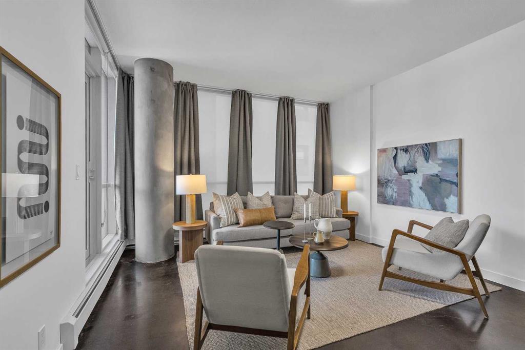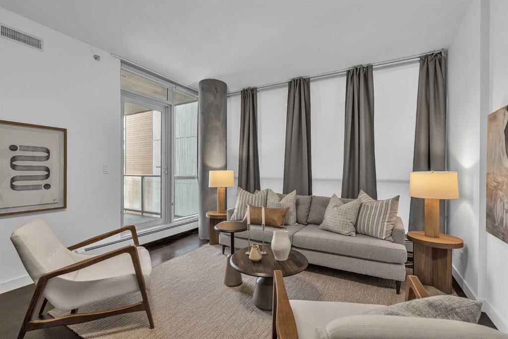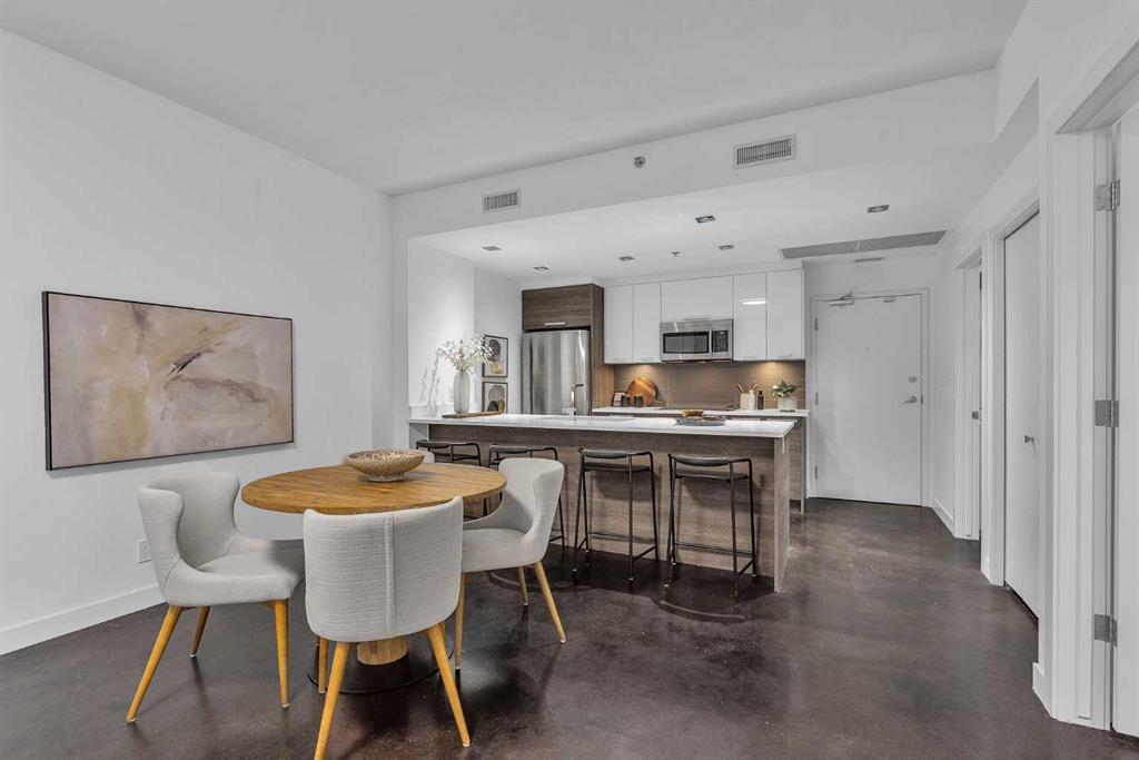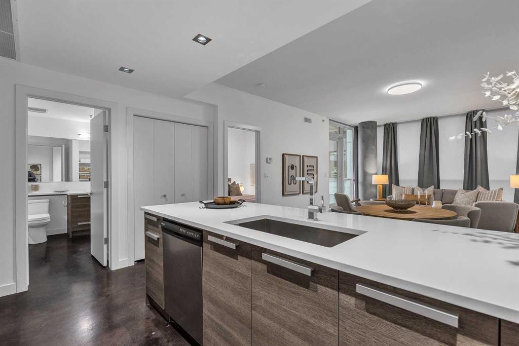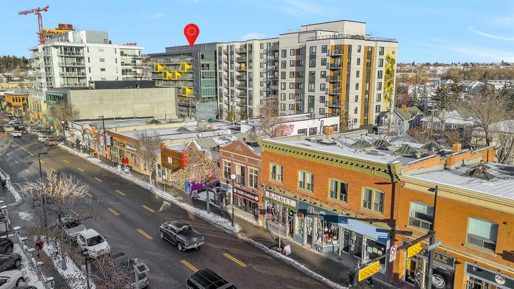MODERN 1 BEDROOM CONDO IN THE HEART OF KENSINGTON | AIR CONDITIONING | TITLED PARKING + STORAGE | ROOFTOP PATIO WITH EPIC DOWNTOWN VIEWS**** Welcome to PIXEL by Battistella, a exceptionally well-maintained concrete building. Perfectly positioned in the vibrant community of Kensington—just steps to the Bow River pathway, Sunnyside C-Train Station, grocery stores, cafés, restaurants, boutiques, and the Plaza movie theatre. Walk or bike to downtown with ease or hop on the train and you’re at SAIT in just one stop.**** This smartly designed 621 sq ft, 1 bedroom home offers a bright, contemporary layout with 9 ft ceilings, polished concrete floors, and a stylish open-concept living space. The modern kitchen features quartz countertops, stainless steel appliances, undercabinet lighting, pull-out garbage bins, and plenty of prep and storage space. There’s a dedicated area for dining, a spacious living room with custom blinds and curtains and a view of downtown. The bedroom includes built-in closet organizers, and the well-appointed bathroom offers a quartz vanity with drawers, built-in linen shelving, and a relaxing soaker tub. The full-size stacked washer & dryer is neatly tucked away, and an entry closet completes the space. Plus a covered balcony with gas line is perfect for BBQing and provides views of downtown and Kensington.***** The unit includes a titled underground parking stall and titled storage unit great for sports equipment and winter tires. The PIXEL building provides underground visitor parking, bike rooms, and a truly spectacular rooftop patio with a fireplace, seating areas, and a jaw-dropping panorama of the city — a perfect spot to unwind on a summer evening or to watch the Stampede fireworks. And yes PIXEL is pet friendly with no size restrictions. Urban convenience, modern design, and one of Calgary’s most walkable locations — this is the lifestyle you’ve been waiting for. Contact me to today to schedule a viewing and find out why this could be a smart move for you!