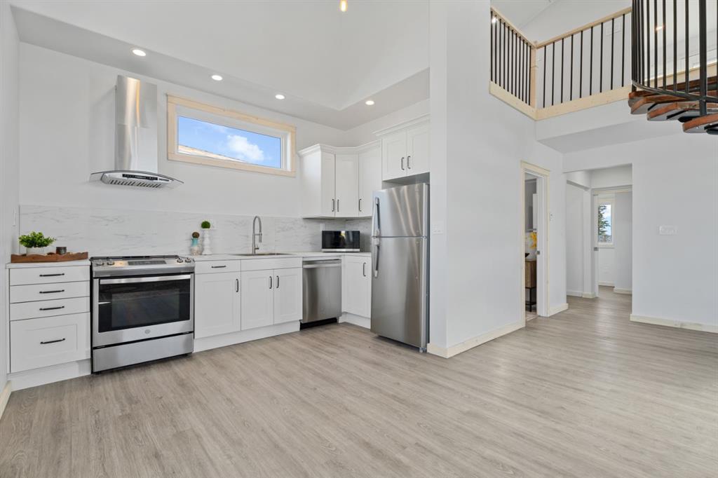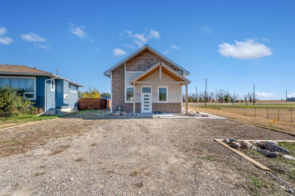 Welcome to cozy cottage style living in the Village of Champion. This brand new build has a world of possibilities with 2 Bedrooms and 2 Office/Den Spaces. The inviting layout allows you to cozy up in the living room with the floor to ceiling surround electric fireplace with custom wood mantle and vinyl floors. The Inviting white kitchen with white marble effect laminate countertops, features modern lighting and a stainless steel appliance package that will have you enjoying cooking in your home! Other main floor features include a bedroom, 3 piece bathroom and the first of two office/den spaces. Up the custom wood spiral staircase you will find the upper level which includes a primary bedroom, trendy 4 piece ensuite and another office/den space with a reading nook space. Off of the primary bedroom you have a stunning balcony that breathes county views outside town! The yard features underground sprinklers, custom rock and an inviting design backing onto a walking path for easy accessibility around town. Come see this one and make your plans in a brand new home for under $400,000!