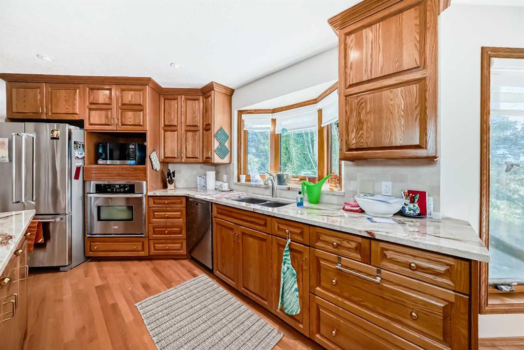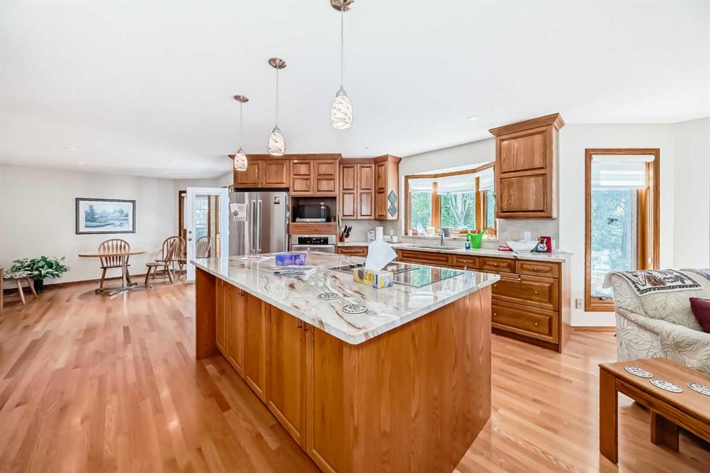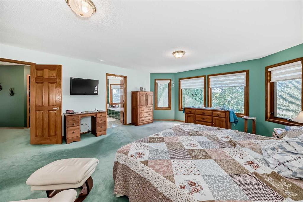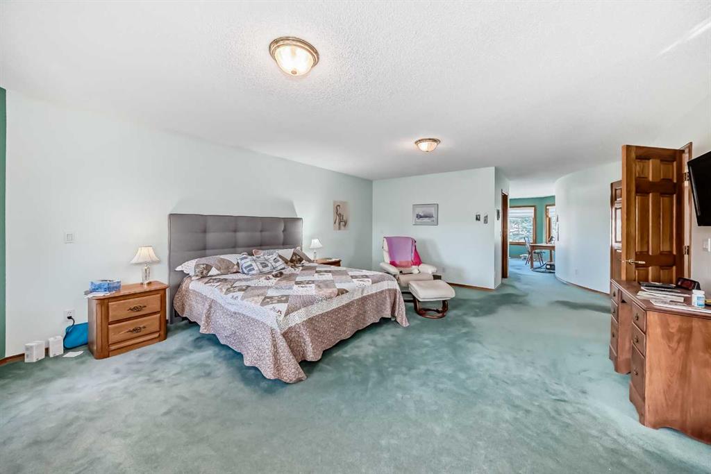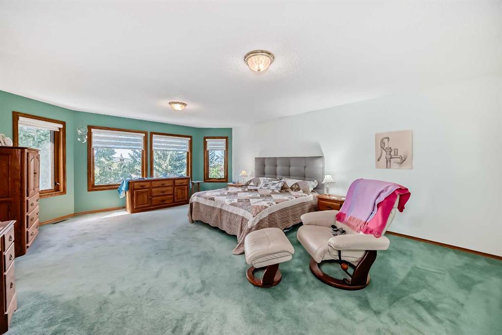 Welcome to a wonderfully located 2 storey on a quiet cul de sac. This large family home has been superbly maintained over the past 30 years. The furnace has been updated, along with the boiler, and new triple pane windows were installed in 2023. The main floor has an open floor plan. The kitchen was updated 10+ years ago and boasts granite counter tops, high end SS appliances, and a large island. A spacious living room with a wood burning fireplace is just off the kitchen. The expansive deck looks west! There is a triple car garage (26x26ft), laundry room and 3 piece bath also on the main floor. The upper level includes a huge primary bedroom with a walk in closet, additional room with options and a 5 piece ensuite, two additional bedrooms and a 4 piece bathroom with dual sinks. The lower level is a walkout basement with a huge rec room, a sizable bedroom and a 3 piece bath. The entire floor is heated with an updated boiler that has regularly been serviced. Both the backyard and lot are huge for the community. Don't miss out on this rare opportunity!