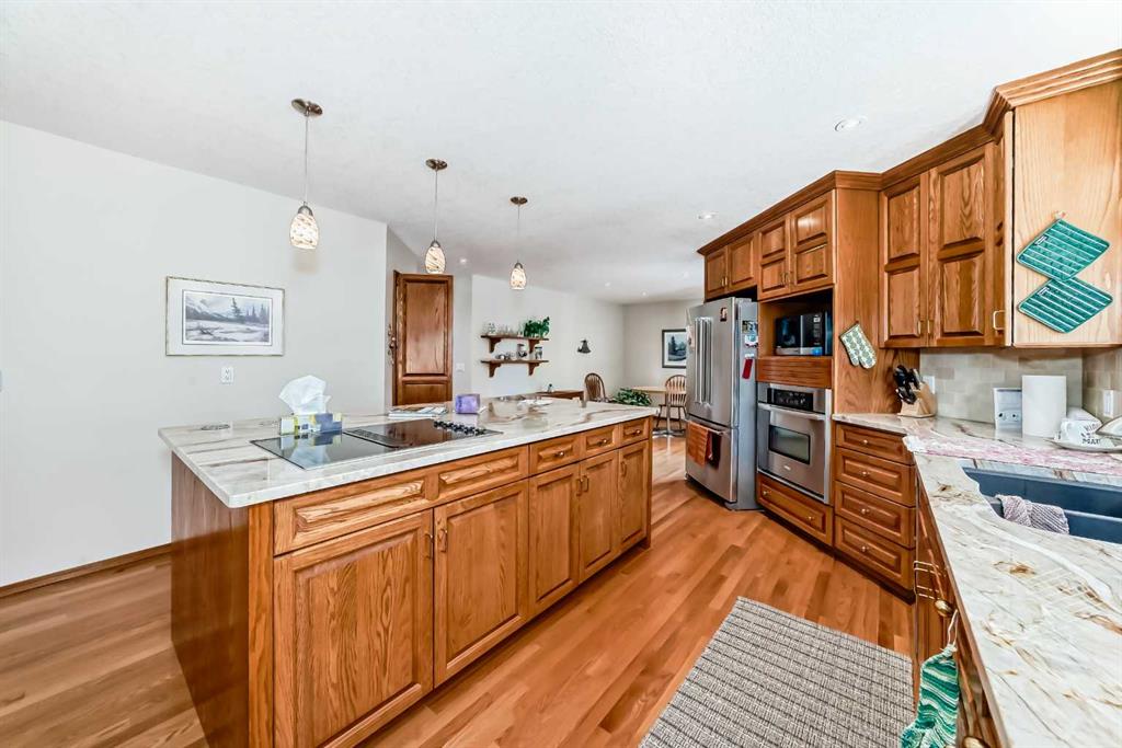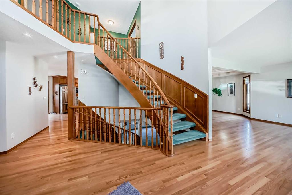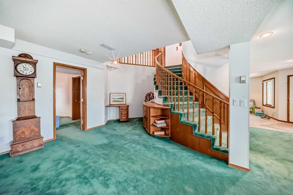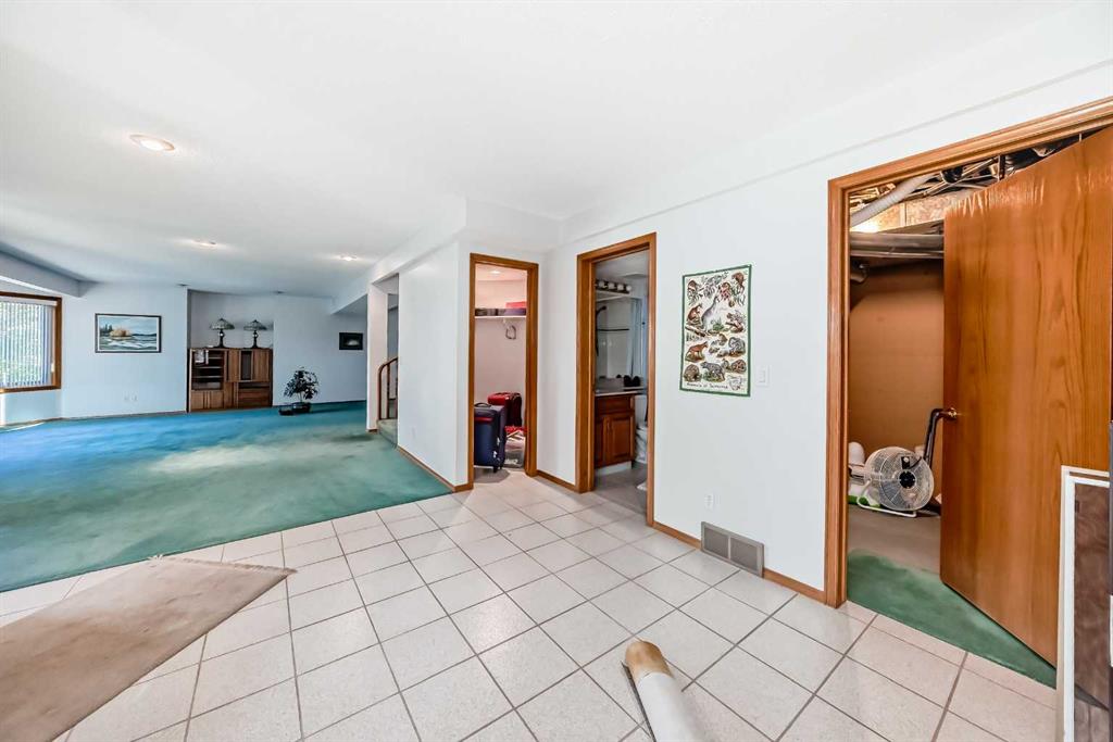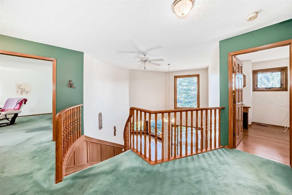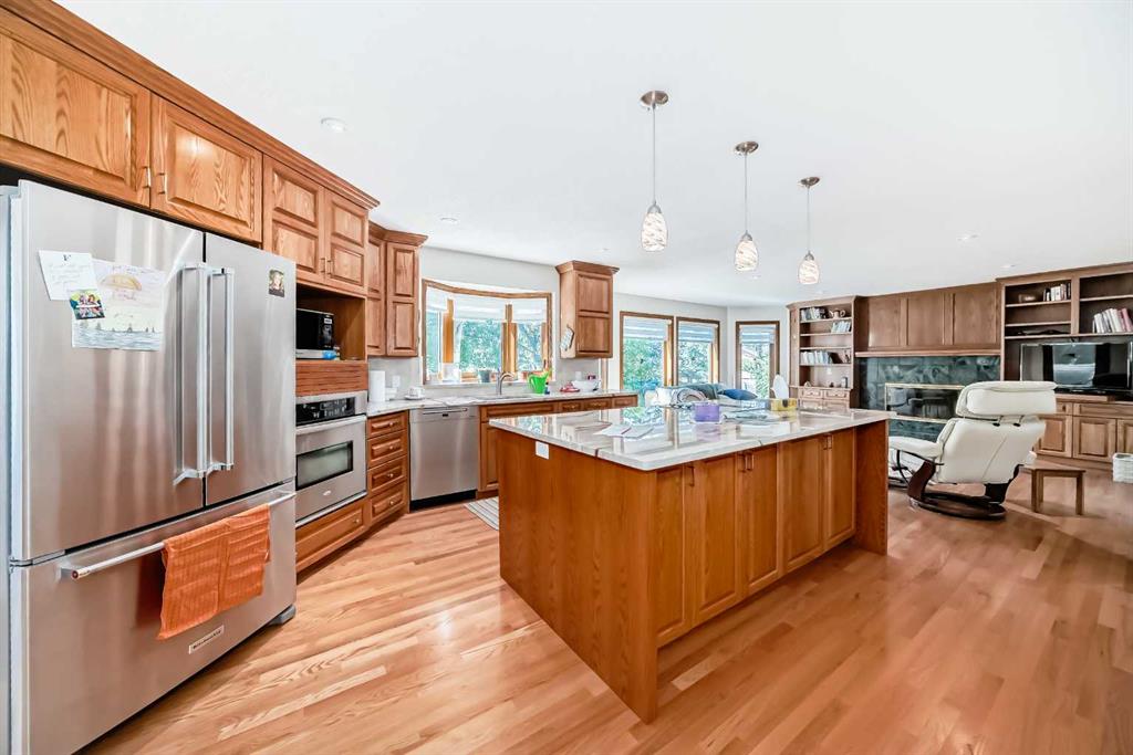 Welcome to a wonderfully located 2 storey on a quiet cul de sac. This large family home has been superbly maintained over the past 30 years. The furnace has been updated, along with the boiler, and new triple pane windows were installed in 2023. The main floor has an open floor plan. The kitchen was updated 10+ years ago and boasts granite counter tops, high end SS appliances, and a large island. A spacious living room with a wood burning fireplace is just off the kitchen. The expansive deck looks west! There is a triple car garage (26x26ft), laundry room and 3 piece bath also on the main floor. The upper level includes a huge primary bedroom with a walk in closet, additional room with options and a 5 piece ensuite, two additional bedrooms and a 4 piece bathroom with dual sinks. The lower level is a walkout basement with a huge rec room, a sizable bedroom and a 3 piece bath. The entire floor is heated with an updated boiler that has regularly been serviced. Both the backyard and lot are huge for the community. Don't miss out on this rare opportunity!