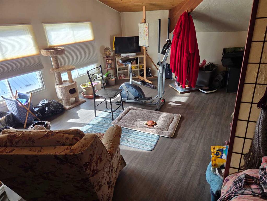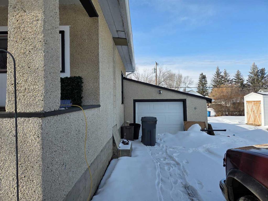 Opportunity awaits in this cozy home with loads of potential. Featuring 2 bedrooms on the main floor and a unique loft-style bedroom. The basement is roughed in and offers great potential for future development with access to the garage. Enjoy your morning coffee on the front porch, perfect for watching the sunrise. The large backyard includes RV hookup and parking, with space to relax and enjoy summer evenings around the gas BBQ. Single attached garage adds everyday convenience.
