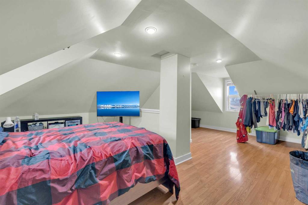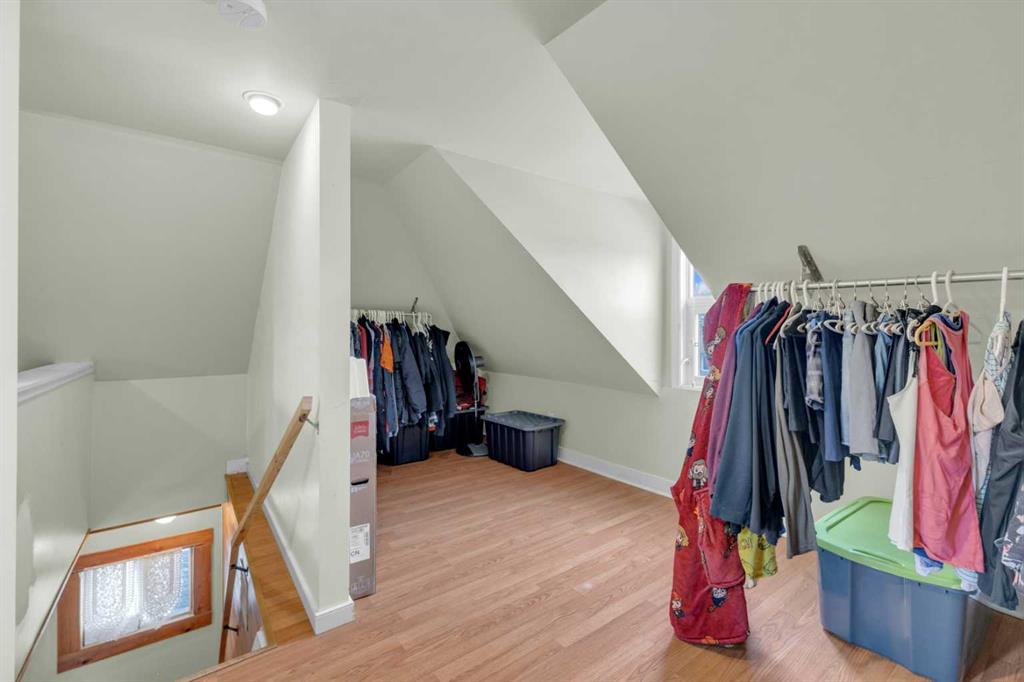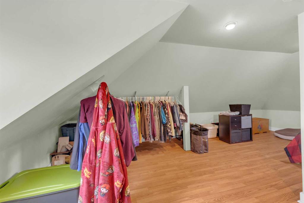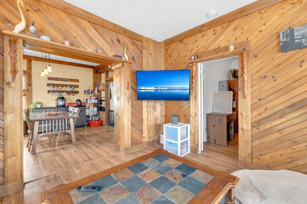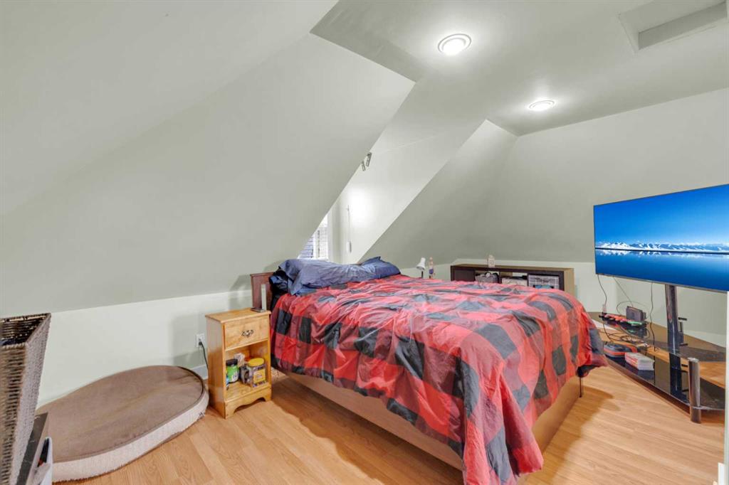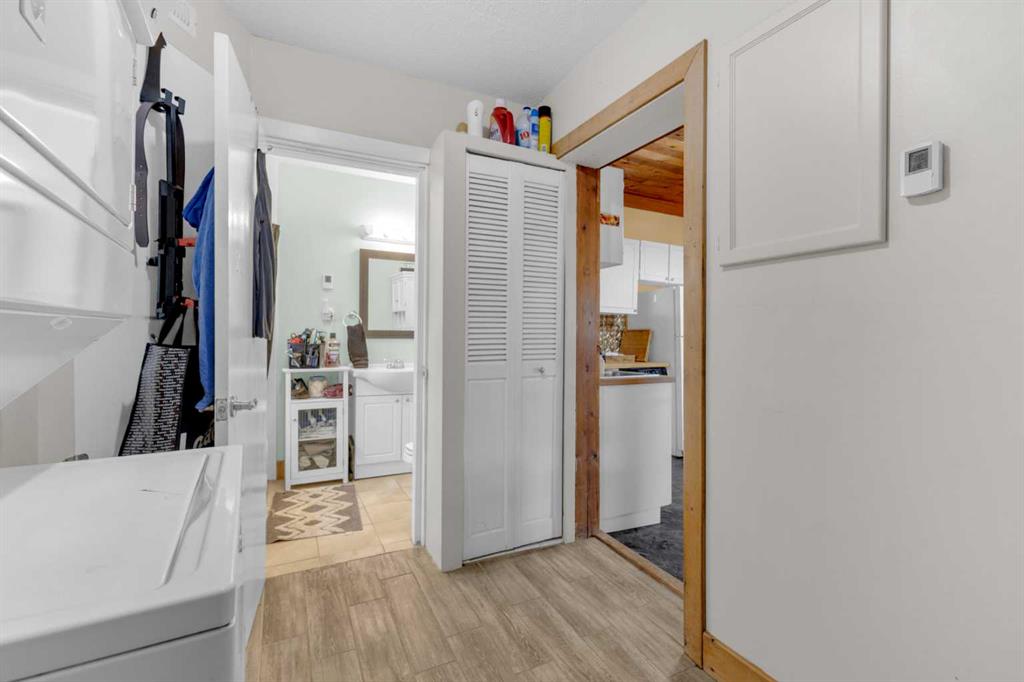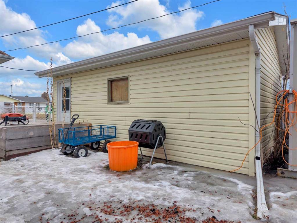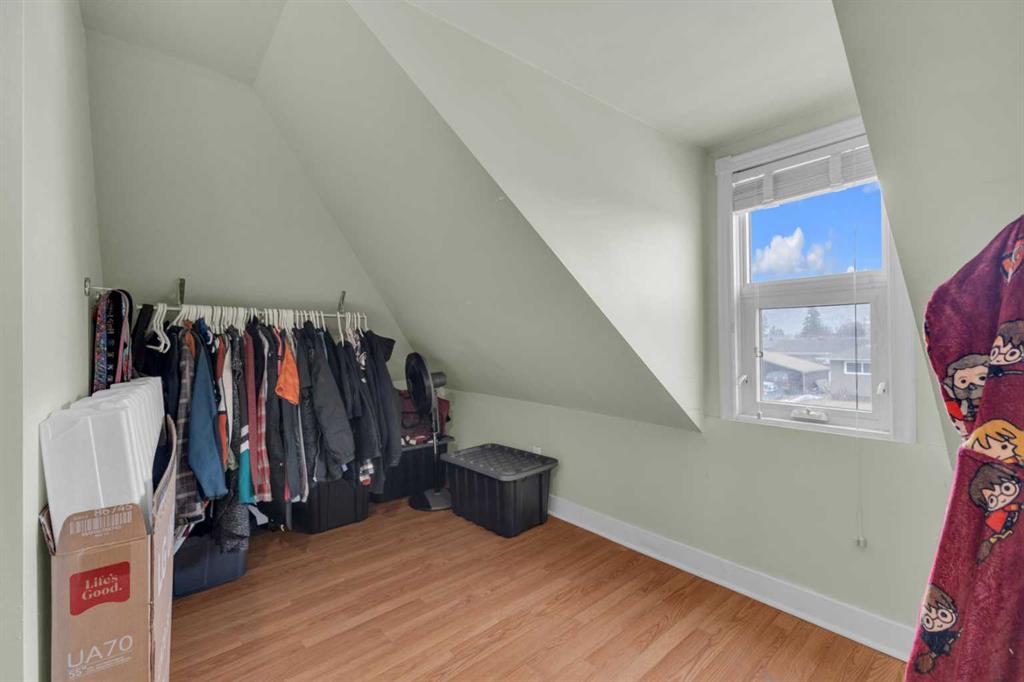 Charm, character, and over a century of Lacombe history — this 1920 one-and-a-half storey is one of a kind. Sitting on a mature double lot in the heart of Downtown Lacombe, it offers the kind of setting that is simply not replicated in newer neighbourhoods: a covered front porch framed by established trees, a fenced yard with flowering and apple-producing trees, and a neighbourhood you can walk from. Inside, the home features beamed ceilings, a practical main floor layout with a good-sized kitchen, dining room, and living room, main floor laundry, and the primary bedroom all on the main level. The upper loft offers a generous second bedroom. A full bathroom completes the main floor. Updates over the years include new roof and eavestroughs on both the house and garage, some new windows, a refreshed kitchen with new cupboards, countertop, and backsplash, an updated electrical box, and in-floor heat and tile in the back entry and bathroom. All appliances are included. Outside, the 50 x 120 lot provides plenty of room to breathe. A detached single garage (14 x 22), a fenced backyard, extra parking, and a deck round out the property. Parks, schools, a playground, and the full amenities of downtown are all close by. A perfect starter home, a smart revenue property, or a place for anyone who appreciates the character and craftsmanship of a true Lacombe original.