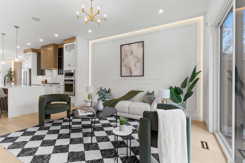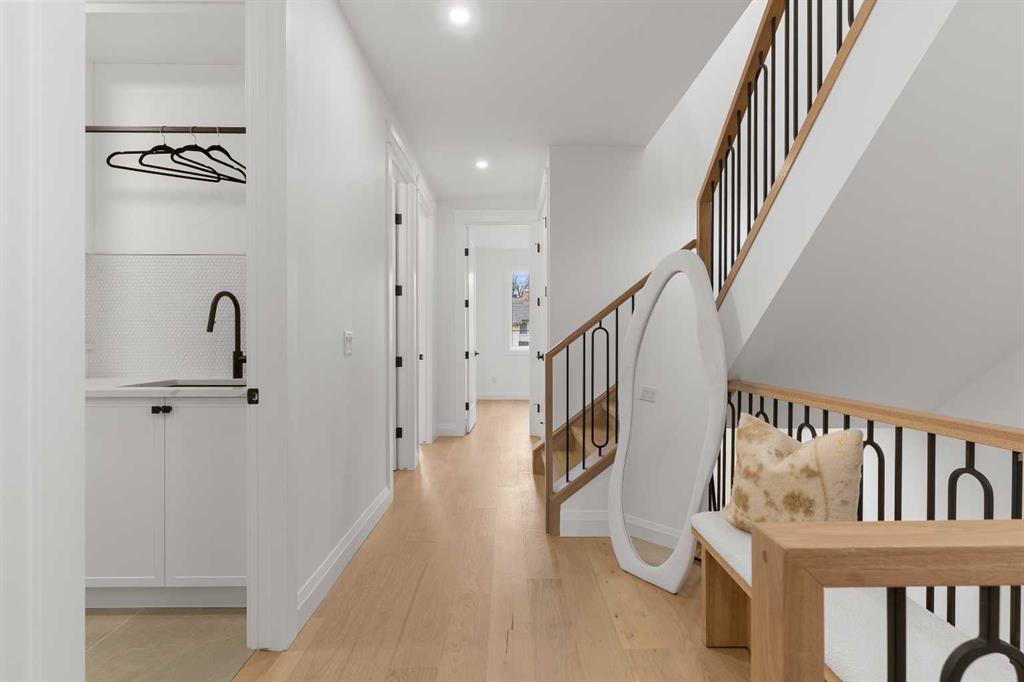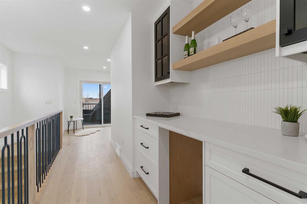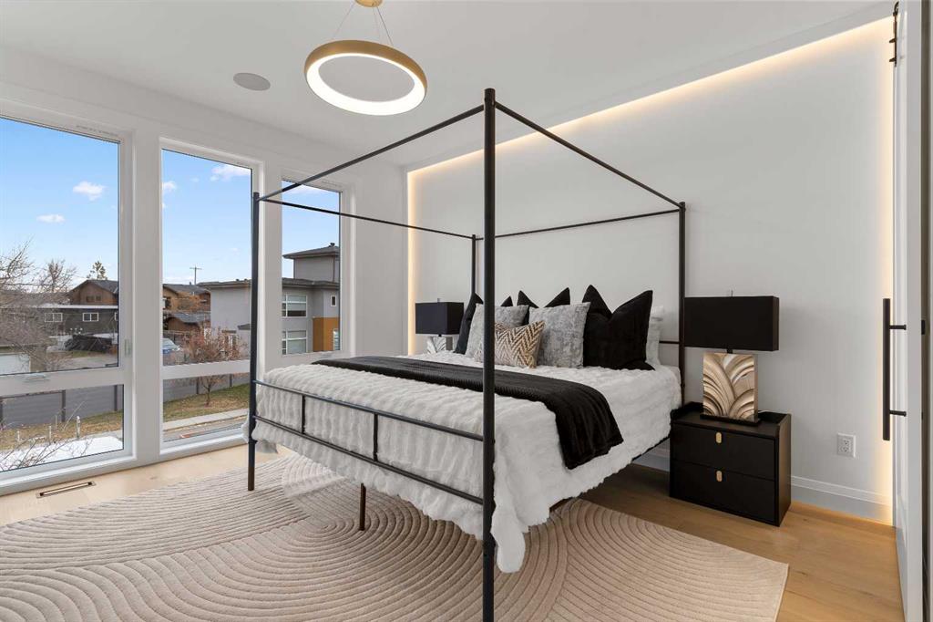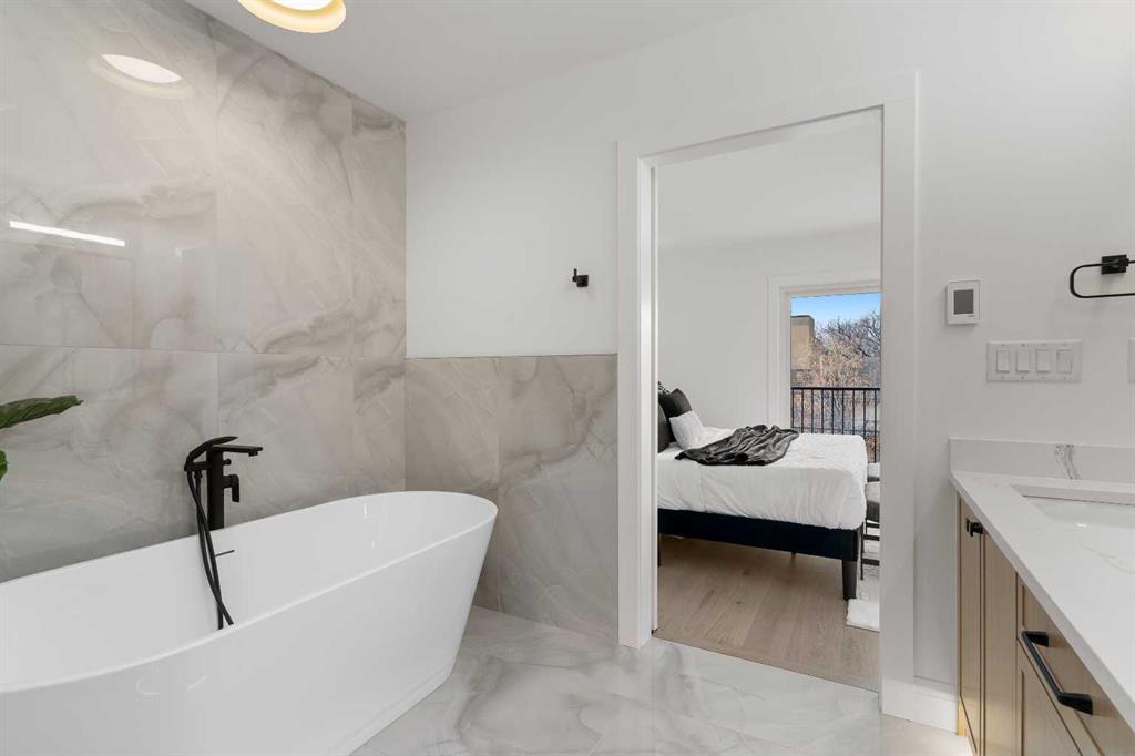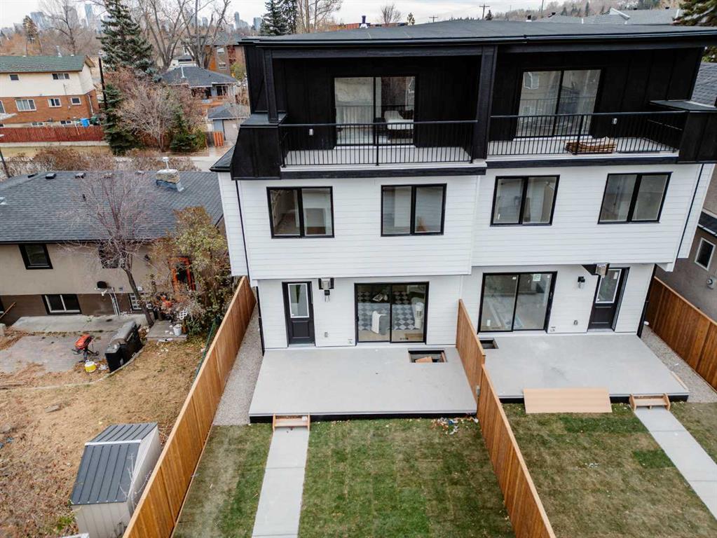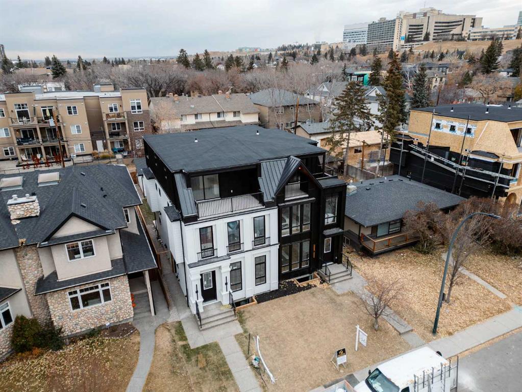 Construction Now Completed!! ~ Situated just steps from the river in Parkdale, one of Calgary’s most desirable central communities, this striking modern residence offers 2700 sq ft of masterfully designed living space across the three upper levels, with another 891 sq ft below grade. The main floor welcomes you (under flat painted ceilings on all levels) with a spacious dining area off the entry; flowing seamlessly into a designer kitchen, featuring a showstopping 10 foot quartz island and sleek modern finishes. At the rear of the main, a bright and airy living room with a contemporary gas fireplace opens with sliders to the west facing backyard expanding onto a vinyl deck with glass railings. A mudroom, tucked away powder room, and main floor office with a glass door, complete this gorgeous space. The second floor offers a true primary retreat with a massive ensuite featuring heated floors, and walk-in closet, alongside two additional bedrooms ~ each with their own walk-in closet ~ a full bathroom, and a well ~ appointed laundry area. The upper loft level is a standout feature; with a second primary bedroom, full ensuite (again with heated floors), a steam shower, dual walk-in closets, a versatile bonus area, and both front and rear balconies, offering stunning outdoor escapes. A fully legal basement suite (pending final approval by the city) adds even more flexibility, complete with two bedrooms, shared living area, and a full kitchen~ ideal for guests, rental income, or multigenerational living. With no shortage of bedrooms or closet space, this home is as functional as it is beautiful. Additional highlights include; a roughed-in security system, roughed-in air conditioning, a roughed-in vacuum system, exposed aggregate steps and sidewalks, full landscaping, and an unbeatable location. Surrounded by nature, amenities, parks, pathways, cafes, the Bow River, and everything inner-city Calgary has to offer, this is not one to miss!!