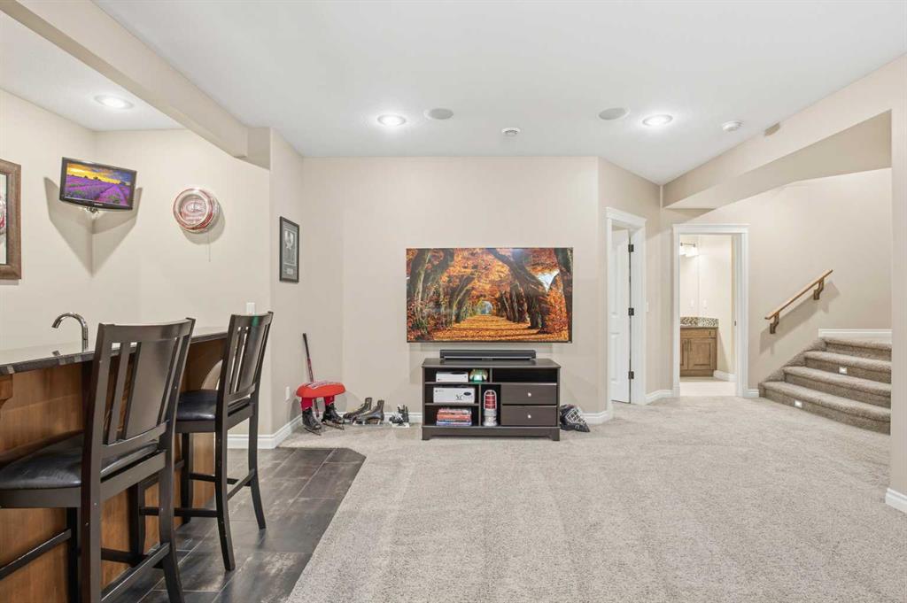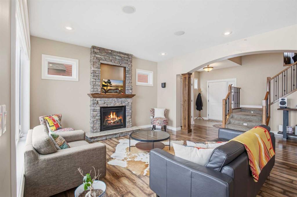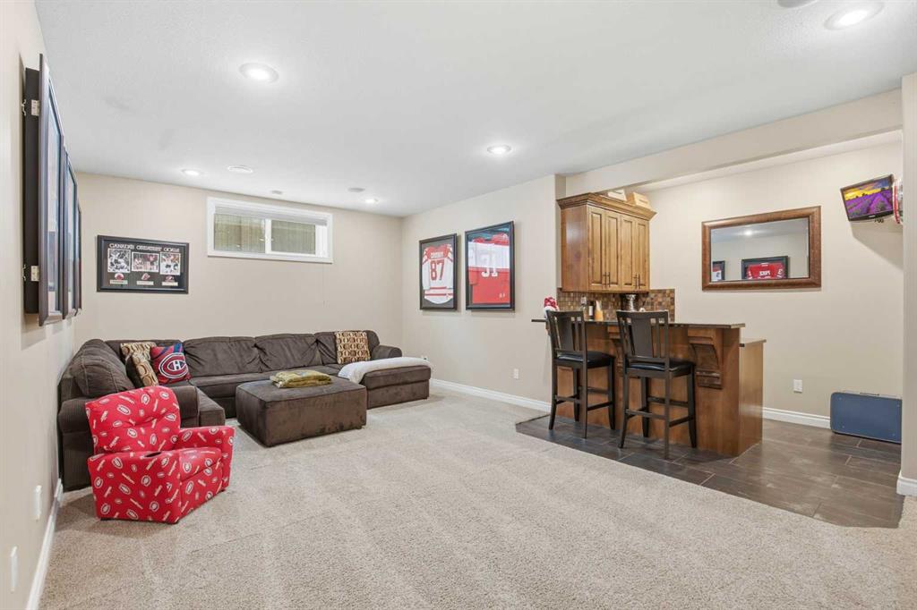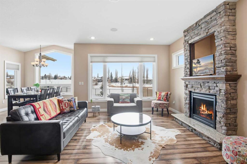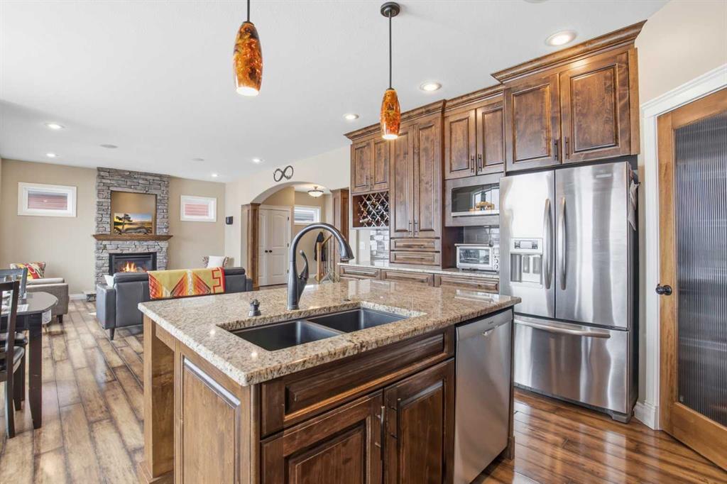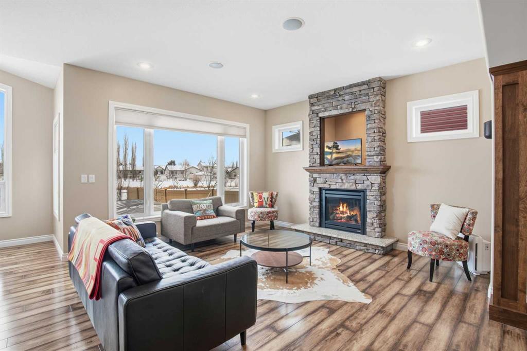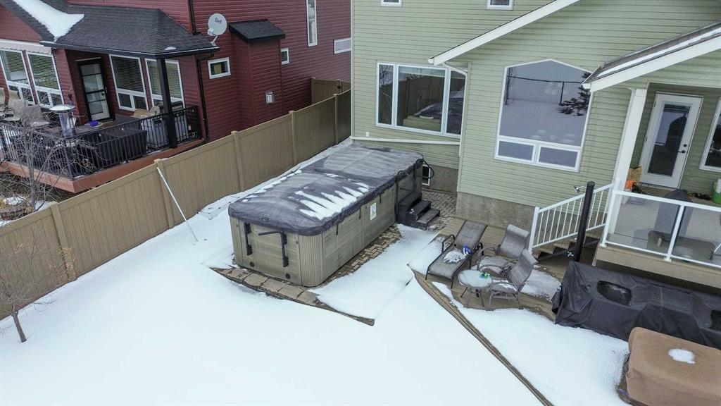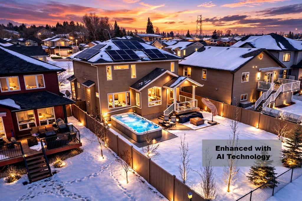 Welcome to this exceptional fully finished home built by Bomaier Development, offering quality craftsmanship, thoughtful upgrades, and an incredible location backing onto a park. This beautifully maintained property combines luxury features with functional design, creating a home that is perfect for both everyday living and entertaining. Step inside to discover a bright and inviting interior featuring granite countertops throughout, soft-close cabinetry, under-mounted sinks, under-cabinet lighting, and a spacious kitchen island with power and a convenient central vacuum sweep plate. The kitchen is equipped with high-end appliances including a gas/electric hybrid range, making it a dream for cooking and entertaining. Pot lights on dimmers, LED lighting throughout, and built-in ceiling speakers wired to the utility room add both ambiance and modern convenience. The home offers two cozy gas fireplaces and a fully developed layout, providing plenty of comfortable living space. The luxurious primary suite includes a walk-in closet and a spa-inspired ensuite with dual sinks, while thoughtful construction details such as double insulated interior walls and floors in the primary bedroom ensure added comfort and sound reduction. The basement is fully finished and designed for entertaining, featuring operational in-floor heat and a stylish wet bar complete with a dishwasher, mini fridge, & a mounted bar TV. Additional comfort features include a high-efficiency furnace with humidifier, on-demand hot water system, water softener, and central vacuum system. Step outside to enjoy the beautifully landscaped yard backing directly onto a park, complete with vinyl fencing, underground sprinkler system, and a stunning two-tier composite partially covered deck and a gas line for your BBQ. This space also offers an outdoor shower and huge heated swim spa. Car enthusiasts and hobbyists will appreciate the radiant heated garage, while upgraded eco-friendly tinted windows throughout the home enhance efficiency and comfort. With premium finishes, thoughtful upgrades mentioned, this home also offer solar panels to really help with utility prices, and an unbeatable park-backing location, this meticulously maintained property offers a rare opportunity to own a truly outstanding home.