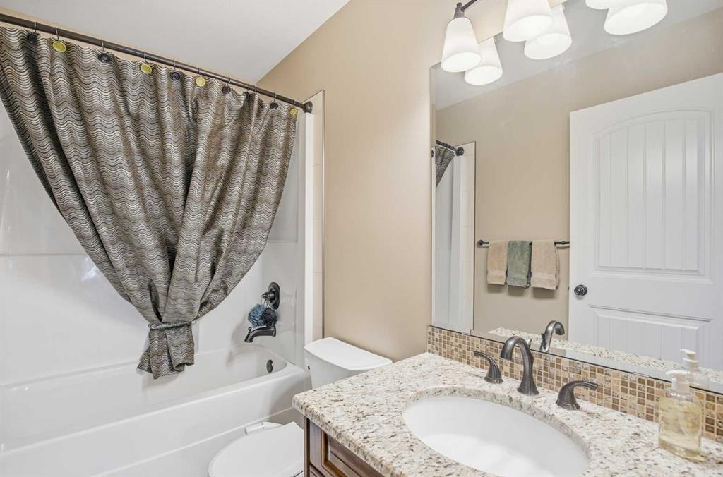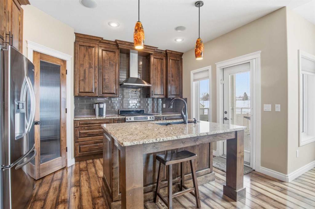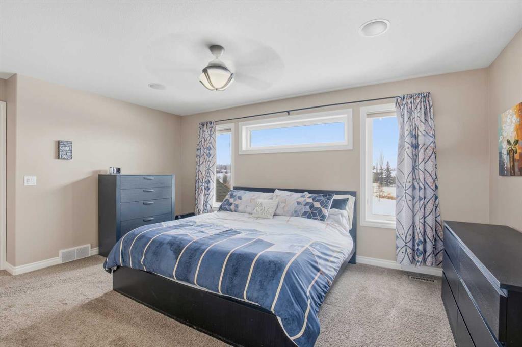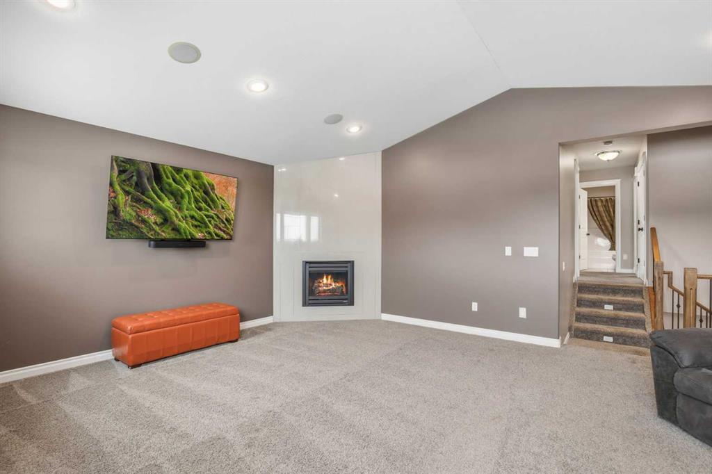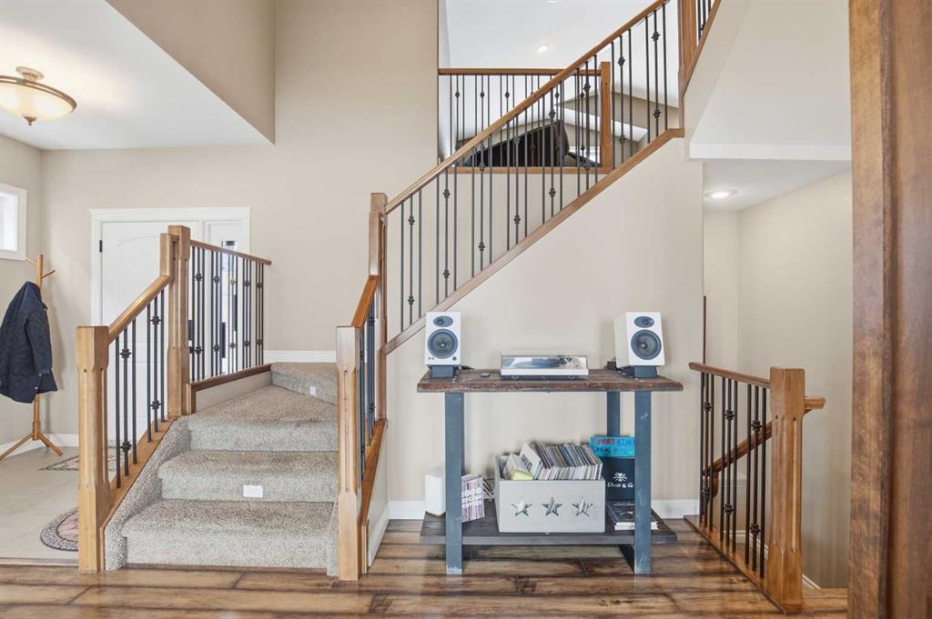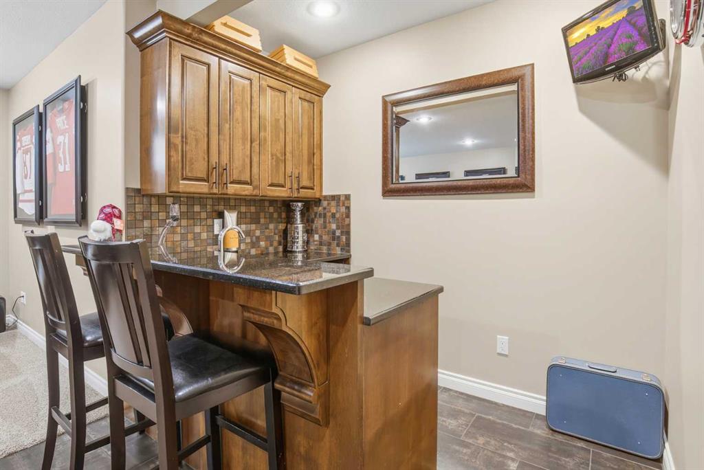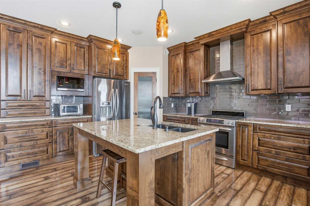 Welcome to this exceptional fully finished home built by Bomaier Development, offering quality craftsmanship, thoughtful upgrades, and an incredible location backing onto a park. This beautifully maintained property combines luxury features with functional design, creating a home that is perfect for both everyday living and entertaining. Step inside to discover a bright and inviting interior featuring granite countertops throughout, soft-close cabinetry, under-mounted sinks, under-cabinet lighting, and a spacious kitchen island with power and a convenient central vacuum sweep plate. The kitchen is equipped with high-end appliances including a gas/electric hybrid range, making it a dream for cooking and entertaining. Pot lights on dimmers, LED lighting throughout, and built-in ceiling speakers wired to the utility room add both ambiance and modern convenience. The home offers two cozy gas fireplaces and a fully developed layout, providing plenty of comfortable living space. The luxurious primary suite includes a walk-in closet and a spa-inspired ensuite with dual sinks, while thoughtful construction details such as double insulated interior walls and floors in the primary bedroom ensure added comfort and sound reduction. The basement is fully finished and designed for entertaining, featuring operational in-floor heat and a stylish wet bar complete with a dishwasher, mini fridge, & a mounted bar TV. Additional comfort features include a high-efficiency furnace with humidifier, on-demand hot water system, water softener, and central vacuum system. Step outside to enjoy the beautifully landscaped yard backing directly onto a park, complete with vinyl fencing, underground sprinkler system, and a stunning two-tier composite partially covered deck and a gas line for your BBQ. This space also offers an outdoor shower and huge heated swim spa. Car enthusiasts and hobbyists will appreciate the radiant heated garage, while upgraded eco-friendly tinted windows throughout the home enhance efficiency and comfort. With premium finishes, thoughtful upgrades mentioned, this home also offer solar panels to really help with utility prices, and an unbeatable park-backing location, this meticulously maintained property offers a rare opportunity to own a truly outstanding home.