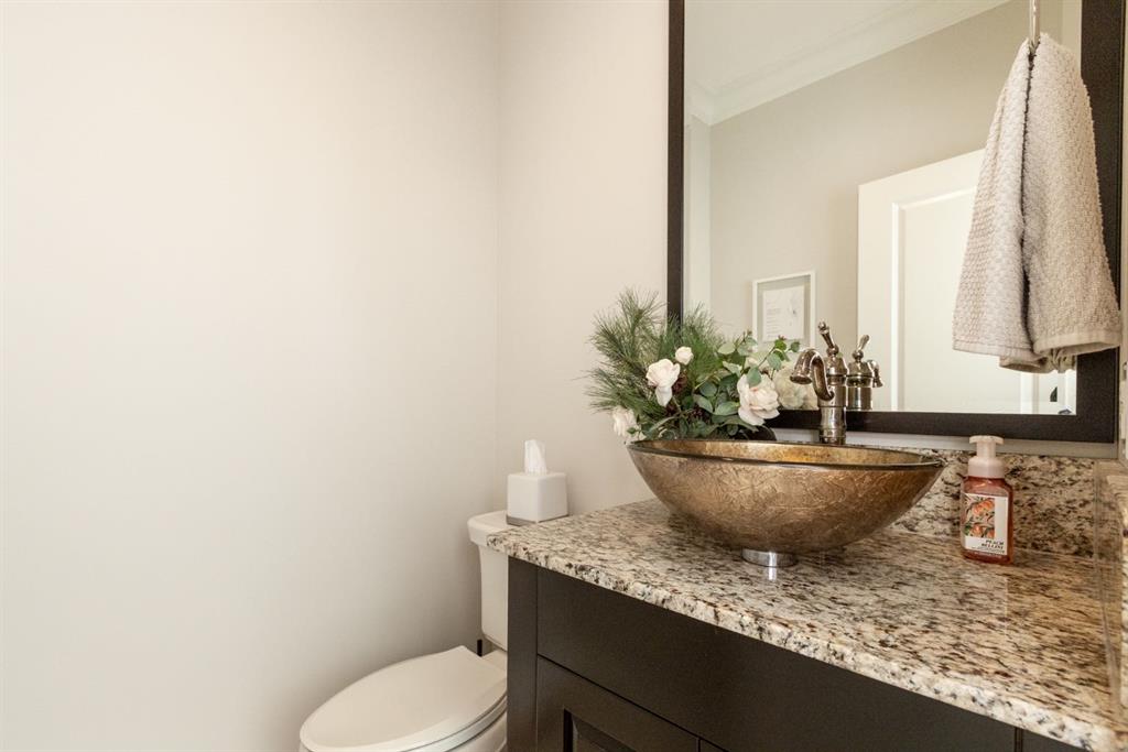 This Home Isn’t Just a House — It’s a Lifestyle. Attention to detail is evident the moment you walk through the stained glass front door. From top to bottom, this Bomaier Custom-Built Home radiates quality, warmth, and timeless elegance. Designed with connection and comfort in mind, this 5-bedroom, 5-bathroom home is where family gathers, friends linger, and memories are made. Step inside to soaring 18-foot ceilings and a breathtaking floor-to-ceiling stone fireplace with a granite hearth and an exotic African Bubinga hardwood mantle — a stunning center-piece that immediately sets the tone. The open-concept main level flows effortlessly into a traditional dining room framed with classic wainscoting walls, creating an inviting space for both elegant dinners and relaxed family meals. The kitchen is every chef’s dream, designed with entertaining and everyday living in mind. It features a double-oven six-burner Heartland stainless steel gas stove, a Sub-Zero side-by-side stainless steel fridge, granite countertops, a walk-in pantry, and a spacious breakfast bar — all surrounded by exceptional craftsmanship and finishes. The primary suite, conveniently located on the main floor, is a luxurious retreat overlooking the backyard and neighbourhood pond. It features a generous walk-in closet and a spa-inspired 4-piece ensuite complete with a large walk-in shower, double vanities, and in-floor heating for year-round comfort. Downstairs, the home continues to impress with a stunning Black Walnut bar and billiard room — the ultimate space for entertaining or unwinding. The lower level also includes a Bosch dishwasher, a second fridge, and plenty of room for a home gym, movie area, or guest accommodations. Every inch of this property showcases thoughtful updates and premium details. Gemstone lighting was added in 2022, along with a new hot water tank. The garage was upgraded with a forced-air heater in 2025 and new garage door windows in 2024. Enhanced insulation in all floors and walls boosts efficiency, comfort and a calm, quiet atmosphere. The extra-wide staircases, complete with lighting in the risers, add both grandeur and practicality. Outside, the backyard oasis offers tranquility and style with a rock water feature, timed landscape lighting, and irrigation in both the front and back yards. The yard is also wired for a hot tub, with the circuit breaker already installed in the shed. Additional features include central vacuum, ample parking across the street, and in-floor heating in the kitchen, bathrooms, ensuite, and basement. All appliances are included — from the Sub-Zero fridge to the Bosch dishwashers — and the pool table remains. Gym equipment and furniture are negotiable to make this beautiful home truly move-in ready. From the craftsmanship to the comforts, every detail has been designed to impress. This is more than a house — it’s a lifestyle of elegance, warmth, and connection, ready to welcome its next chapter.