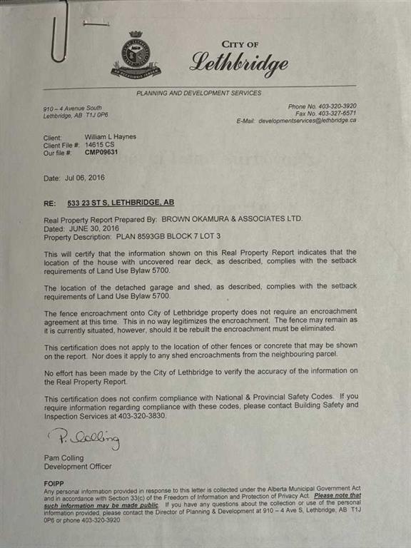 Welcome to 533 23 Street S, a 3-bedroom bungalow in a desirable southside location. This income-generating property features a main floor with a bright living room and a cosy gas fireplace, a functional kitchen and dining area, two bedrooms including the primary, and a full 4-pc bathroom. The basement is complete with one bedroom, a family room, a second kitchenette, and an additional 3-piece bathroom. Outside, a newly built double detached garage and a spacious backyard provide plenty of room for parking, storage, and outdoor enjoyment. New shingles were installed in August 2025 on the house, garage, and shed, giving peace of mind for years to come. With its convenient location close to schools, parks, and everyday amenities, this property combines comfort and flexibility, offering a turnkey rental opportunity or a smart long-term investment. Please view the video walkthrough in the links tab or on YouTube by searching for the home address.