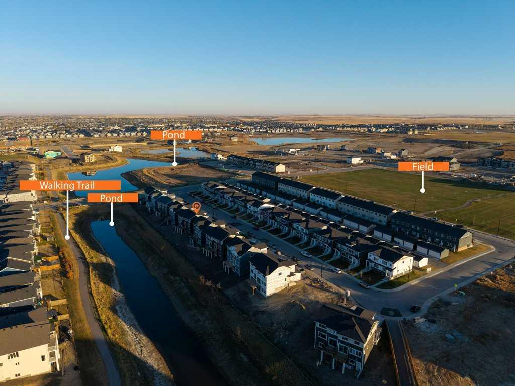 Welcome home to this stunning walkout duplex that perfectly blends modern elegance with functional design. This brand-new construction offers 1,575 square feet of meticulously crafted living space with an attached double front garage, set on a generous 3,579 square foot walkout lot that backs onto a beautiful greenspace with a pond. The main floor welcomes you with a spacious living area featuring an elegant electric fireplace, while a walkthrough pantry connects the mudroom to the gourmet kitchen. Here, stainless steel appliances, including a gas stove and chimney hood fan, shine under recessed lighting. The open-concept layout seamlessly integrates the kitchen, great room, and dining area, where large windows fill the space with natural light and create an inviting atmosphere for both everyday living and entertaining. Upstairs, the primary bedroom serves as a private retreat, complete with a luxurious four-piece ensuite and a sprawling walk-in closet that provides ample storage for your wardrobe essentials. Enjoy serene views of the pond and green space, with no adjoining backyard to interrupt the scenery. Two additional spacious bedrooms offer large windows framing picturesque views of the surrounding landscape. A conveniently located laundry room, equipped with a front-load washer and dryer, adds both comfort and practicality to your daily routine.