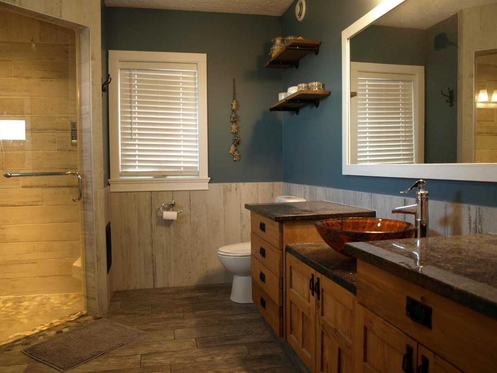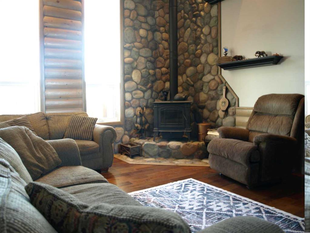 Step into this exceptional home, thoughtfully constructed with ICF concrete block walls from foundation to ceiling, offering superior energy efficiency, durability, and year-round comfort. A welcoming foyer opens into a stunning living room, where soaring vaulted ceilings and an abundance of natural light create a bright, inviting atmosphere. A cozy wood stove anchors the space—perfect for relaxing evenings or entertaining guests. The expansive kitchen is truly the heart of the home, featuring custom hickory cabinetry, solid granite countertops, and generous workspace. Designed with both function and style in mind, it’s ideal for hosting gatherings or enjoying everyday living with ease. Retreat to the spacious primary suite, complete with a luxurious ensuite offering a soaker tub and steam shower—your own private spa experience. Four additional bedrooms provide exceptional flexibility for family, guests, or home office needs. The walk-out basement offers seamless access to the beautifully landscaped 4-acre property, while the new wrap-around deck creates the perfect setting for entertaining, summer barbecues, or simply taking in the peaceful surroundings. Comfort and efficiency are top of mind with hydronic in-floor heating, delivering consistent, cozy warmth throughout the home. The exterior has been refreshed with new stucco, enhancing both curb appeal and durability. This property is exceptionally well-equipped with connection to treated town water, providing reliability and peace of mind, along with a domestic irrigation turnout to meet all your outdoor watering needs—ideal for maintaining lush landscaping, mature trees, or expansive gardens. Blending rural tranquility with modern convenience, this remarkable property truly has it all—schedule your private viewing today and experience it for yourself.