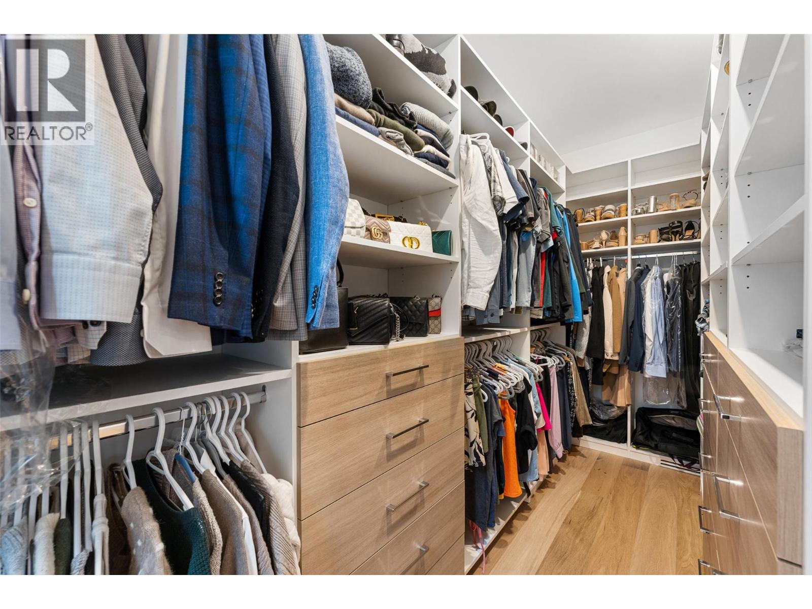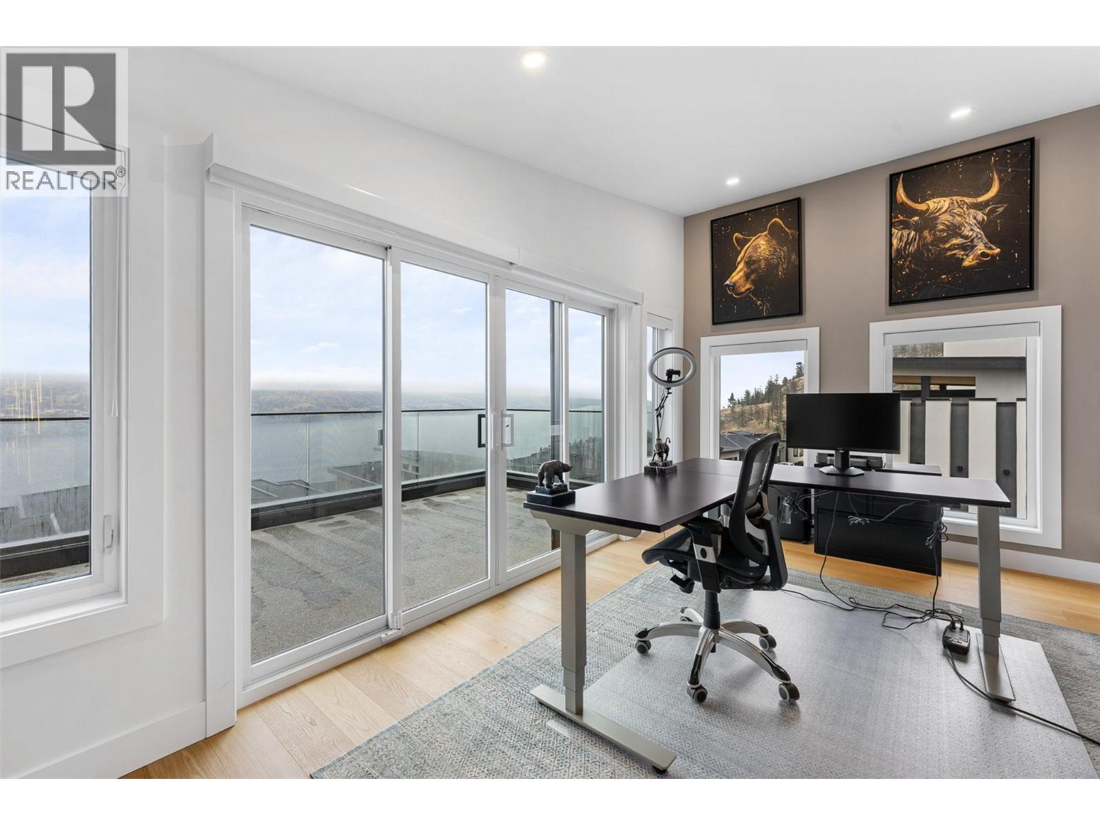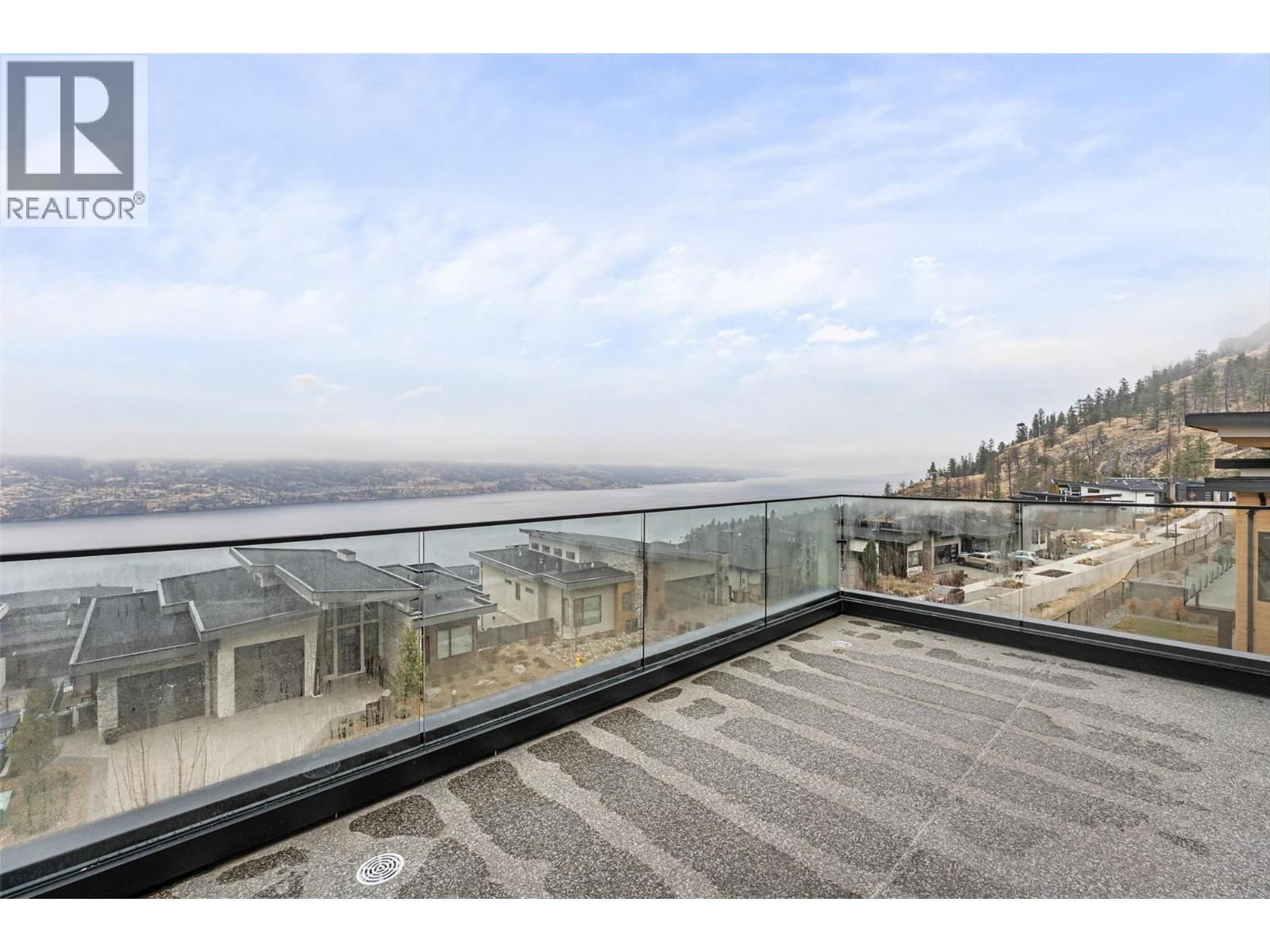 Perched on the edge of nature, just 10 minutes from downtown Kelowna, this beautiful North Clifton Estates home offers stunning Okanagan Lake views at every turn. The open-concept main level features wide plank white oak hardwood, a floor-to-ceiling tiled gas fireplace, and a gourmet kitchen with Fisher & Paykel appliances, quartz countertops, and a butler's pantry with custom cabinetry. One bedroom with ensuite and a private office complete this level, along with a covered deck perfect for taking in the views. The spacious upper level centers around a huge primary suite with five-piece ensuite with a freestanding tub, steam shower, and heated tile floors. Two additional bedrooms share a bath, and a lakeview office opens to a private patio with hot tub. The lower level is built for how you want to live. A dedicated home gym, recreation room with wet bar and custom wine room, bonus room, and two additional bedrooms provide space for every need. Walk out to the patio where a saltwater pool and synthetic lawn create your own private resort, framed by glass railings and views that never get old. Upgraded with Control 4 smart home system, custom lighting by Robinson Lighting, Hunter Douglas blinds, and premium sound systems. Additional features include water softener, reverse osmosis, Navien on-demand hot water, oversized air conditioning, and heated two-car garage with epoxy floors. Close to Wilden trail network with private trail access to the beach.